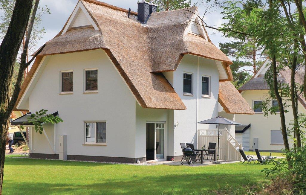 På solskinsøen Usedom ligger Zirchow, en lille, idylliske havneby, hvor disse stråtækte feriehuse står. Ferieparken ved Stettiner nor byder på gode huse til hele familien, mens hygge under stråtækket er garanteret.