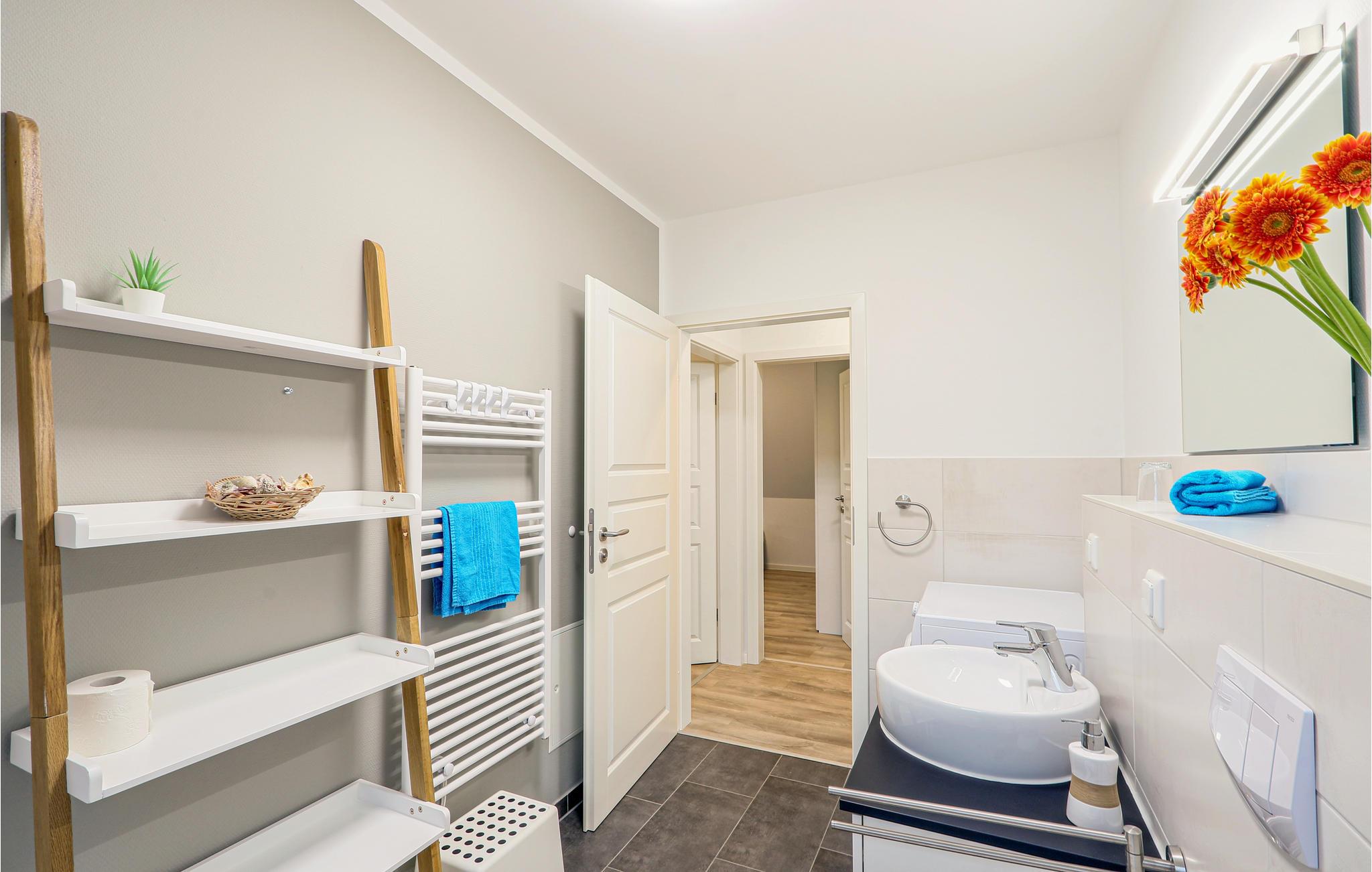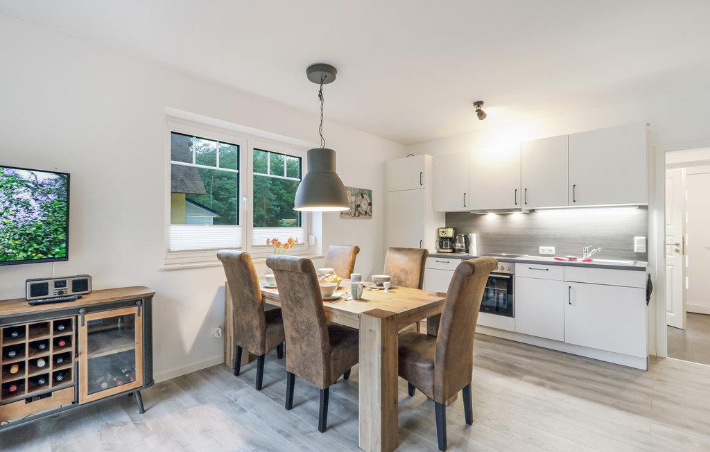 Denne halvdel af et dobbelthus har navnet "Schilf-Idyll" og strækker sig over to etager, der er moderne og indbydende indrettet. Fra den kombinerede stue- og spisestue er der udgang til en terrasse, hvor I kan nyde Usedoms mange solskinstimer. På kølige dage er det dejligt at sidde i saunaen og få varmen eller tænde op i brændeovnen. I to soveværelser er der en god dobbeltseng, men i et af soveværelserne er der også en gæsteseng (enkelt). En filterkaffemaskine og en hårtørrer er til rådighed.