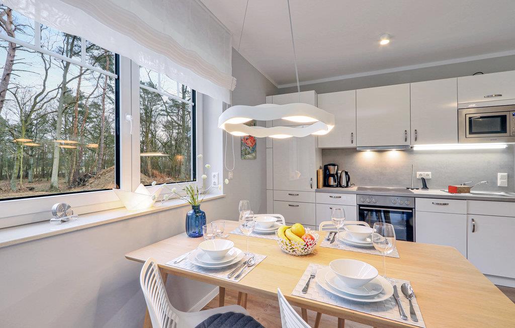 Denne godt indrettede halvdel af et dobbelthus strækker sig over to etager og er moderne og indbydende indrettet. Fra den kombinerede stue- og spisestue er der udgang til en terrasse, hvor I kan nyde Usedoms mange solskinstimer.