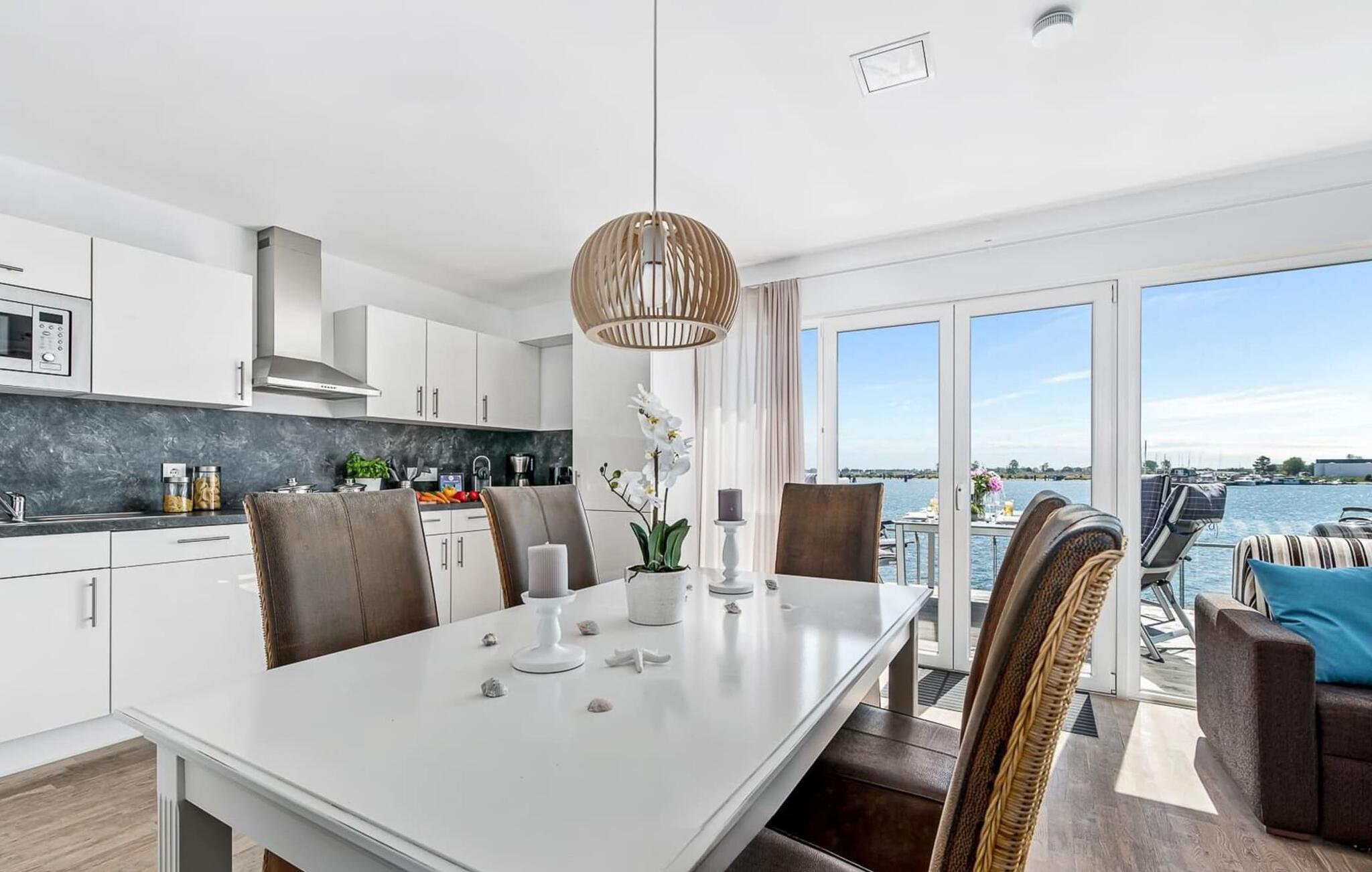 På ferien er der tid til kreativ madlavning, det fuldt udstyrede køkken-alrum lader intet tilbage at ønske. Morgenmad lige ved vandet, ren feriefølelse.