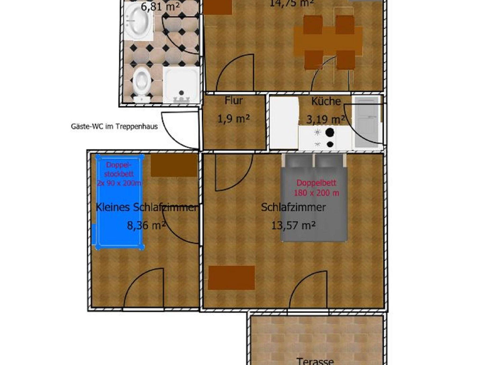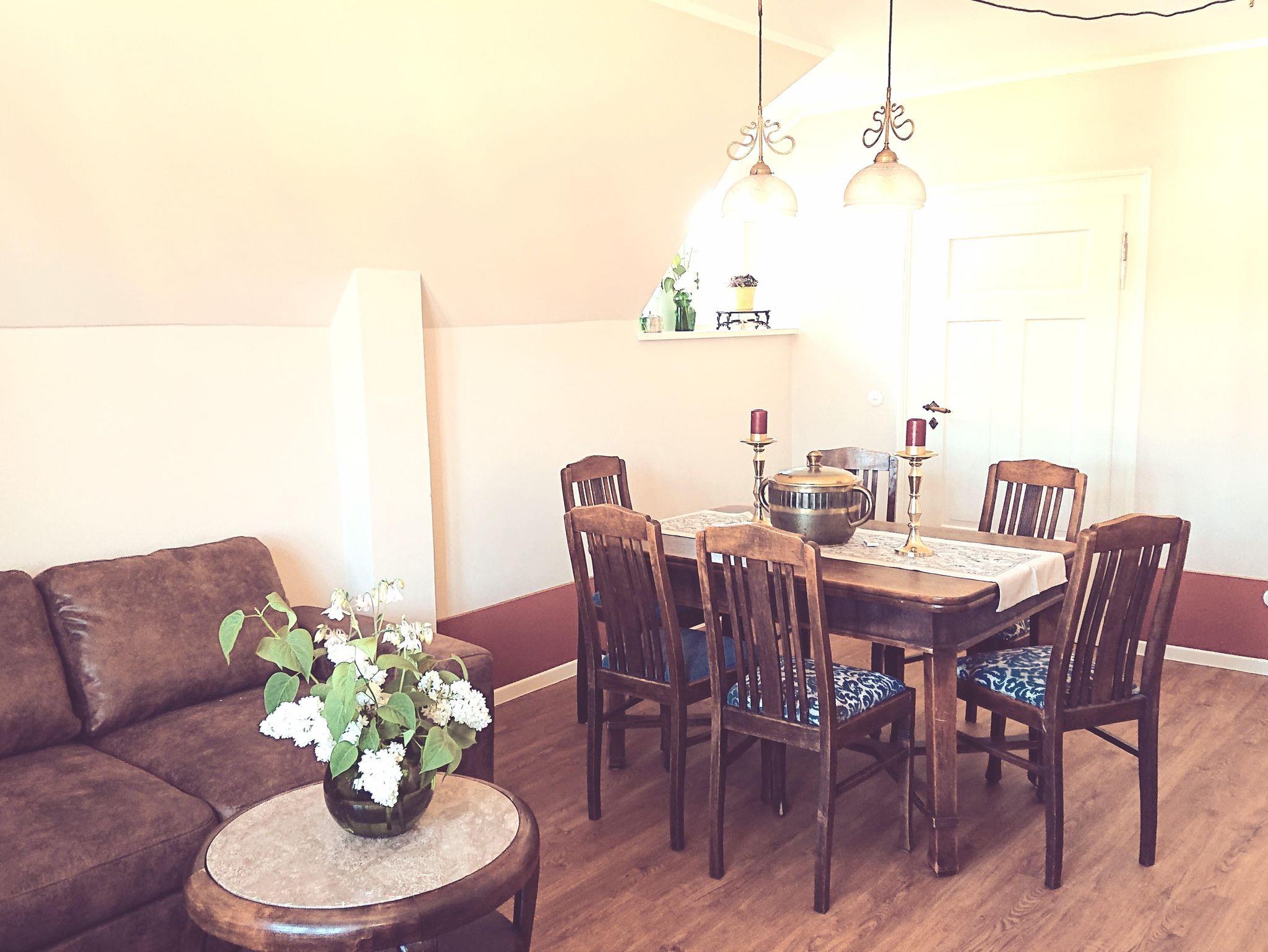 Die Ferienwohnung Charlie Chaplin befindet sich im Dachgeschoss. Sie besteht aus drei Räumen und einer Terasse.
