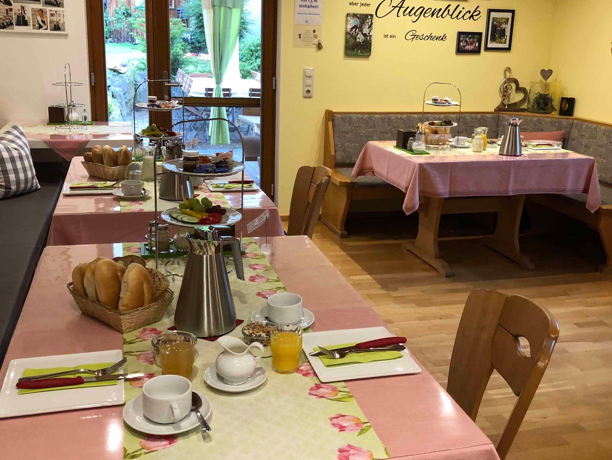 Mitten im Herzen Deutschlands liegt Fladungen, die nördlichste Stadt Bayerns. Hier finden Sie in ruhiger Ortsrandlage unser Haus. In dieser zauberhaften Umgebung warten eine Ferienwohnung und mehrere Zimmer auf Sie, alle sind behaglich groß und mit viel Liebe eingerichtet.? Lassen Sie den Alltag hinter sich und tauchen ein in die vielfältigen Möglichkeiten in der bayerischen Rhön. Von unserer Pension erreichen Sie in wenigen Gehminuten den Stadtkern von Fladungen. Mit Komfort und Ambiente sorgen wir dafür, dass Ihr Aufenthalt bei uns ab der ersten Minute erholsam und zu einer bleibenden schönen Erinnerung wird. In der Nachbarschaft finden Sie ein Freibad und eine Tennisanlage. Unser Haus hat das ganze Jahr für Sie geöffnet! Sie werden eine einmalige, ursprüngliche, herbe Kulturlandschaft kennen lernen, die Sie nirgendwo in Deutschland finden! Hier gibt es tolle Ausflugsziele rund um das Gästehaus Jutta, z. B. das Freilandmuseum mit Rhön-Zügle, in kürze das Rhönmuseum, die Wasserkuppe, den Kreuzberg, Hochmoore, bunte Blumenwiesen, tiefgrüne Matten, im Winter mit Eis und Schnee bedeckt zum Rodeln und Skilaufen und viel gesunde Luft, einfach zum Durchatmen.? Unser gemütlicher Frühstücks- und Aufenthaltsraum. Ihr Tag beginnt mit einem abwechslungsreichen Frühstücksangebot mit Hofeigenen Produkten (hausgemachten Wurstspezialitäten, selbstgebackenem Brot und Kuchen, sowie selbst hergestellte Fruchtaufstrichen und vieles mehr). Frühstücks- und Aufenthaltsraum mit Speisemöglichkeit. Die Sauna bleibt bis auf weiteres geschlossen