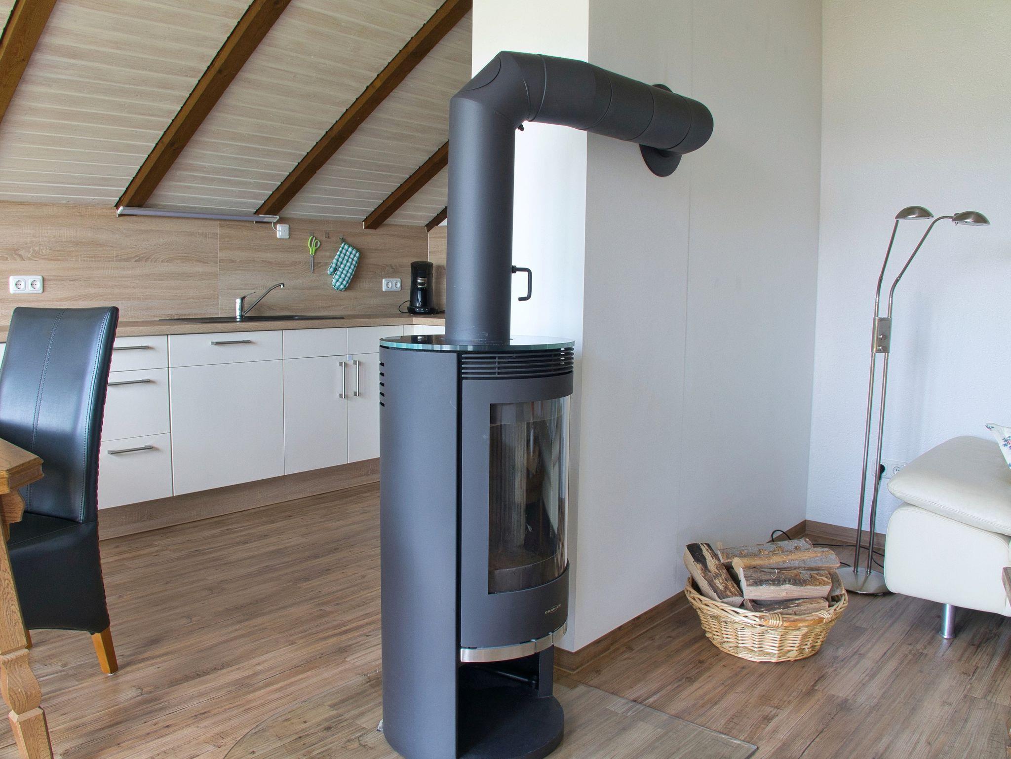 Die Wohnung kann in der kalten Jahreszeit für eine wohlige Wärme nachhaltig mit einem Kachelofen beheizt werden.