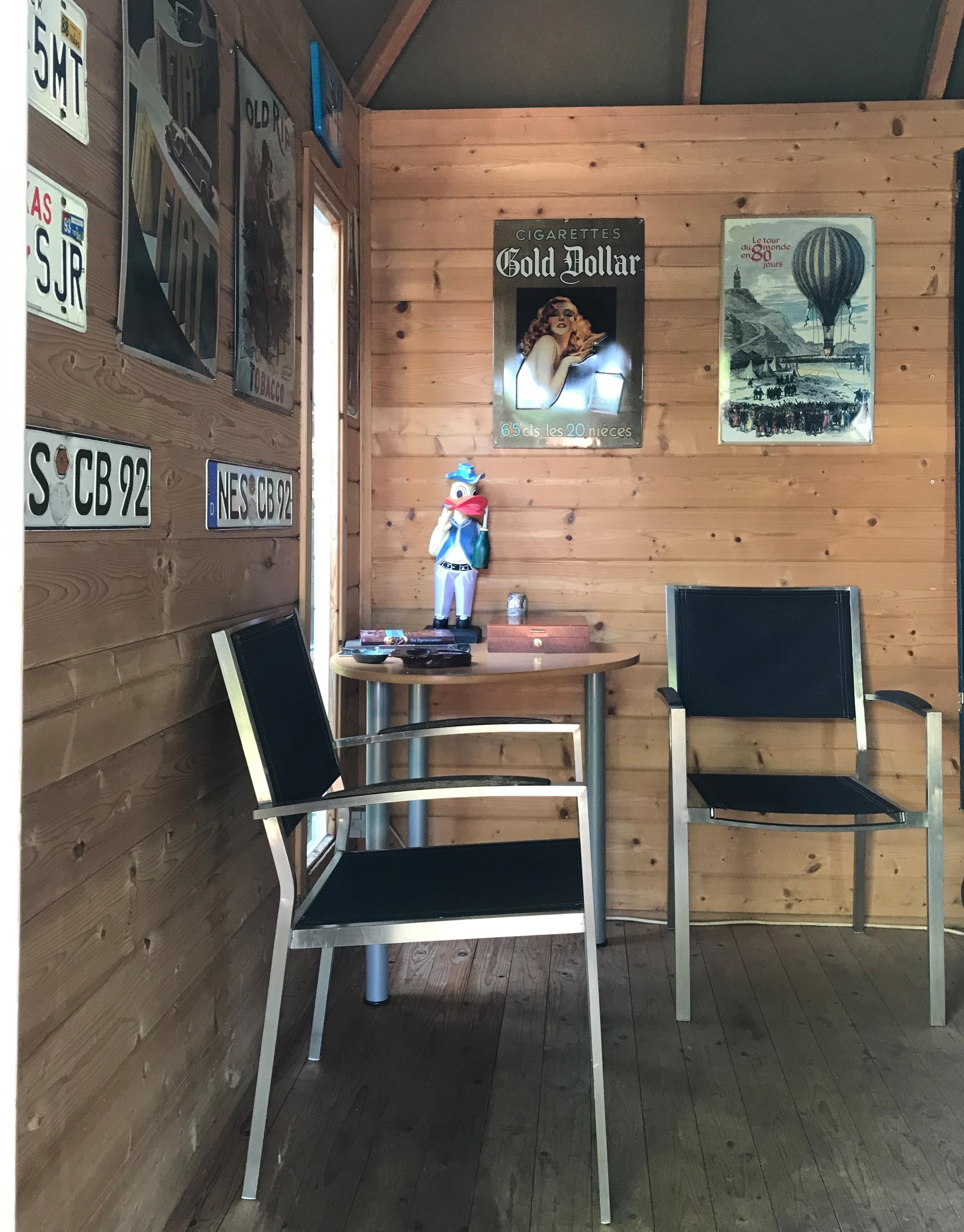 Eine Abkühlung bietet die Außendusche am Gartenhäuschen.