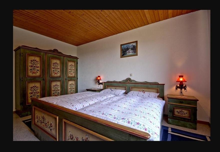 Unsere Ferienwohnung bietet Ihnen eine komfortable und gut ausgestattete Unterkunft. Sie verfügt über zwei Schlafzimmer: eines mit einem Doppelbett und das andere mit zwei Einzelbetten. Die voll ausgestattete Küche beinhaltet einen großen Esstisch, ideal für gemeinsame Mahlzeiten. Das gemütliche Wohnzimmer lädt mit einem rustikalen Kachelofen zum Entspannen ein und ist mit Sat-TV, Radio und einem DVD-Player ausgestattet. Das moderne Bad bietet eine Badewanne, eine Dusche, ein Bidet und einen Doppelwaschtisch. Genießen Sie die sonnigen Tage auf dem großen Südbalkon, der mit bequemen Gartenmöbeln ausgestattet ist. Hier finden Sie alles, was Sie für einen erholsamen und angenehmen Aufenthalt benötigen.