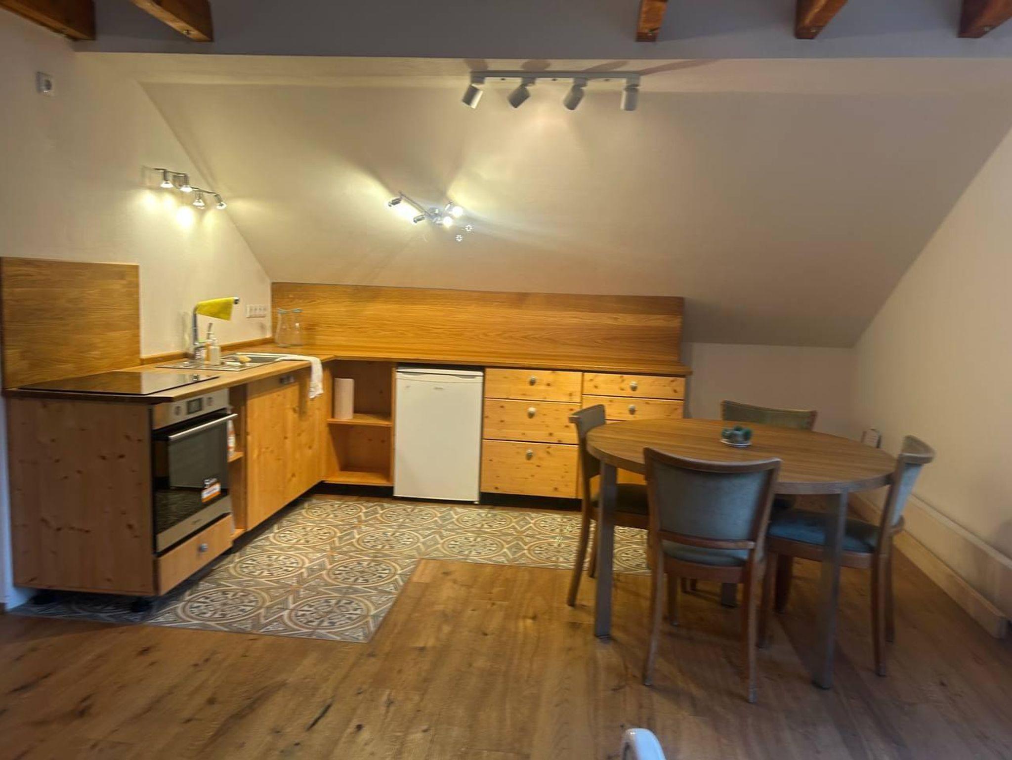 Dieses wunderschöne Highlight besteht aus zwei Zimmern. Im großzügigen Wohnraum befindet sich ein Schlafsofa für 2 Personen. In der vollausgestatteten Küche können Sie sich Ihre Mahlzeiten zubereiten. Unser Haus ist durch die nachhaltige und ganzheitliche Bauweise zertifiziert - kommen Sie gerne vorbei und genießen Sie das angenehme Raumklima!