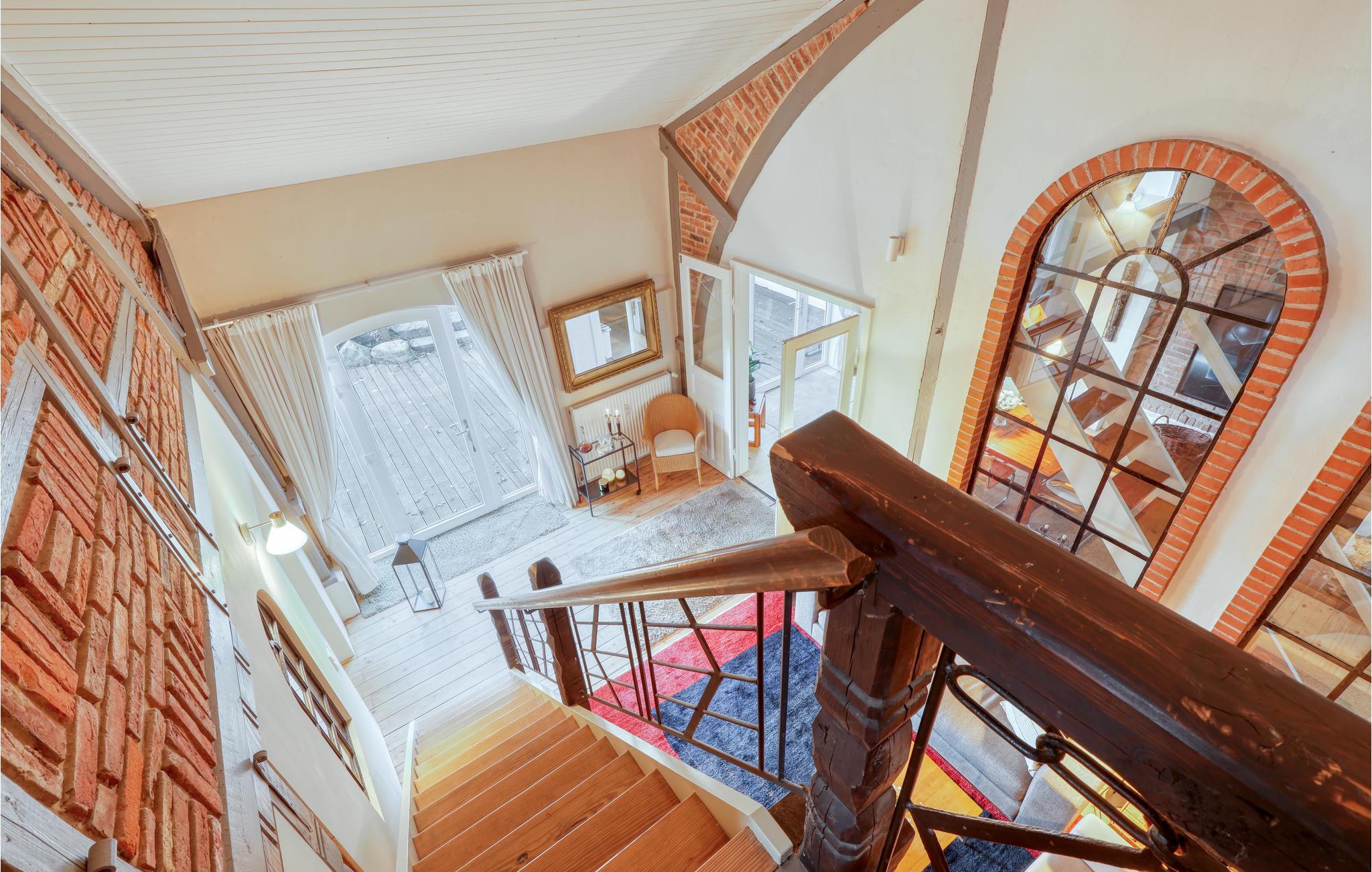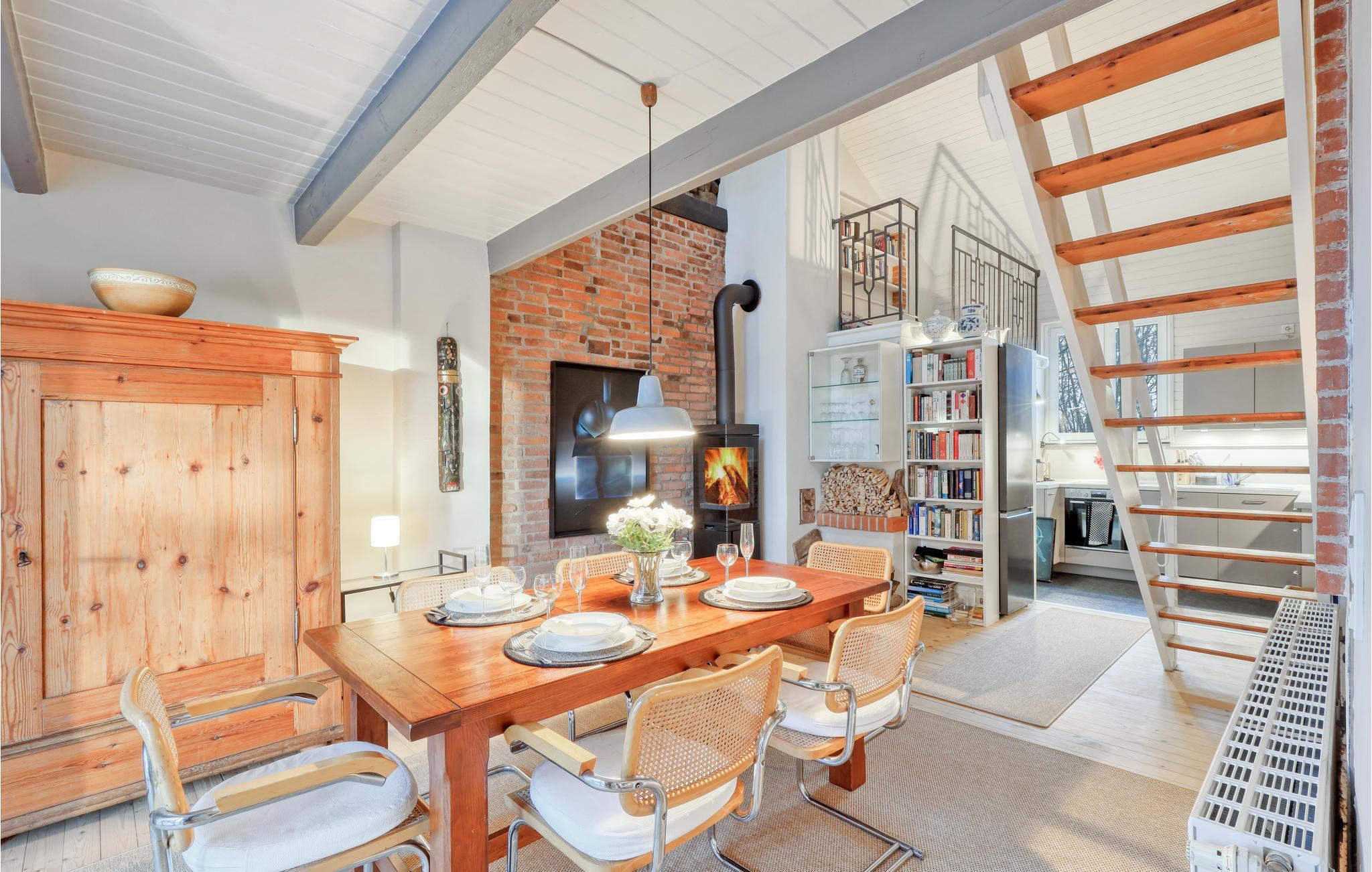 Der er lagt op til en helt særlig ferie for den lille familie eller to vennepar, som kan få deres base i dette vidunderlige hus. Design, vinduer, rå murstensvægge og et væld af andre detaljer udgør denne bolig, som har en fantastisk atmosfære, I nok aldrig har oplevet før. Find sammen sammen i stuen, som har højt til loftet, vinduesvæg og åben trappe. Giv jer god tid til madlavningen i det charmerende køkken og hyg jer med lange samtaler rundt om spisebordet, mens varmen fra pejsen bidrager med ekstra stemning.