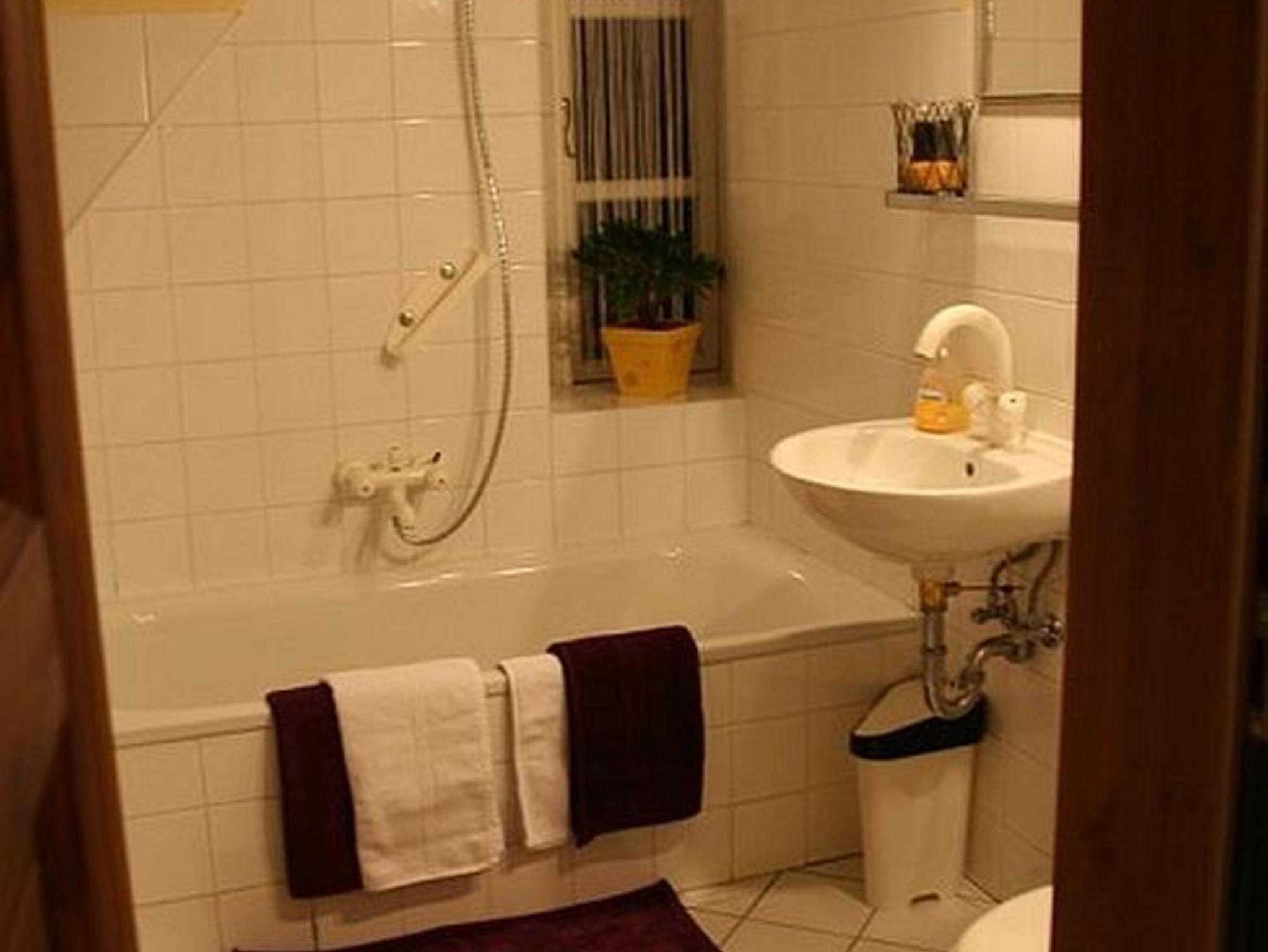 Das Appartement ist wirklich sehr klein, enthält aber alles, was man braucht. Es ist sehr liebevoll und mit vielen schönen Details eingerichtet. Vor allem gibt es in Zimmer und im Bad viel Stauraum. Allerdings keinen Kleiderschrank. Das Bad mit Badewanne und WC ist sehr geräumig.