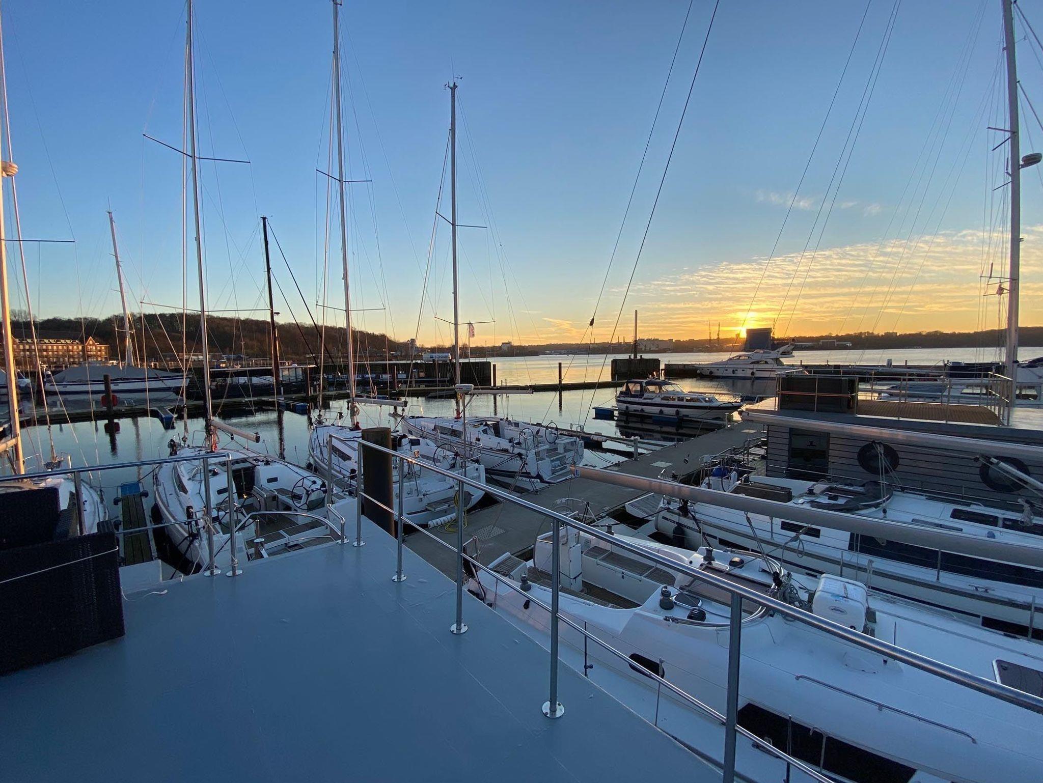 Die vollausgestattete Küche mit allen wichtigen Küchengeräten und einem Induktionsherd lässt keine Wünsche offen. Die Spülmaschine unterstützt Sie dabei, schnell wieder die wesentlichen Dinge des Urlaubes fokussieren zu können. An warmen Tagen laden sowohl die zwei Sonnenterrassen vor und hinter dem Wohnaufbau als auch die Dachterrasse zum Entspannen und Sonnenbaden ein. Auf dieser haben Sie einen wunderbaren Blick über den Yachthafen und auf die Flensburger Förde.