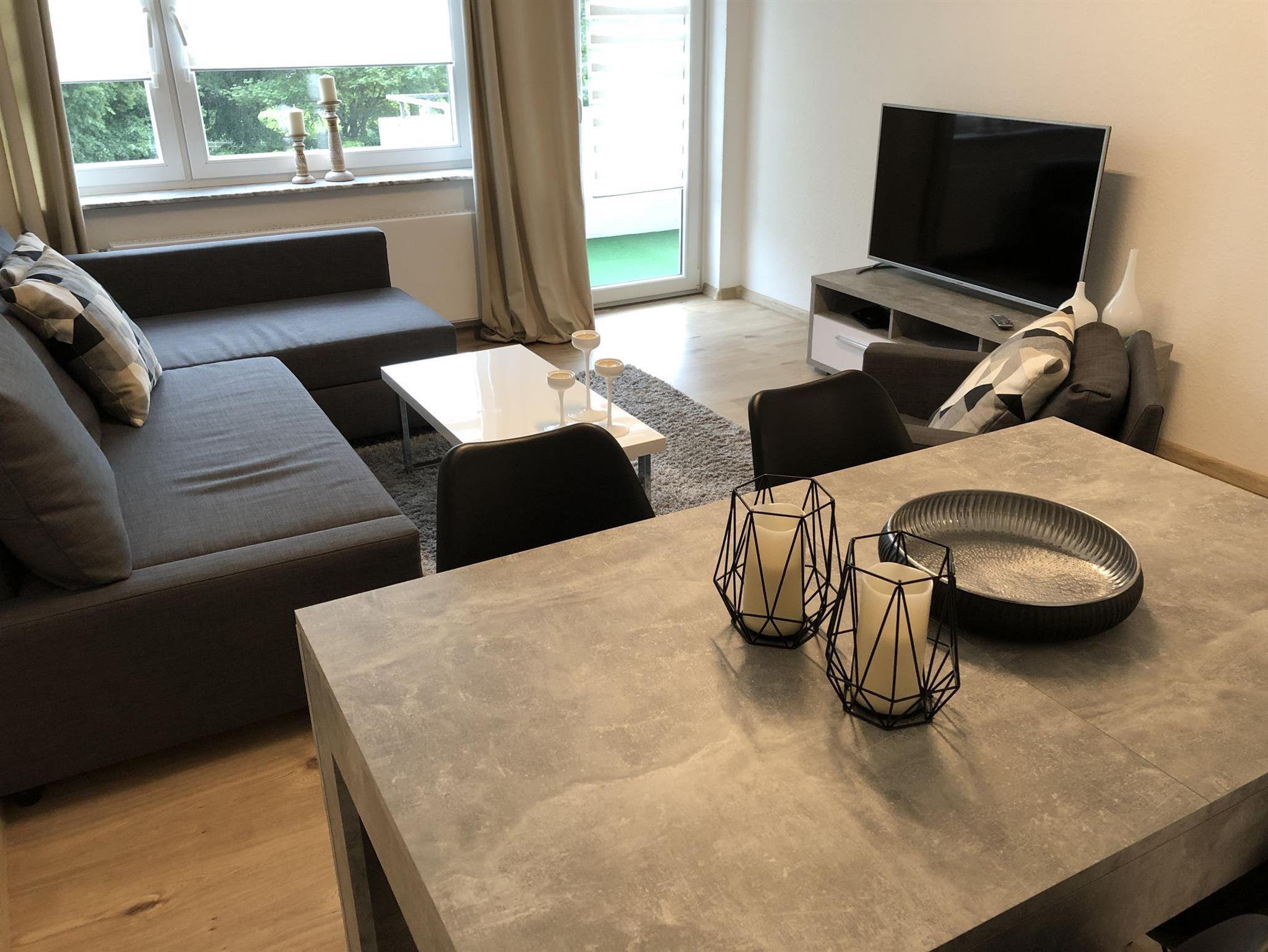 • 1 Wohnzimmer mit Essplatz und Schlafcouch