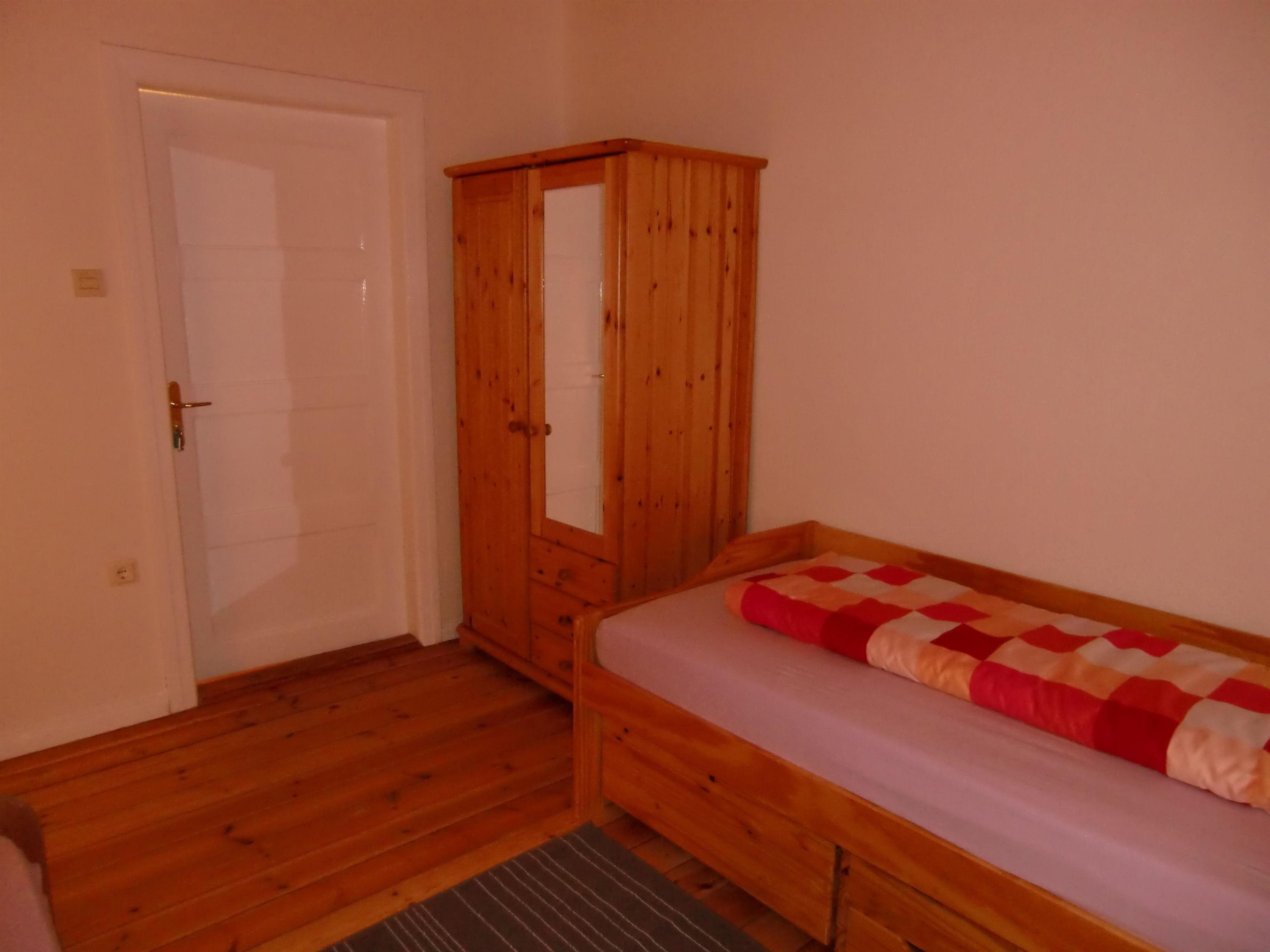 Der zweite Schlafbereich hat zwei getrennte Einzelbetten, wobei man noch einen Schlafplatz aus dem einem Bett herausziehen kann. In dem Zimmer befindet sich ebenfalls ein Kleiderschrank und ein kleiner Fernseher.
