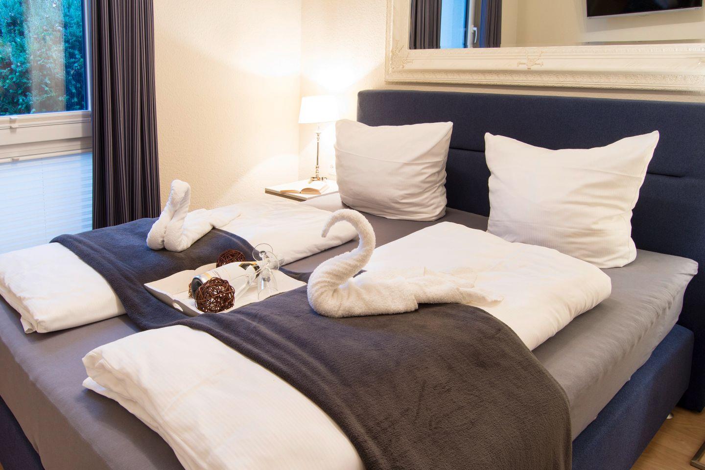 Die Ferienwohnung "Möwennest" ist eine von vier elegant und hochwertig ausgestatteten Ferienwohnungen im Strandquartier Solitüde. Jede Wohnung greift ein anderes Thema auf und stellt durch seine Gestaltung, Einrichtung und Ausstattung einen maritimen Bezug zum unmittelbaren Strandbad Solitüde her. Das "Möwennest" im Erdgeschoss bietet Platz für insgesamt 4 Personen. Das Schlafzimmer ist mit einem gemütlichen Doppelbett (180x200cm) eingerichtet und die Schlafcouch im Wohnzimmer bietet zwei weitere Schlafplätze. Der kombinierte Wohn- und Essbereich mit einer modernen, offenen Einbauküche, hat einen Zugang zur Terrasse. Die komplette Wohnung verfügt über eine Fußbodenheizung, sodass Sie sich an kalten Tagen abends nach einem Ausflug wieder aufwärmen können. Im Wohnzimmer können Sie abends herrlich entspannen und die Tage vor dem Flachbild-TV ausklingen lassen oder auf der Terrasse bei einem Glas Wein. Der Weg vom fest zugeordneten Parkplatz zur Wohnung und die Wohnung selbst ist barrierefrei gestaltet. Das Strandquartier Solitüde verfügt über eine zentrale Waschküche mit Waschmaschine und Wäschetrockner. Auch ein Schuppen zum Abstellen mitgebrachter Fahrräder steht zur Verfügung.