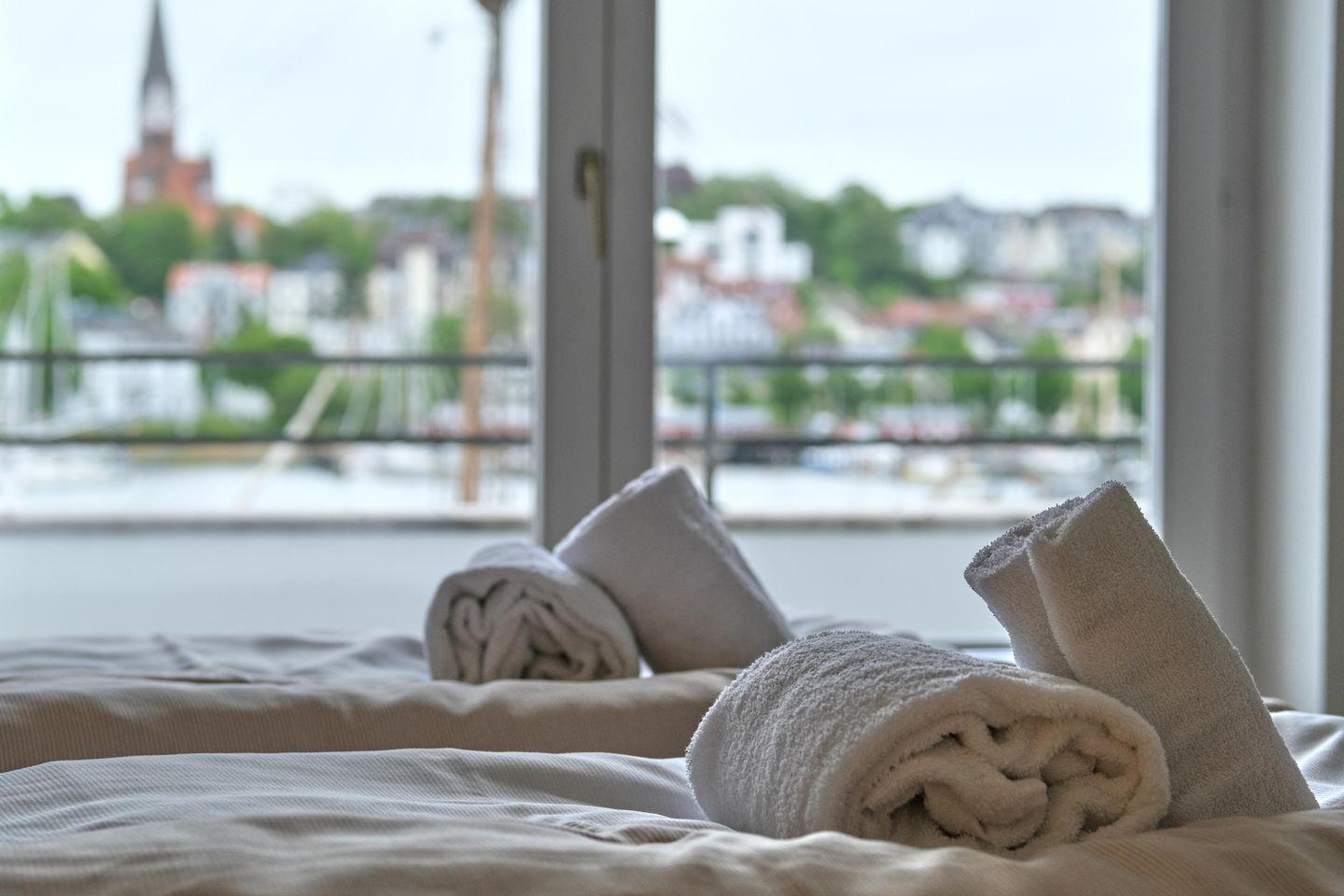 Mit Blick auf den Flensburger Hafen.. es erwartet euch ein wunderschöner Ausblick auf die Flensburger Förde.