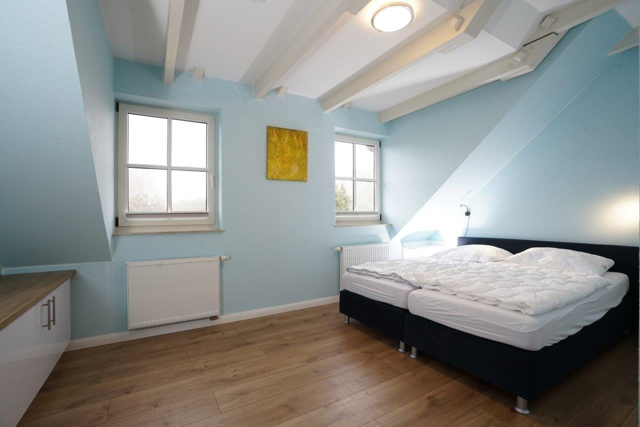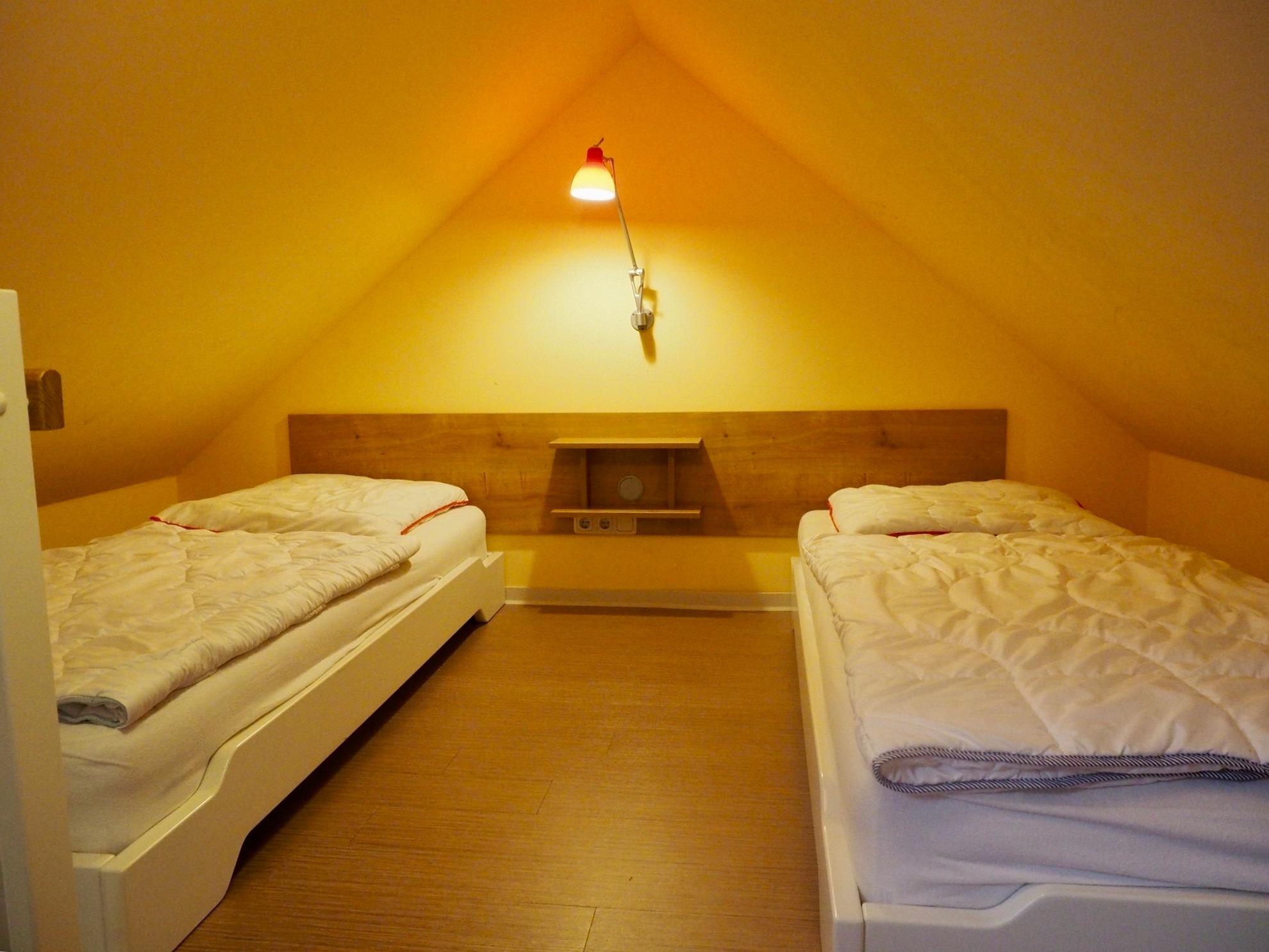 Es ist wichtig zu wissen, dass das Schlafzimmer im Spitzdach für ältere Kinder ab 5 Jahren geeignet ist und über eine Raumspartreppe erreichbar ist. Die gemütlichen Dachschrägen verleihen dem Raum eine besondere Atmosphäre. Ein Fernseher und ein Dachflächenfenster sorgen für Komfort und Belüftung.