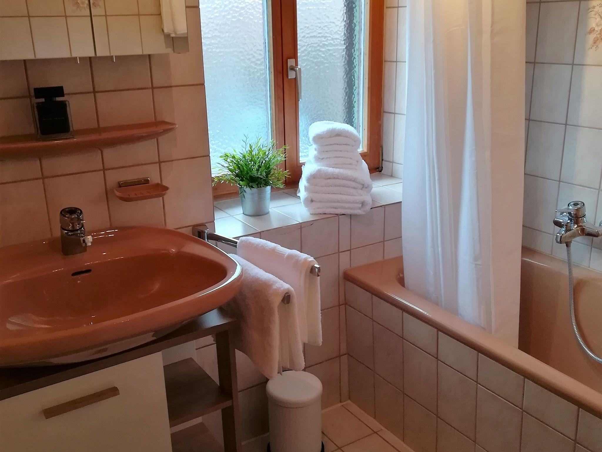 Geräumige Ferienwohnung - 85qm, bis 4-Personen im 1.OG, mit Terrasse, Bergblick zum Petersberg und ist wie folgt ausgestattet.