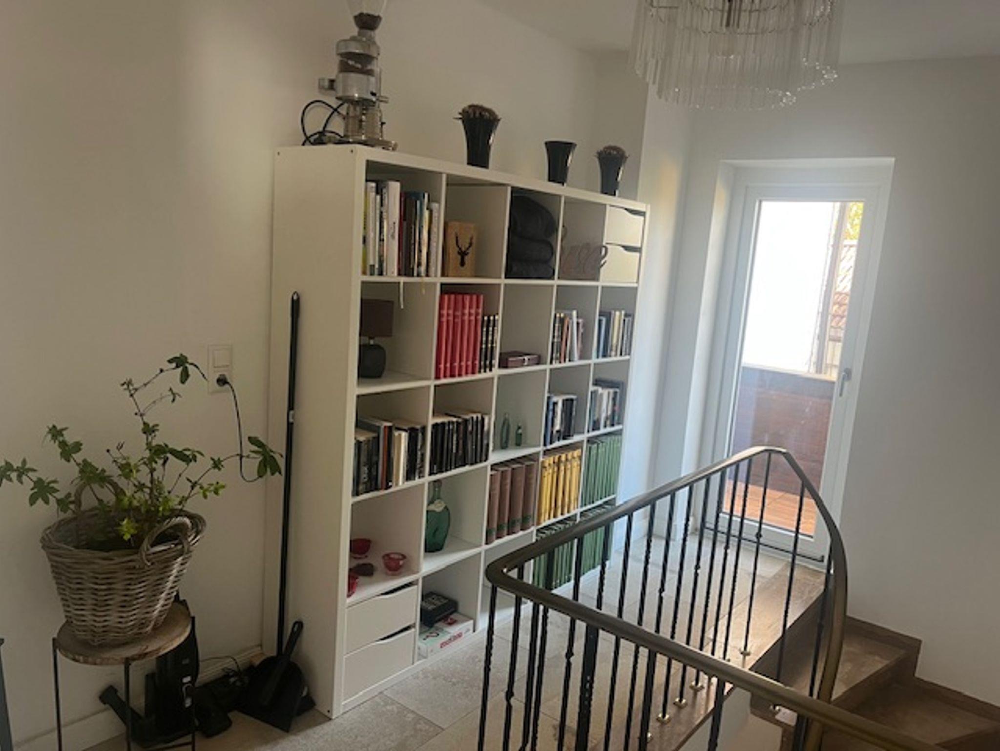 Die Ferienwohnung ist sehr geräumig und liebevoll eingerichtet und erstreckt sich über zwei Stockwerke. Die Ferienwohnung verfügt über ein Bad mit Dusche und Badewanne, ein geräumiges Schlafzimmer mit Boxspringbett, einer sehr gut ausgestatteten Küche und ein Wohn/Esszimmer in dem ggf. zwei weitere einzelne Betten mit guten Matratzen aufgestellt werden können. Darüber hinaus gibt es zwei Balkone sowie eine Terrasse. Der am Haus anliegende Garten darf auch genutzt werden.