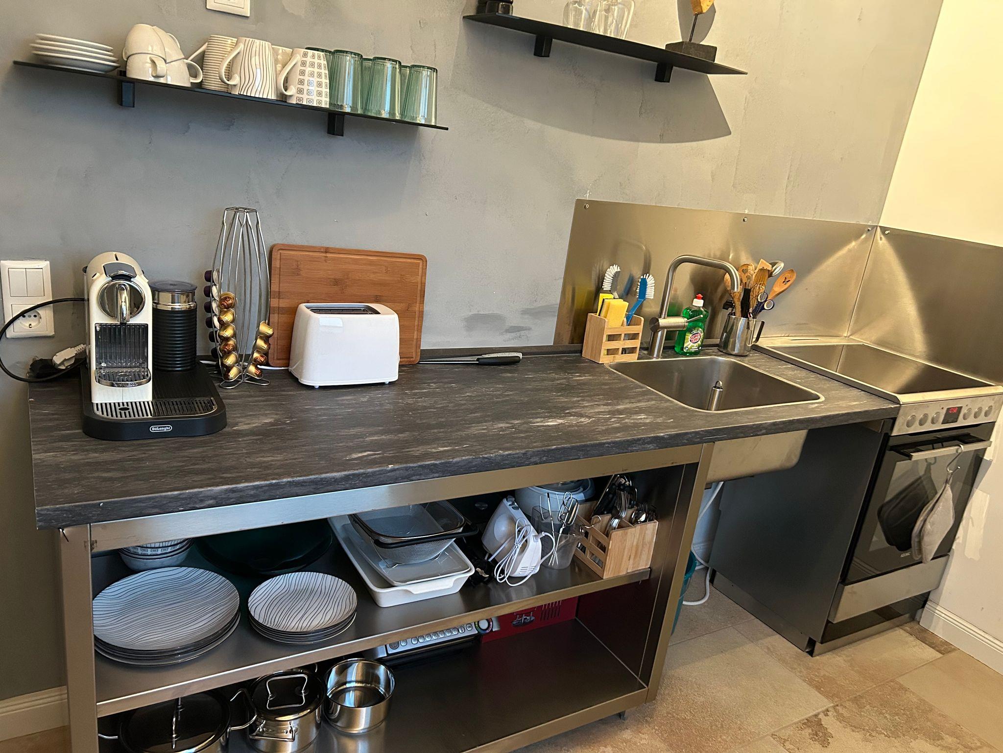Die Ferienwohnung ist sehr geräumig und liebevoll eingerichtet und erstreckt sich über zwei Stockwerke. Die Ferienwohnung verfügt über ein Bad mit Dusche und Badewanne, ein geräumiges Schlafzimmer mit Boxspringbett, einer sehr gut ausgestatteten Küche und ein Wohn/Esszimmer in dem ggf. zwei weitere einzelne Betten mit guten Matratzen aufgestellt werden können. Darüber hinaus gibt es einen Balkon sowie zwei Terrassen. Der am Haus anliegende Garten darf auch genutzt werden.
