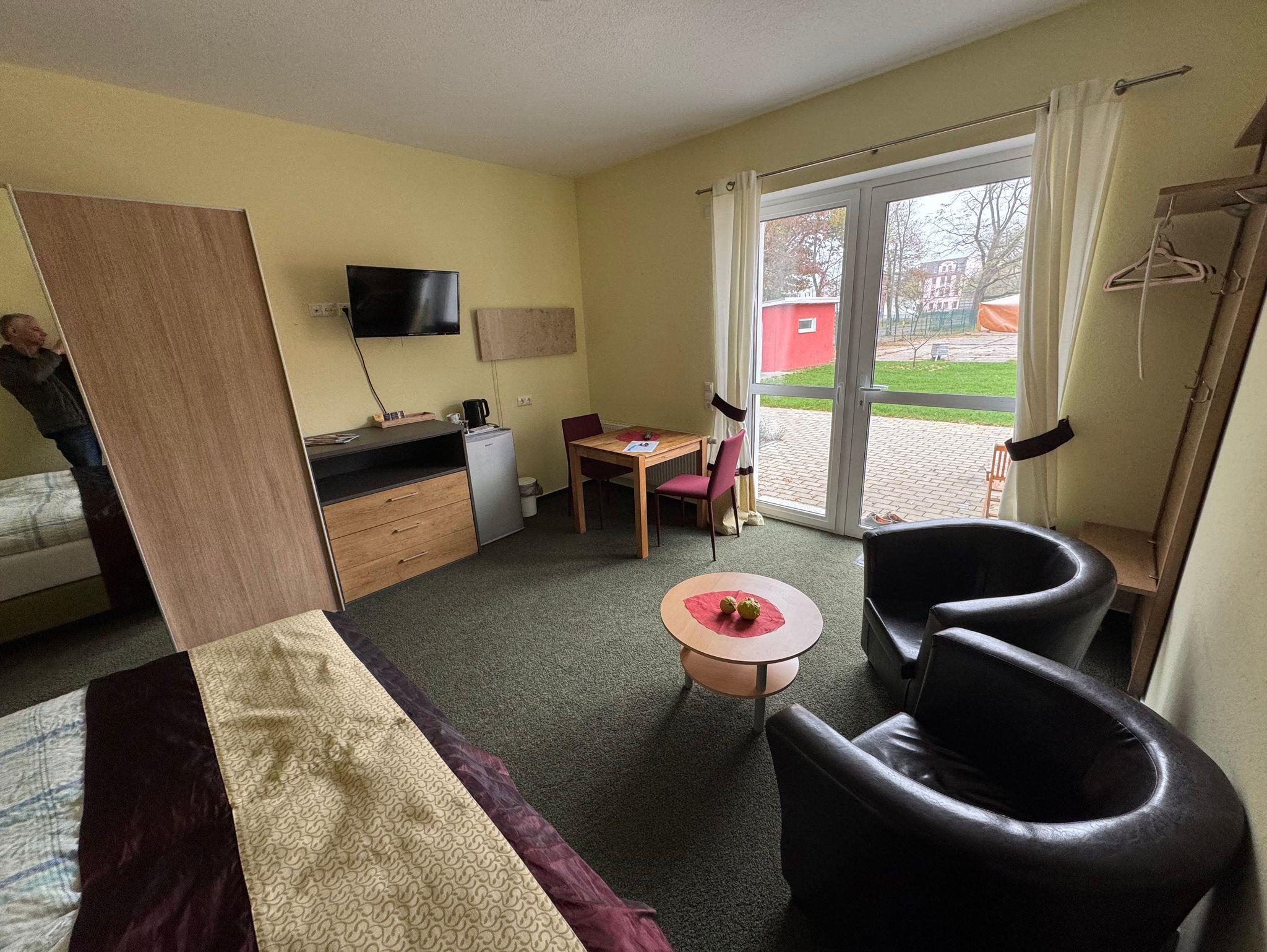 1 gemütliches Doppelzimmer (Nr. 3) für 2 Personen mit Relax-Sessel und Esstisch.