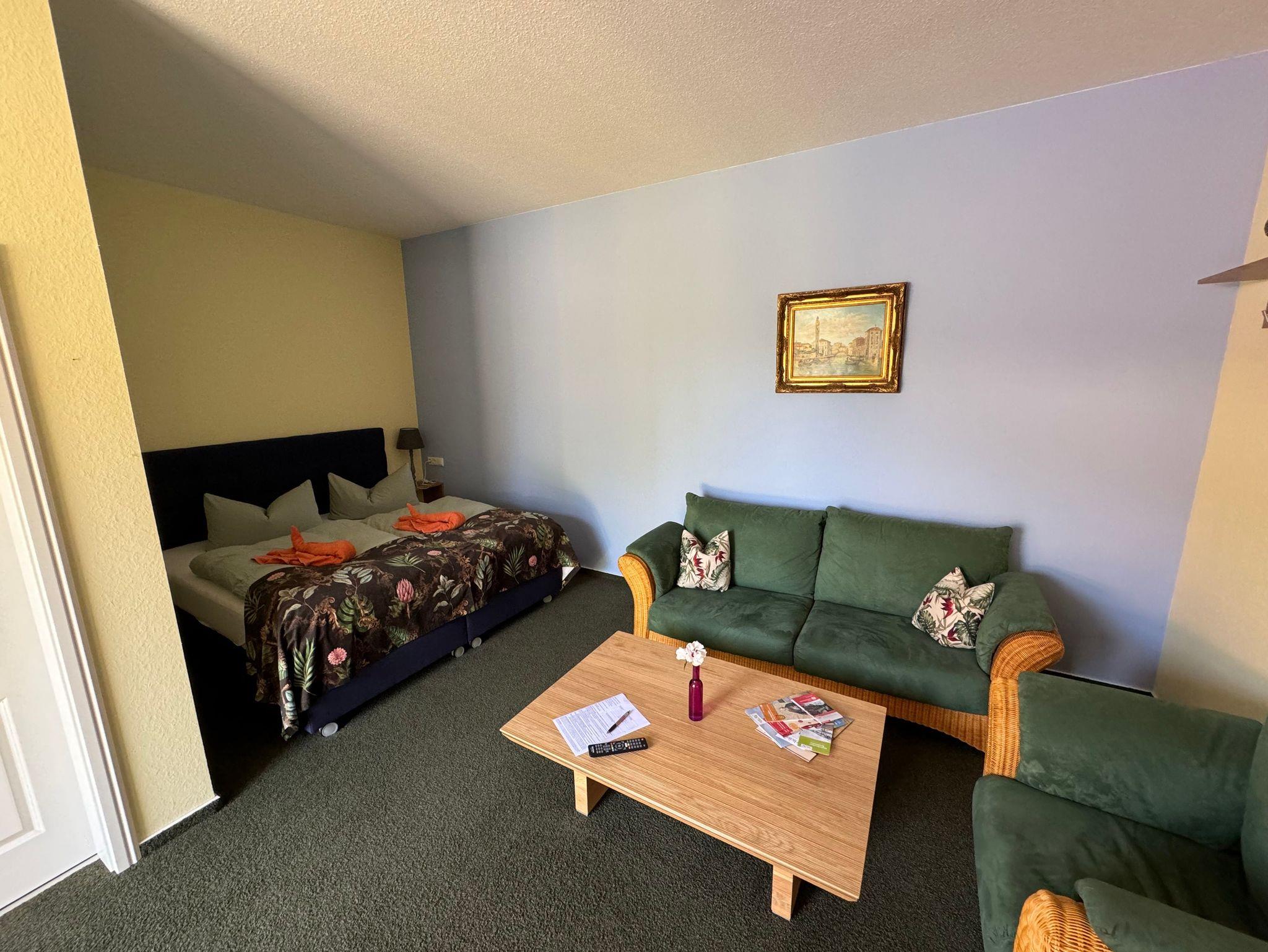 1 gemütliches Zimmer (Nr. 2) für 2 Personen mit kleiner Sofaecke. Aufbettung möglich.