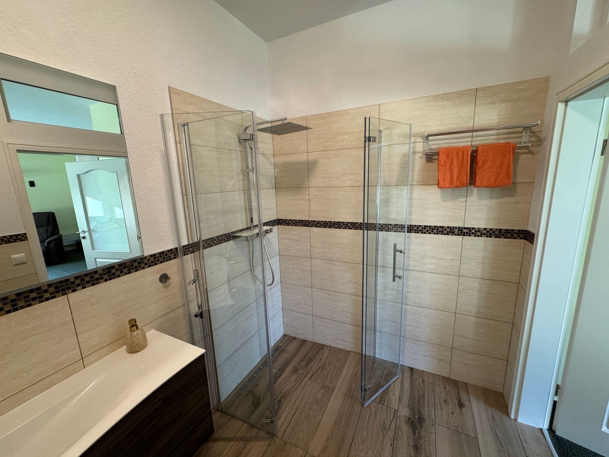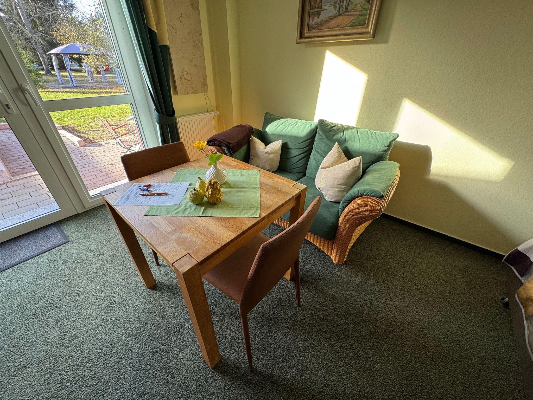 1 gemütliches Zimmer (Nr. 4) inkl. geräumigem Bad, für 2 Personen mit kleiner Sofaecke und Sessel mit Aufstehhilfe. Barrierefreier Zugang über Rampe. Duschhocker sowie Aufstehhilfe für WC vorhanden. Aufbettung möglich.