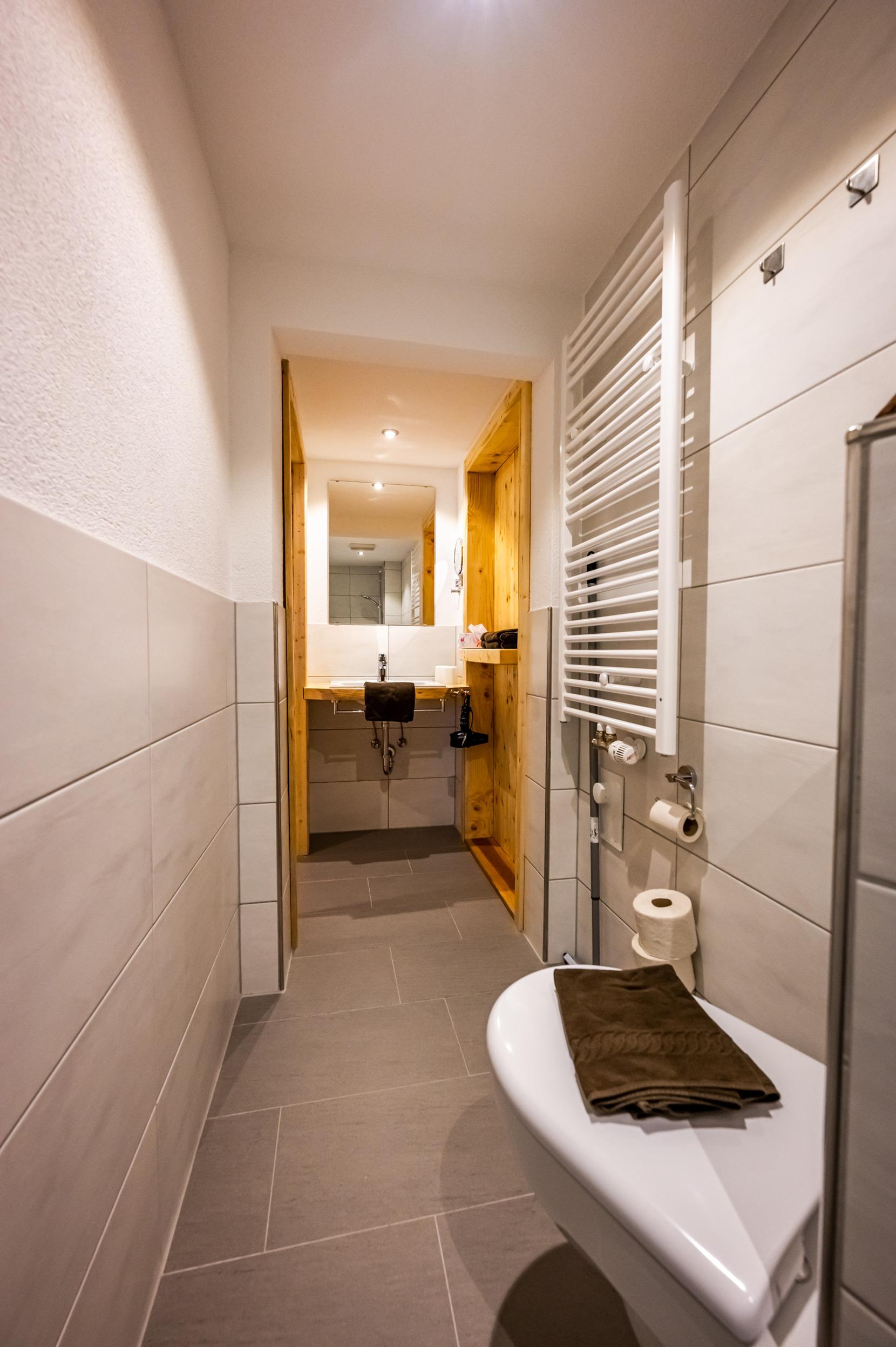 Die ebenerdige Dusche mit WC, Kosmetikspiegel, Haartrockner und ausreichend Handtücher für Ihren Aufenthalt runden den Wohlfühlurlaub ab.