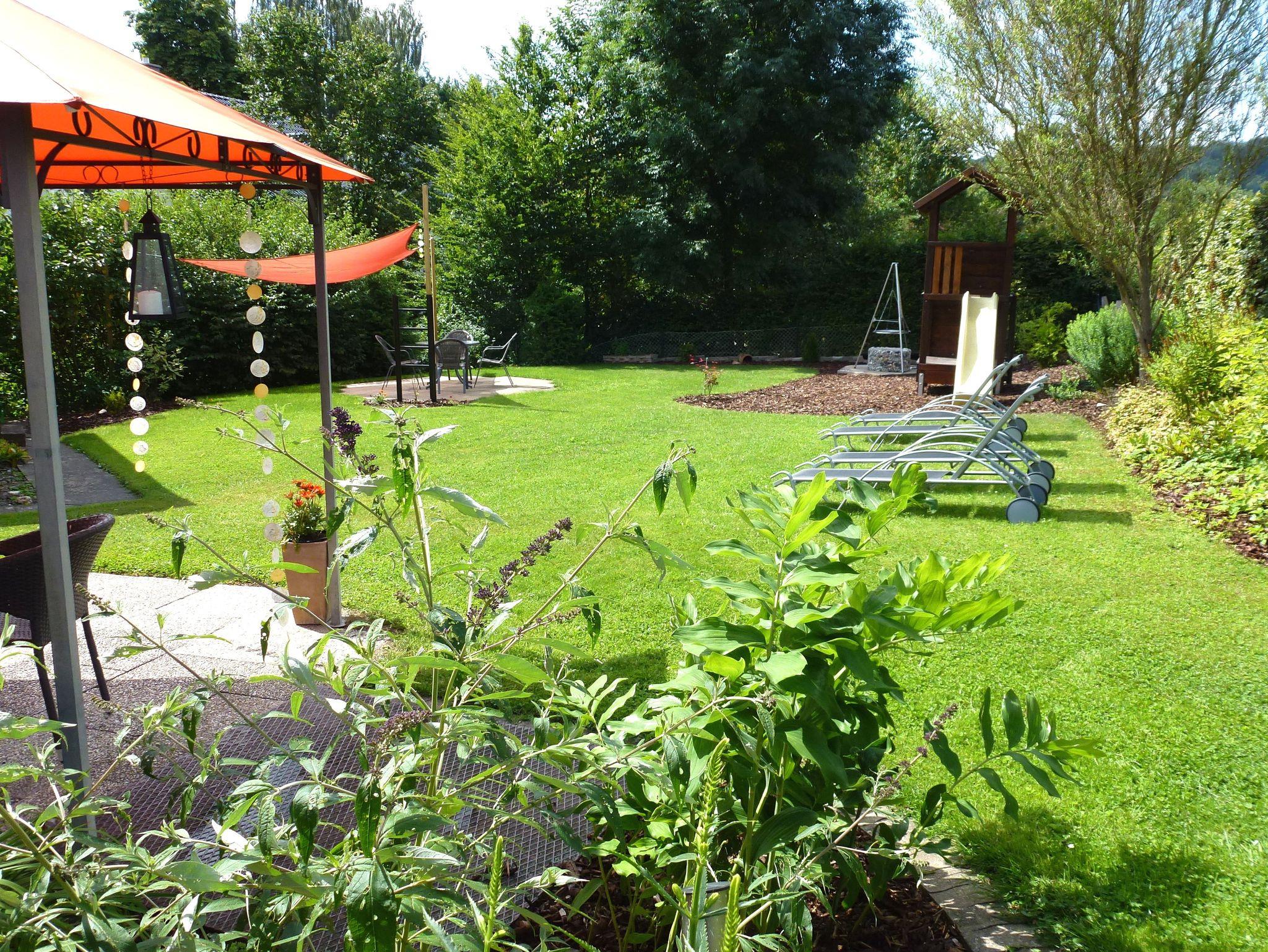 Ein großer Garten mit zusätzlichen Terrassen, Grillplatz und Liegewiese stehen zur Verfügung.