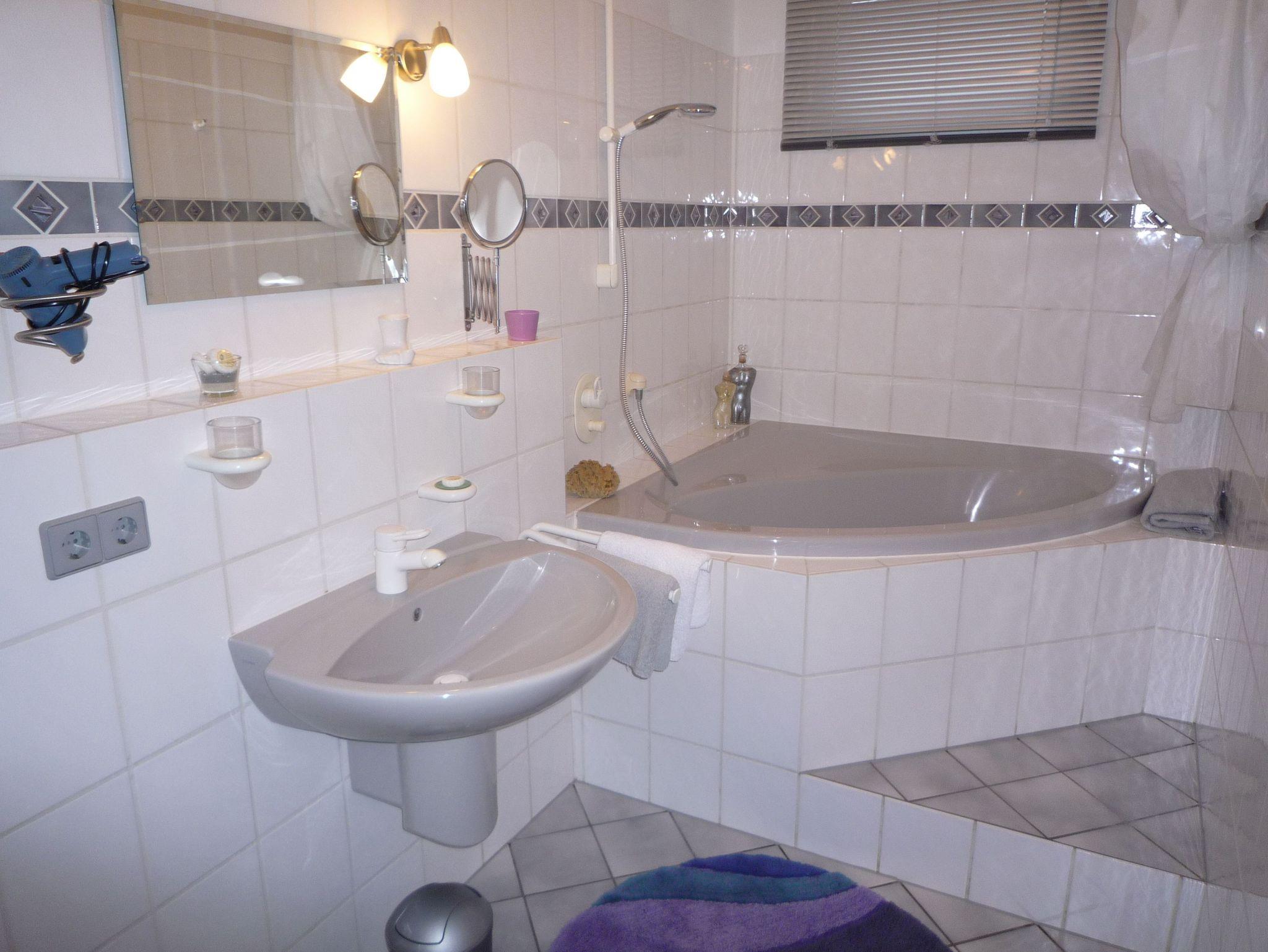 Ein schönes Entspannungsbad in der großzügigen Dusch-Eckbadewanne im Badezimmer, lässt garantiert den Alltag vergessen.