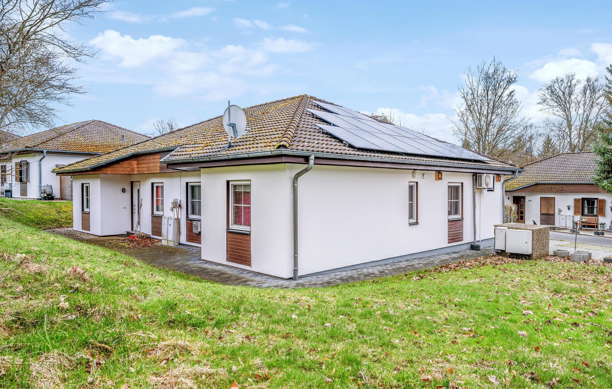 Du bor i den ene halvdel af ??et hus i bungalowstil. Alle værelser og terrasser er i stueetagen.