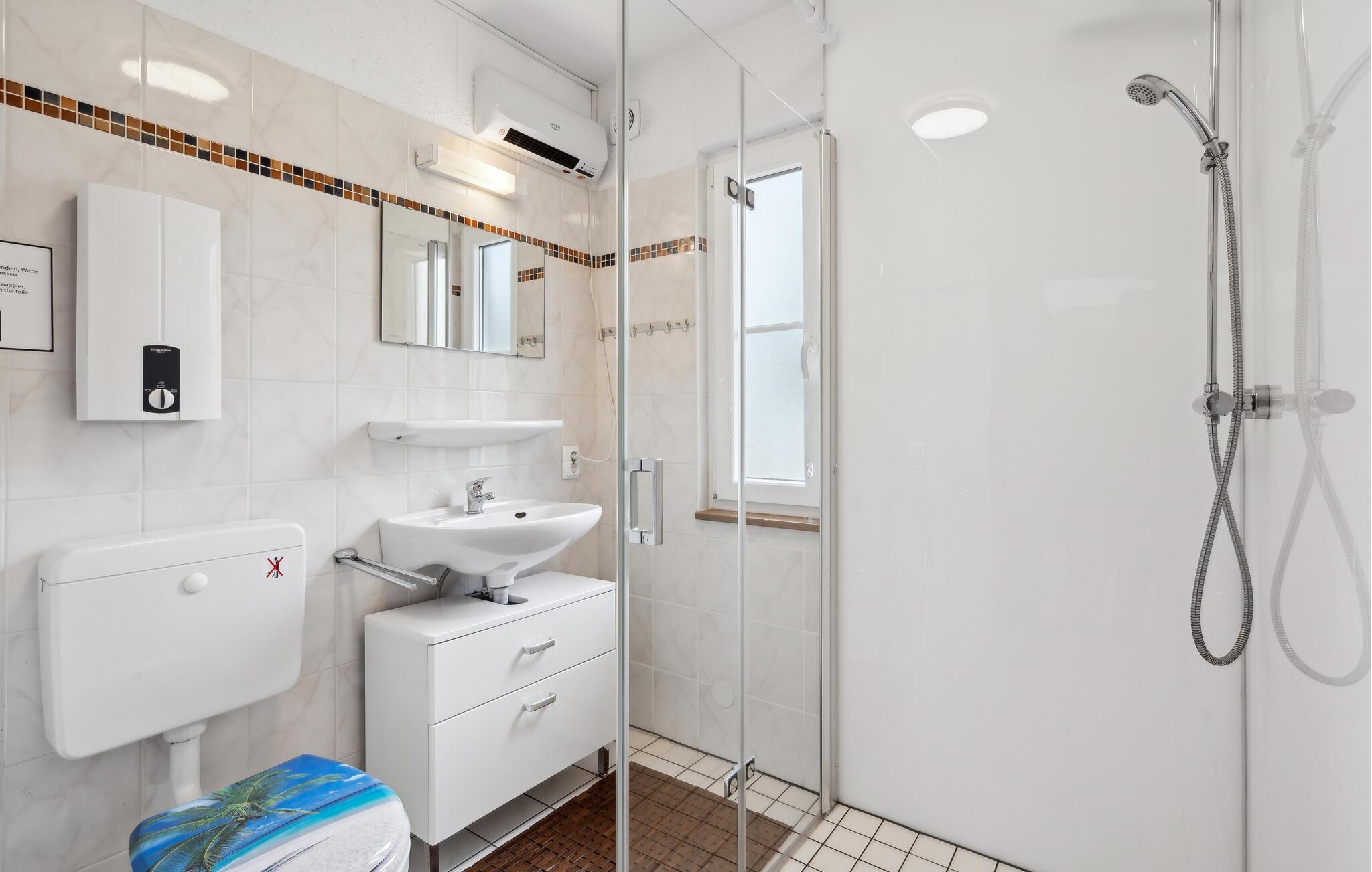 Badeværelse (nr. 1) - WC. Varmt og koldt vand. Bruser