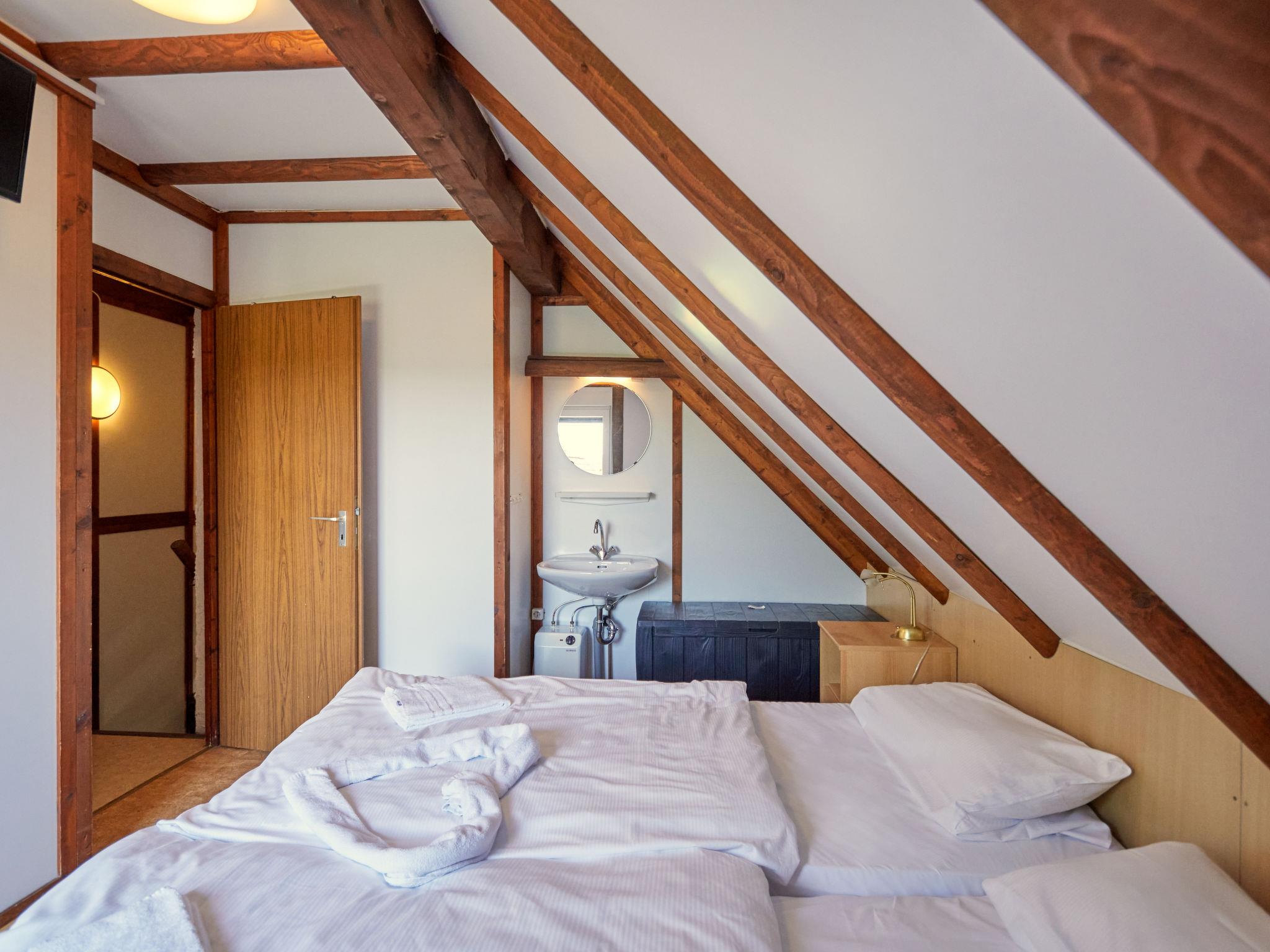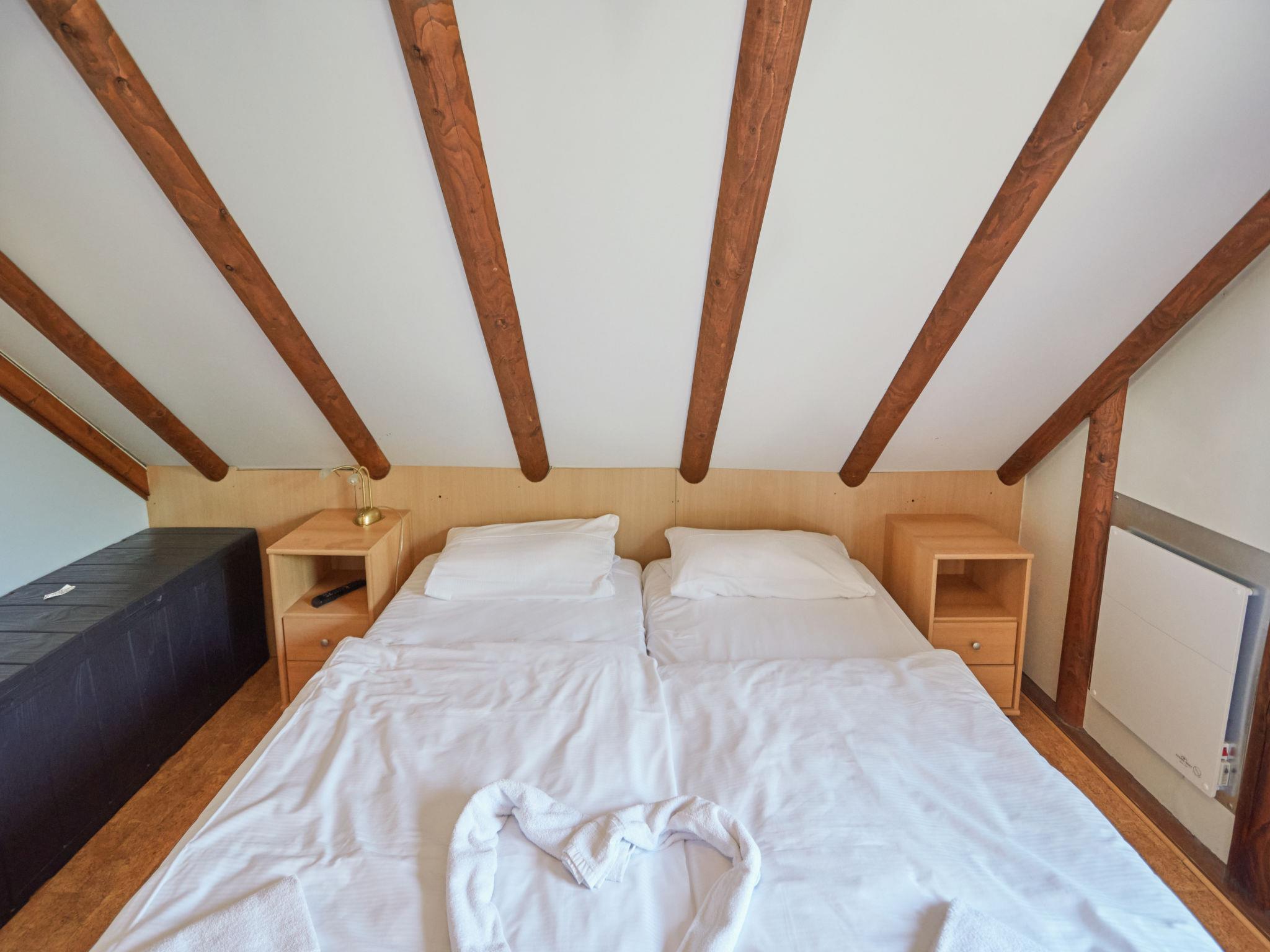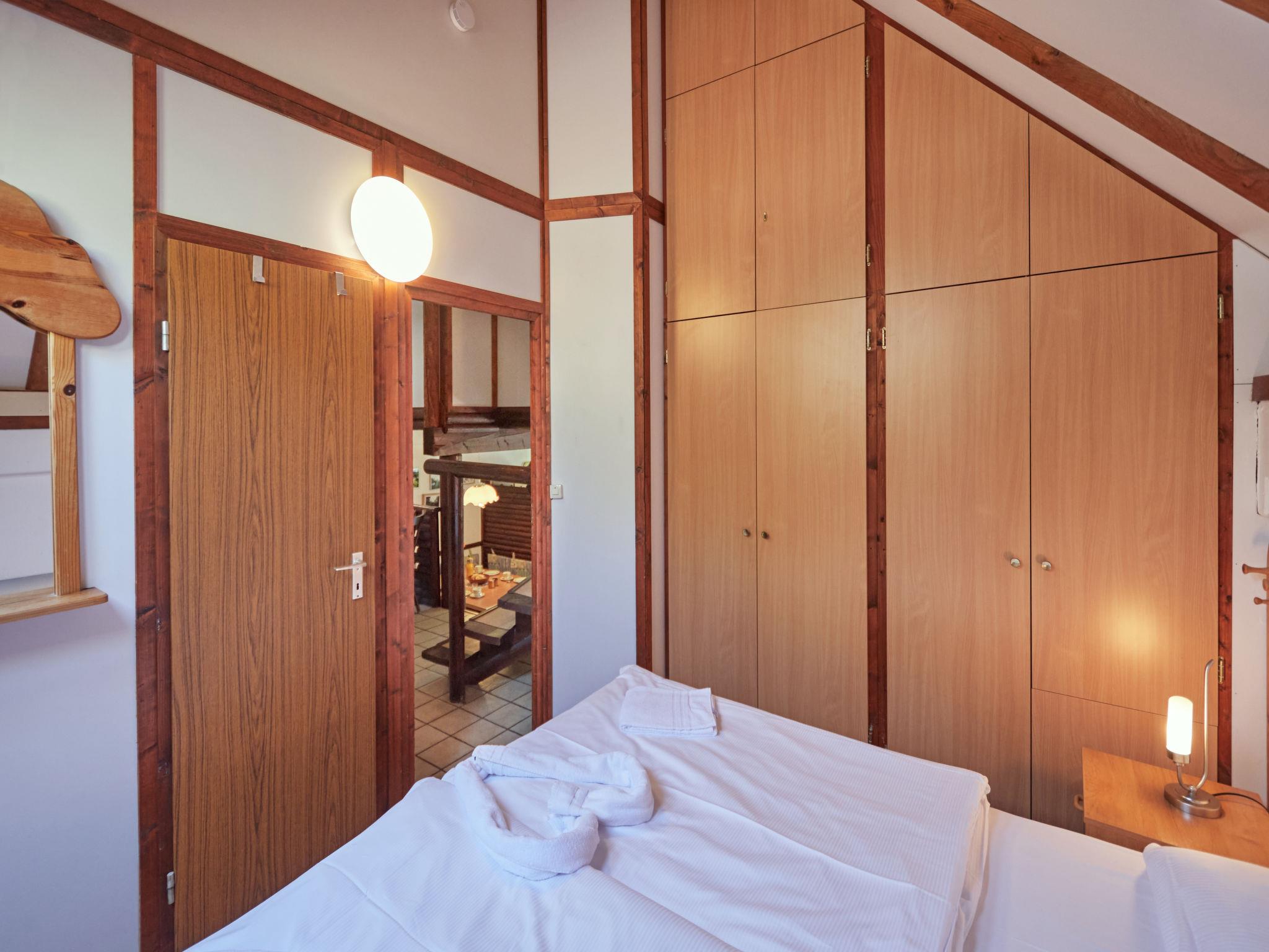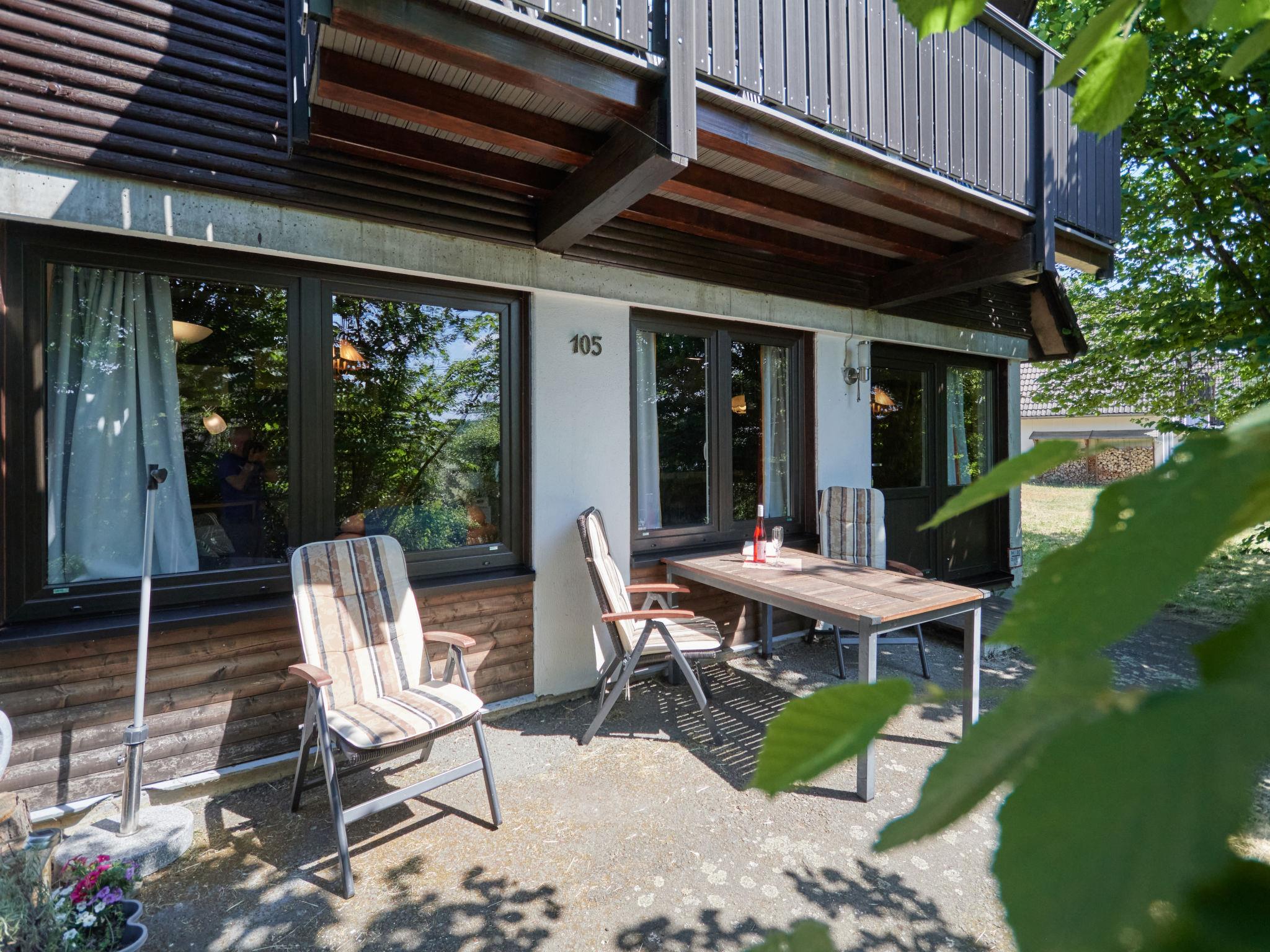 "Am Sternberg 105", 3-room house 65 m2 on 2 levels, on the ground floor. Cosy and wooden furniture furnishings: living/dining room 25 m2 with Scandinavian wood stove and cable TV (flat screen), wood-burning stove. Exit to the terrace, to the patio. 1 room 12 m2 with 1 double bed (180 cm, length 200 cm), hand-basin and separate WC. Small, open kitchen 8 m2 (4 hot plates, oven, dishwasher, kettle, microwave, freezer, electric coffee machine, Capsules for coffee machine (Senseo)). Shower/WC. Upper floor: (spiral staircase), 1 room 11 m2, with sloping ceilings with 1 double bed (180 cm, length 200 cm), cable TV (flat screen). Exit to the balcony. Electric heating. Small balcony 5 m2, large terrace 20 m2 partly roofed, patio, lawn 200 m2. Terrace furniture, balcony furniture, barbecue (portable), deck chairs (3). Facilities: hair dryer, logs (extra). Internet (WiFi, free). Please note: non-smoking house. Smoke alarm, fire extinguisher. On the ground floor, the rooms are connected by stairs(mezzanine).