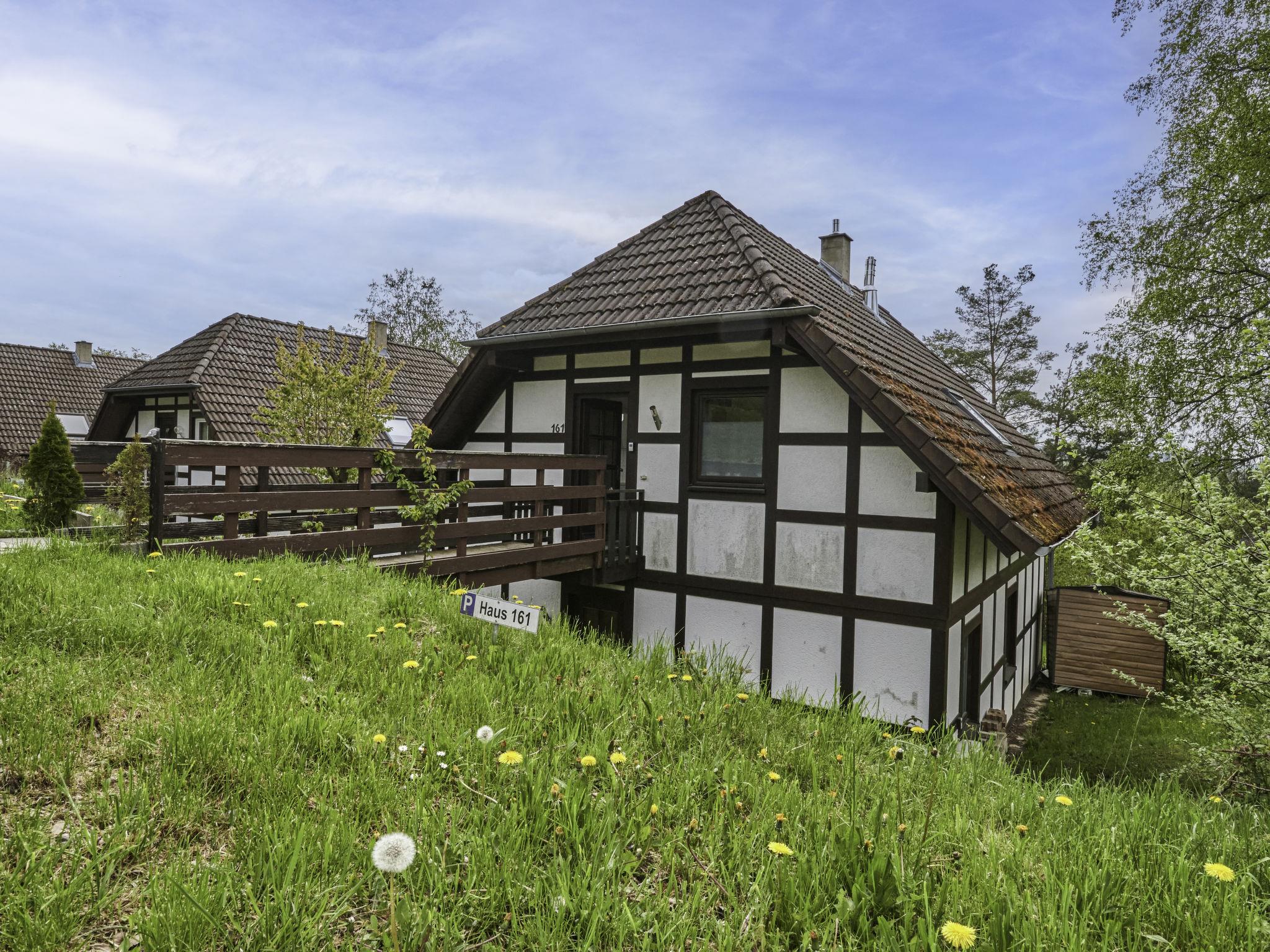 Holiday village "Frankenau", surrounded by trees and meadows. Outside the resort, 2 km from the centre of Frankenau, in the district Nationalpark Kellerwald, on a slope, 28 km from the lake. For shared use: natural state property, pond. In the complex: restaurant with TV, kiosk, sun terrace. Bread roll service. Grocery 8 km, restaurant 2 km, bakery 2 km, bicycle rental 15 km, bus stop 400 m, railway station "Frankenberg" 15 km, outdoor swimming pool 6 km, indoor swimming pool 15 km, thermal baths "Bad Wildungen-Reinhardshausen" 20 km, bathing lake 12 km. Golf course (18 hole) 25 km, tennis, indoor tennis centre 400 m, walking paths from the house 100 m, cycle lane 500 m, gondola lift 27 km, fishing possibilities 700 m. Nearby attractions: KellerwaldUhr 500 m, Schloss Waldeck 27 km. Well-known ski regions can easily be reached: Winterberg 45 km, Willingen 50 km. Well-known lakes can easily be reached: Edersee - Herzhausen 13 km. Hiking paths: Nationalpark Kellerwald 500 m. Please note: suitable for families. Neighbourhood highly sensitive to noise. Quietness and good behaviour expected. Some of the holiday homes can be reached via steps. At the park entrance there is a bistro/café with a sun terrace, Sunday breakfast buffet, children's cinema, table football (limited opening times outside of the season). There is also the option of using a washing machine and dryer for a fee.