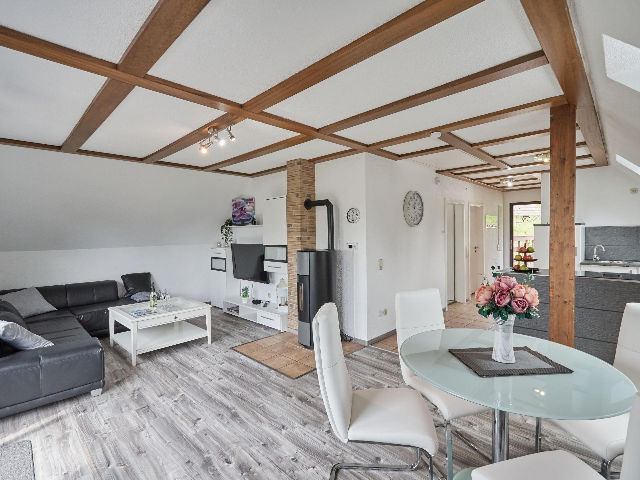 "Rapunzel", 3-room apartment 65 m2, on the upper floor. With sloping ceilings, fully renovated in 2022, cosy furnishings: living/dining room 40 m2 with satellite TV (flat screen), wood-burning stove. 1 double bedroom 10 m2. 1 room 10 m2 with 1 bed. Open kitchen (oven, 4 ceramic glass hob hotplates, electric coffee machine). Shower/WC. Electric heating. Beautiful view of the countryside. Facilities: washing machine (extra). Children's high chair, logs (extra). Internet (WiFi, free). Parking at the house. Please note: non-smokers only. Maximum 1 small pet/ dog allowed. Private entrance, smoke alarm, fire extinguisher. Netflix (free). Access to the apartment through a jetty. Bookings accepted for holiday purposes only.