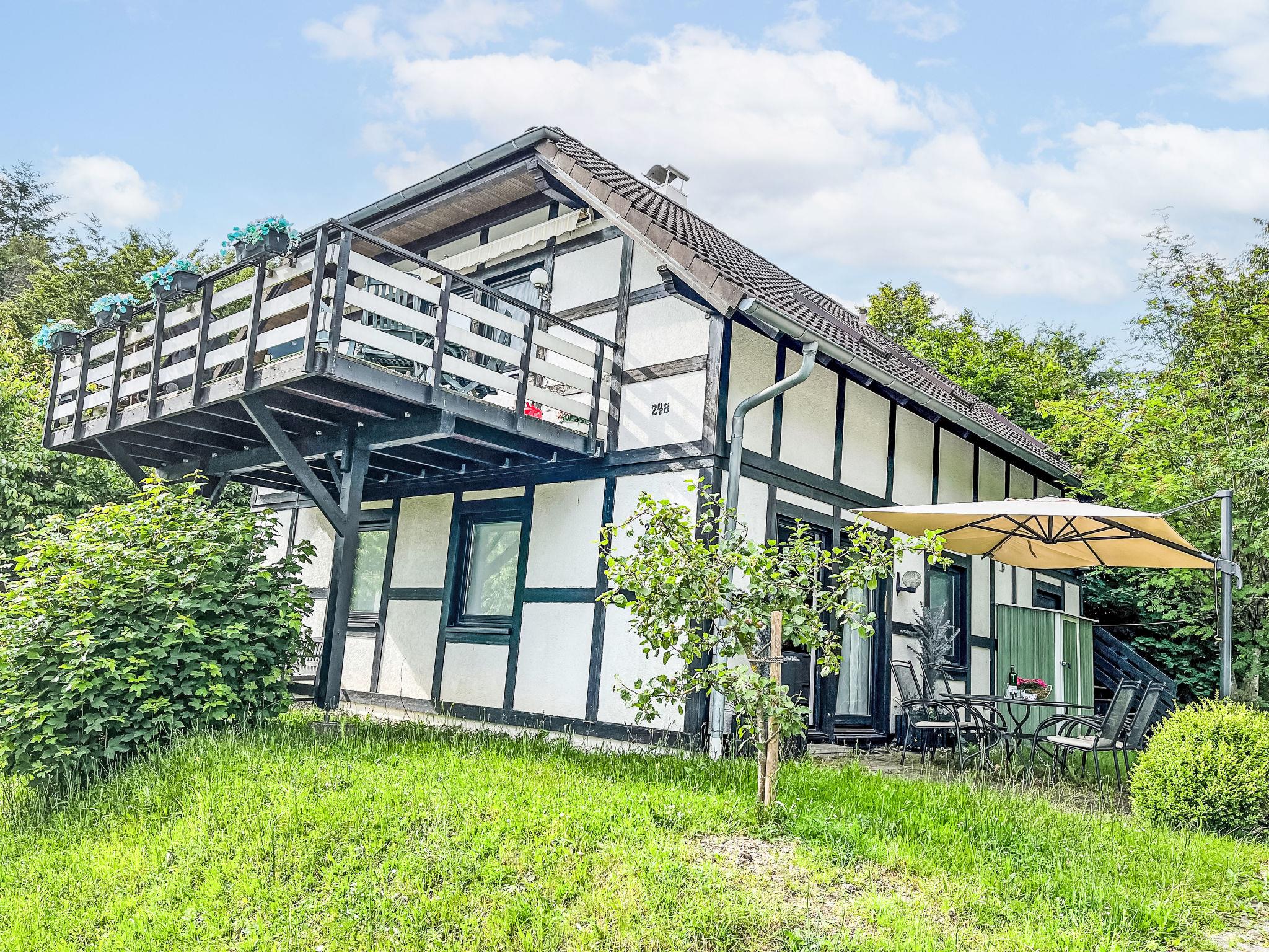 Holiday village "Frankenau", surrounded by trees and meadows. Outside the resort, 2 km from the centre of Frankenau, in the district Nationalpark Kellerwald, on a slope, 28 km from the lake. For shared use: natural state property, pond. In the complex: restaurant with TV, kiosk, sun terrace. Bread roll service. Grocery 8 km, restaurant 2 km, bakery 2 km, bicycle rental 15 km, bus stop 400 m, railway station "Frankenberg" 15 km, outdoor swimming pool 6 km, indoor swimming pool 15 km, thermal baths "Bad Wildungen-Reinhardshausen" 20 km, bathing lake 12 km. Golf course (18 hole) 25 km, tennis, indoor tennis centre 400 m, walking paths from the house 100 m, cycle lane 500 m, gondola lift 27 km, fishing possibilities 700 m. Nearby attractions: KellerwaldUhr 500 m, Schloss Waldeck 27 km. Well-known ski regions can easily be reached: Winterberg 45 km, Willingen 50 km. Well-known lakes can easily be reached: Edersee - Herzhausen 13 km. Hiking paths: Nationalpark Kellerwald 500 m. Please note: suitable for families. Neighbourhood highly sensitive to noise. Quietness and good behaviour expected. Some of the holiday homes can be reached via steps. At the park entrance there is a bistro/café with a sun terrace, Sunday breakfast buffet, children's cinema, table football (limited opening times outside of the season). There is also the option of using a washing machine and dryer for a fee.