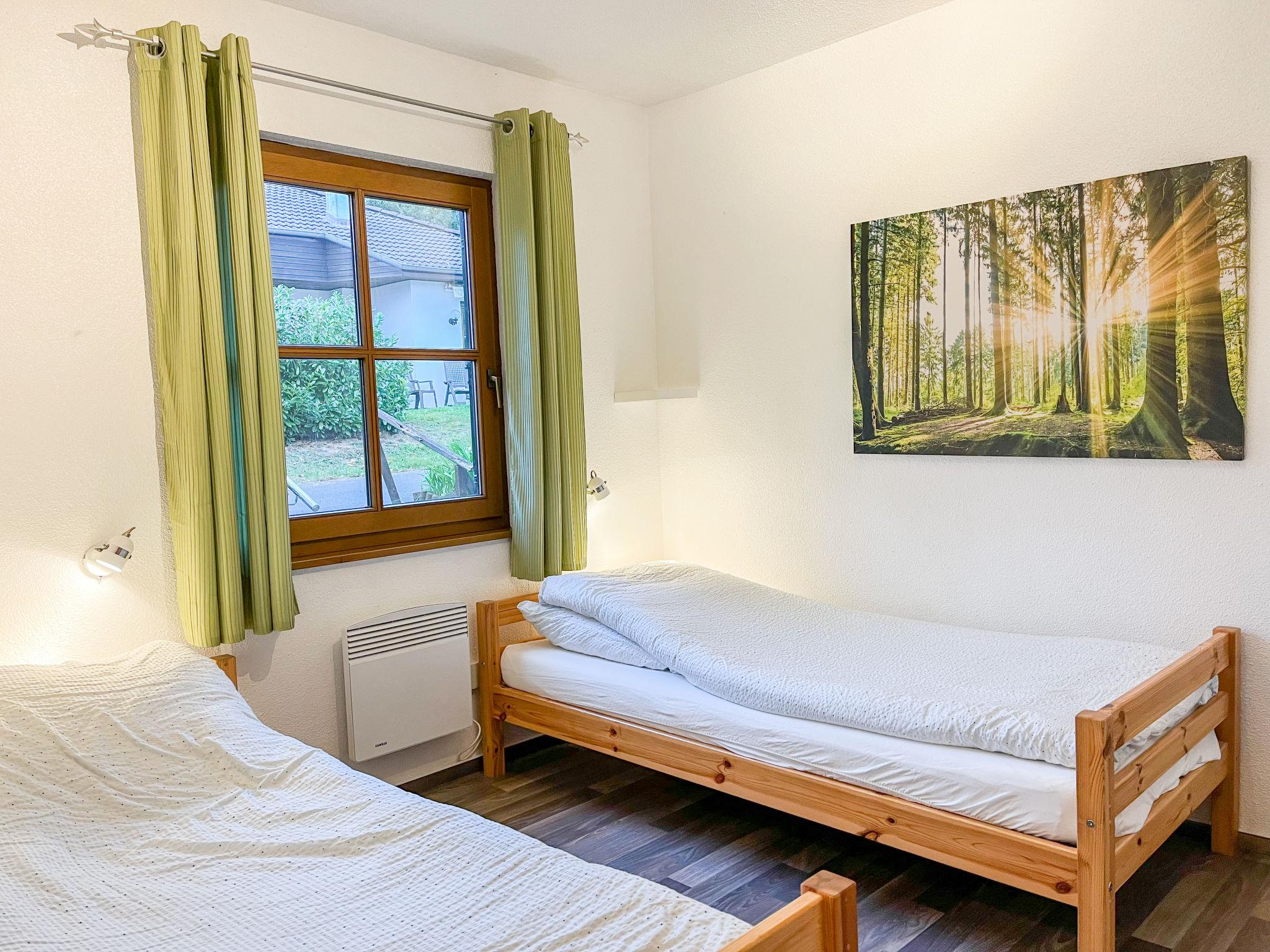 Holiday village "Frankenau", surrounded by trees and meadows. Outside the resort, 2 km from the centre of Frankenau, in the district Nationalpark Kellerwald, on a slope, 28 km from the lake. For shared use: natural state property, pond. In the complex: restaurant with TV, kiosk, sun terrace. Bread roll service. Grocery 8 km, restaurant 2 km, bakery 2 km, bicycle rental 15 km, bus stop 400 m, railway station "Frankenberg" 15 km, outdoor swimming pool 6 km, indoor swimming pool 15 km, thermal baths "Bad Wildungen-Reinhardshausen" 20 km, bathing lake 12 km. Golf course (18 hole) 25 km, tennis, indoor tennis centre 400 m, walking paths from the house 100 m, cycle lane 500 m, gondola lift 27 km, fishing possibilities 700 m. Nearby attractions: KellerwaldUhr 500 m, Schloss Waldeck 27 km. Well-known ski regions can easily be reached: Winterberg 45 km, Willingen 50 km. Well-known lakes can easily be reached: Edersee - Herzhausen 13 km. Hiking paths: Nationalpark Kellerwald 500 m. Please note: suitable for families. Neighbourhood highly sensitive to noise. Quietness and good behaviour expected. Some of the holiday homes can be reached via steps. At the park entrance there is a bistro/café with a sun terrace, Sunday breakfast buffet, children's cinema, table football (limited opening times outside of the season). There is also the option of using a washing machine and dryer for a fee.