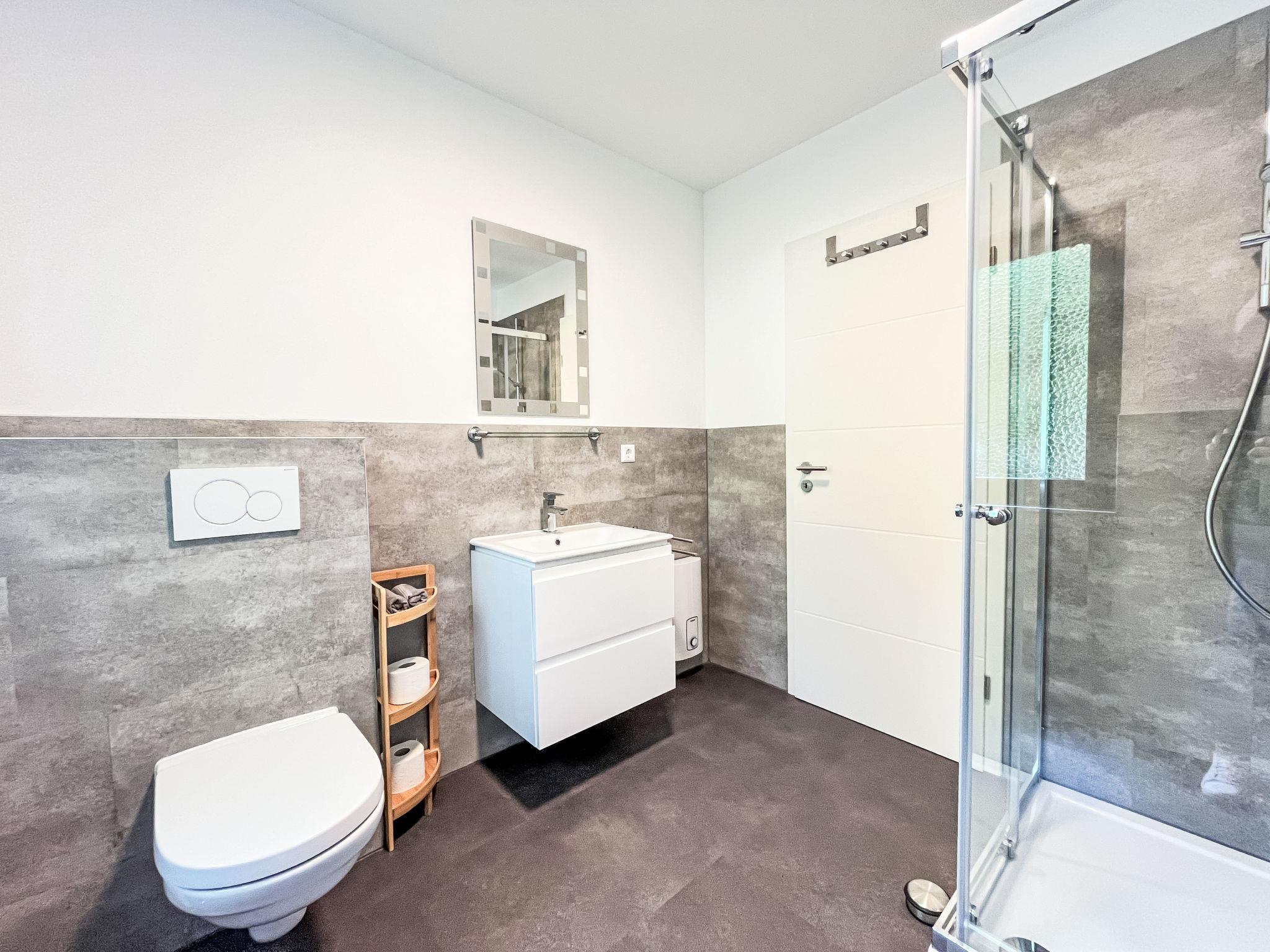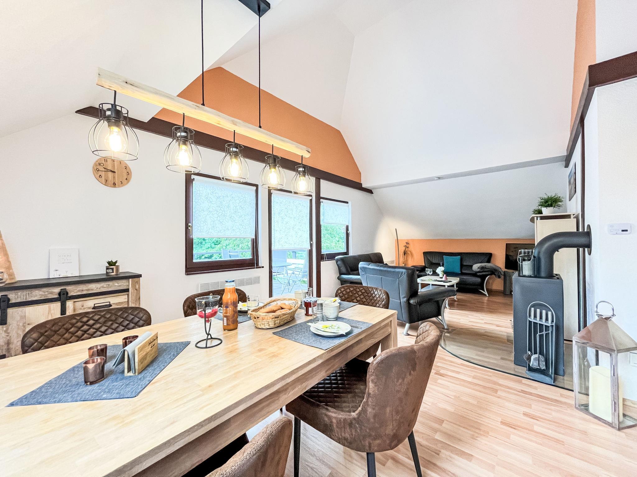 "Sternberg 225/227", 6-room house 172 m2 on 2 levels. Modern and cosy furnishings: living/dining room with Scandinavian wood stove, satellite TV and radio. Exit to the terrace. 1 room with 1 double bed. 1 room with 2 beds. Open kitchen (oven, dishwasher, 4 ceramic glass hob hotplates, toaster, kettle, microwave, freezer, electric coffee machine). Shower/WC. Upper floor: living/dining room with Scandinavian wood stove and satellite TV. Exit to the balcony. 1 room with 1 double bed. 1 room with 2 beds. Open kitchen (oven, dishwasher, 4 ceramic glass hob hotplates, toaster, kettle, microwave, freezer, electric coffee machine). Shower/WC. Electric heating. Large balcony, large terrace. Terrace furniture, balcony furniture. Facilities: washing machine, children's high chair, baby cot. Internet (WiFi, free). Please note: non-smoking house. Maximum 2 pets/ dogs allowed. Smoke alarm, fire extinguisher. No internal connecting door between the separated properties.