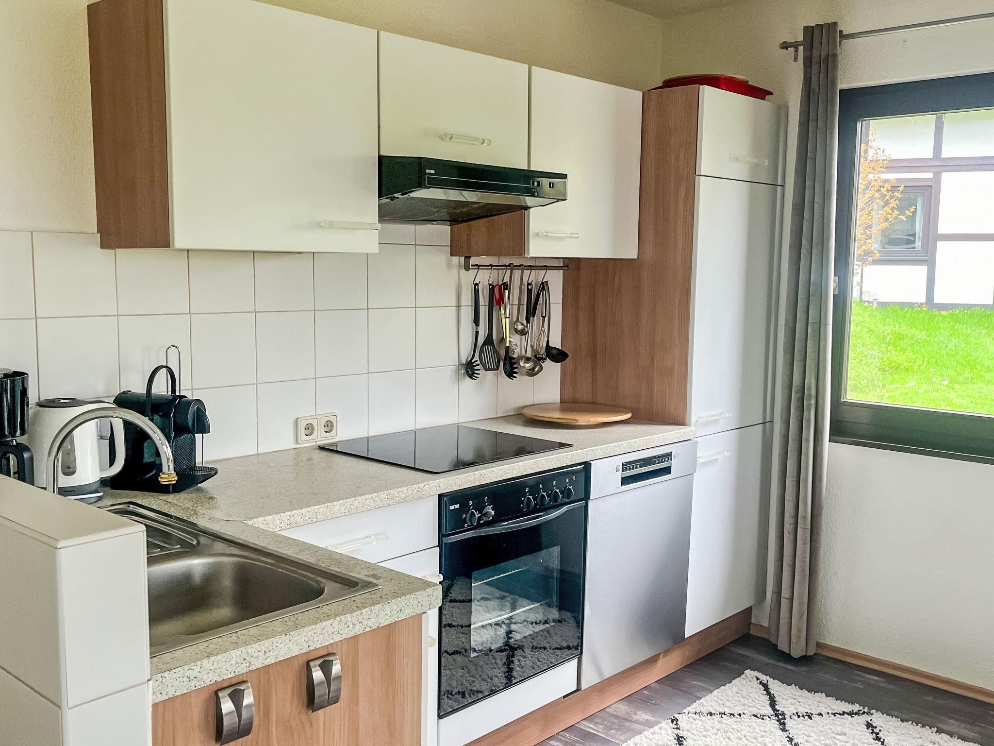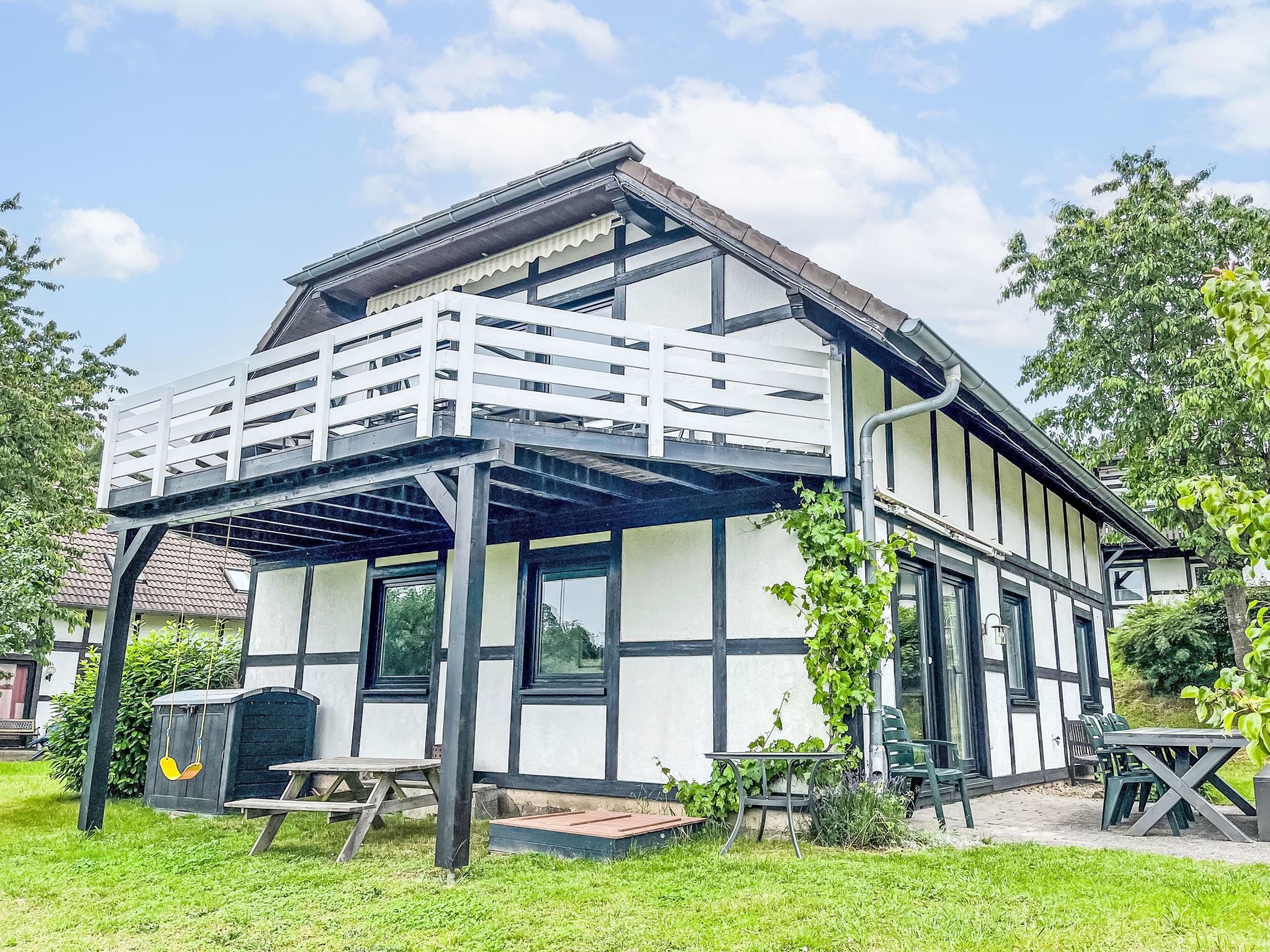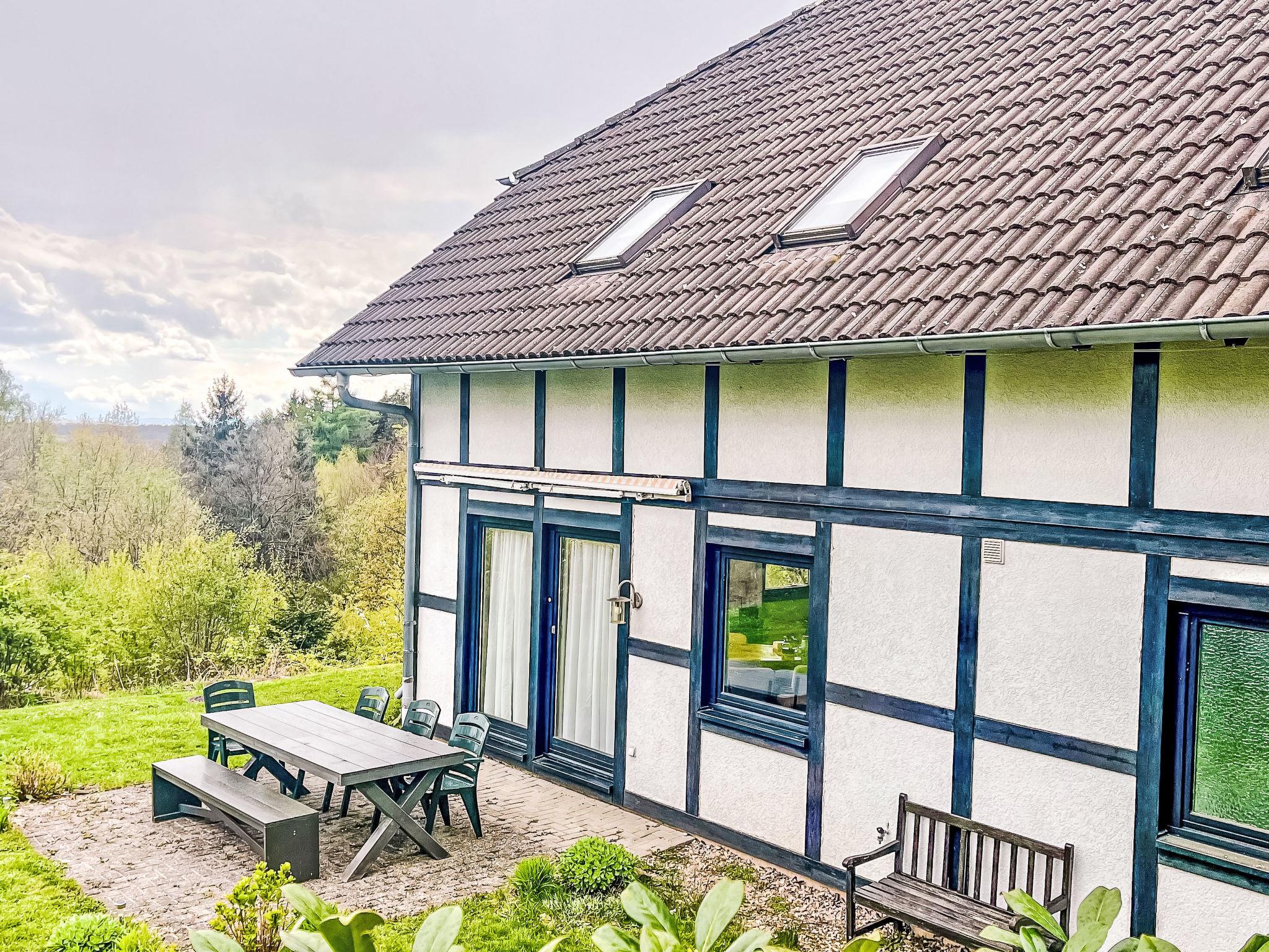 Holiday village "Frankenau", surrounded by trees and meadows. Outside the resort, 2 km from the centre of Frankenau, in the district Nationalpark Kellerwald, on a slope, 28 km from the lake. For shared use: natural state property, pond. In the complex: restaurant with TV, kiosk, sun terrace. Bread roll service. Grocery 8 km, restaurant 2 km, bakery 2 km, bicycle rental 15 km, bus stop 400 m, railway station "Frankenberg" 15 km, outdoor swimming pool 6 km, indoor swimming pool 15 km, thermal baths "Bad Wildungen-Reinhardshausen" 20 km, bathing lake 12 km. Golf course (18 hole) 25 km, tennis, indoor tennis centre 400 m, walking paths from the house 100 m, cycle lane 500 m, gondola lift 27 km, fishing possibilities 700 m. Nearby attractions: KellerwaldUhr 500 m, Schloss Waldeck 27 km. Well-known ski regions can easily be reached: Winterberg 45 km, Willingen 50 km. Well-known lakes can easily be reached: Edersee - Herzhausen 13 km. Hiking paths: Nationalpark Kellerwald 500 m. Please note: suitable for families. Neighbourhood highly sensitive to noise. Quietness and good behaviour expected. Some of the holiday homes can be reached via steps. At the park entrance there is a bistro/café with a sun terrace, Sunday breakfast buffet, children's cinema, table football (limited opening times outside of the season). There is also the option of using a washing machine and dryer for a fee.