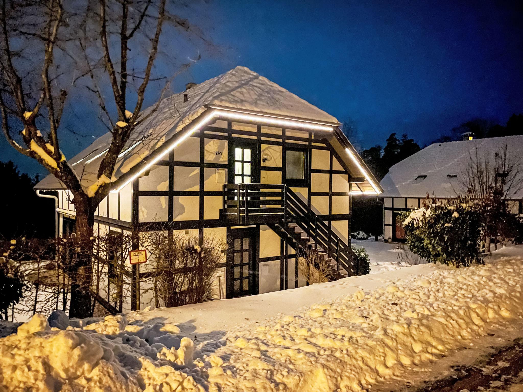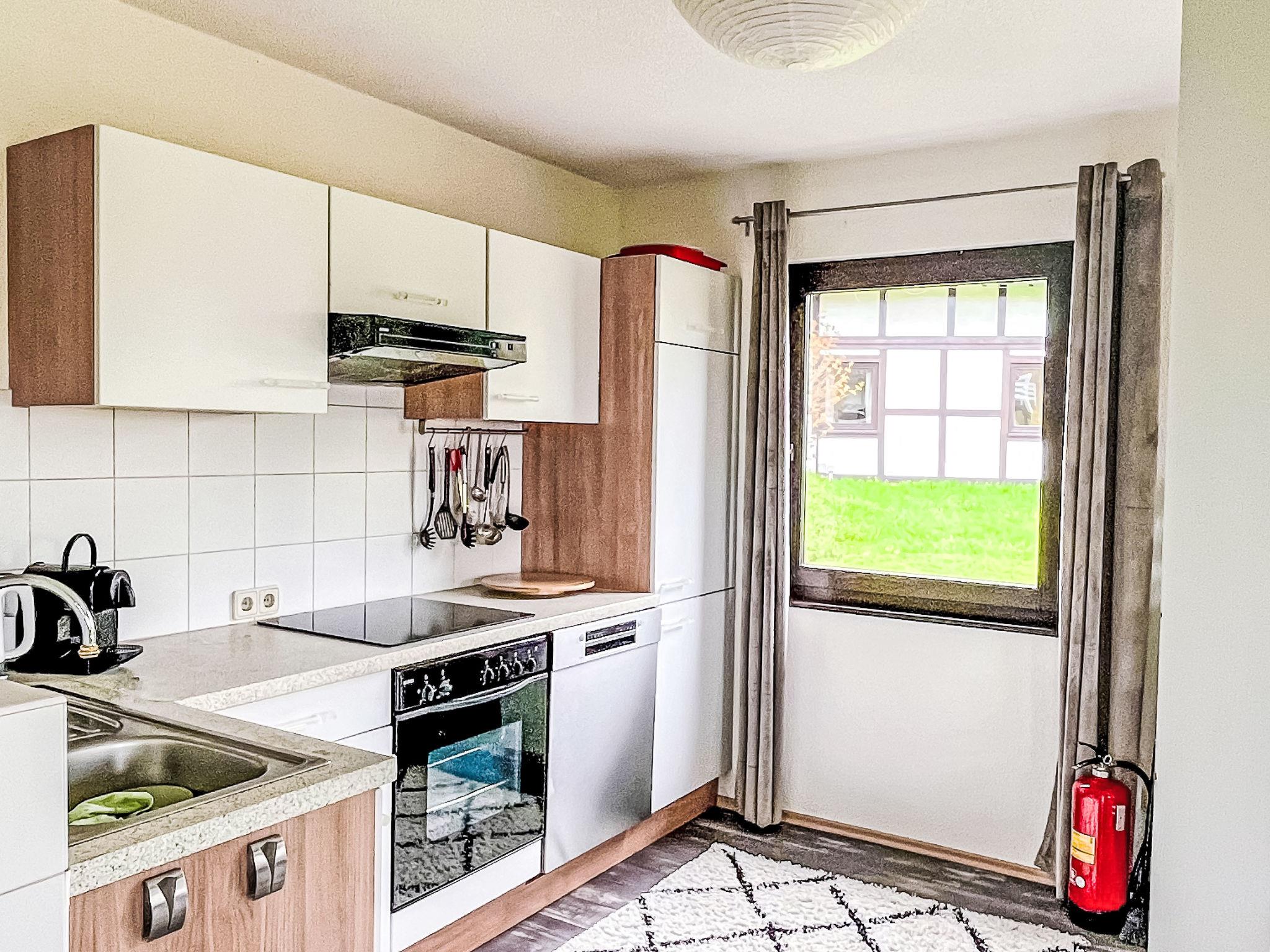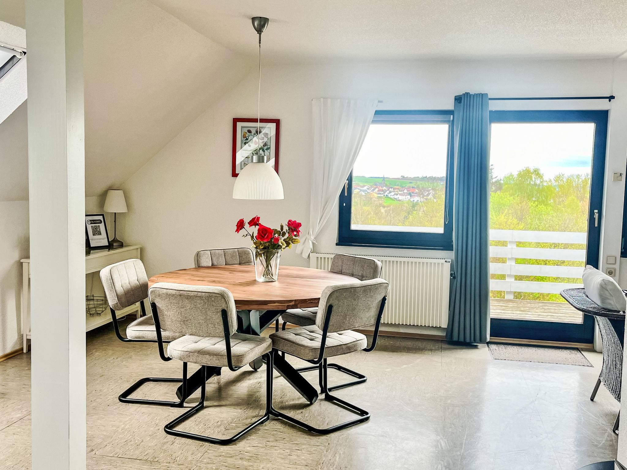Holiday village "Frankenau", surrounded by trees and meadows. Outside the resort, 2 km from the centre of Frankenau, in the district Nationalpark Kellerwald, on a slope, 28 km from the lake. For shared use: natural state property, pond. In the complex: restaurant with TV, kiosk, sun terrace. Bread roll service. Grocery 8 km, restaurant 2 km, bakery 2 km, bicycle rental 15 km, bus stop 400 m, railway station "Frankenberg" 15 km, outdoor swimming pool 6 km, indoor swimming pool 15 km, thermal baths "Bad Wildungen-Reinhardshausen" 20 km, bathing lake 12 km. Golf course (18 hole) 25 km, tennis, indoor tennis centre 400 m, walking paths from the house 100 m, cycle lane 500 m, gondola lift 27 km, fishing possibilities 700 m. Nearby attractions: KellerwaldUhr 500 m, Schloss Waldeck 27 km. Well-known ski regions can easily be reached: Winterberg 45 km, Willingen 50 km. Well-known lakes can easily be reached: Edersee - Herzhausen 13 km. Hiking paths: Nationalpark Kellerwald 500 m. Please note: suitable for families. Neighbourhood highly sensitive to noise. Quietness and good behaviour expected. Some of the holiday homes can be reached via steps. At the park entrance there is a bistro/café with a sun terrace, Sunday breakfast buffet, children's cinema, table football (limited opening times outside of the season). There is also the option of using a washing machine and dryer for a fee.