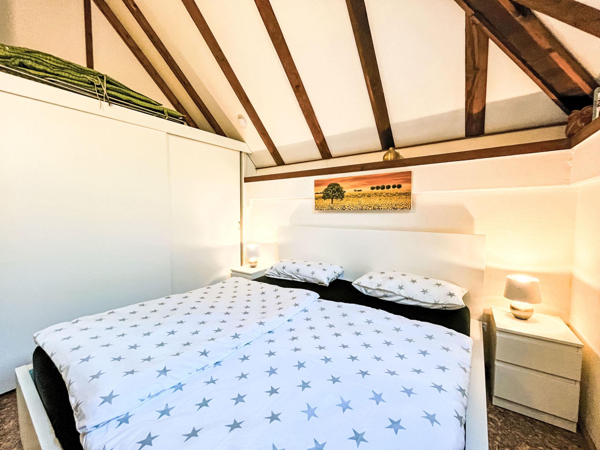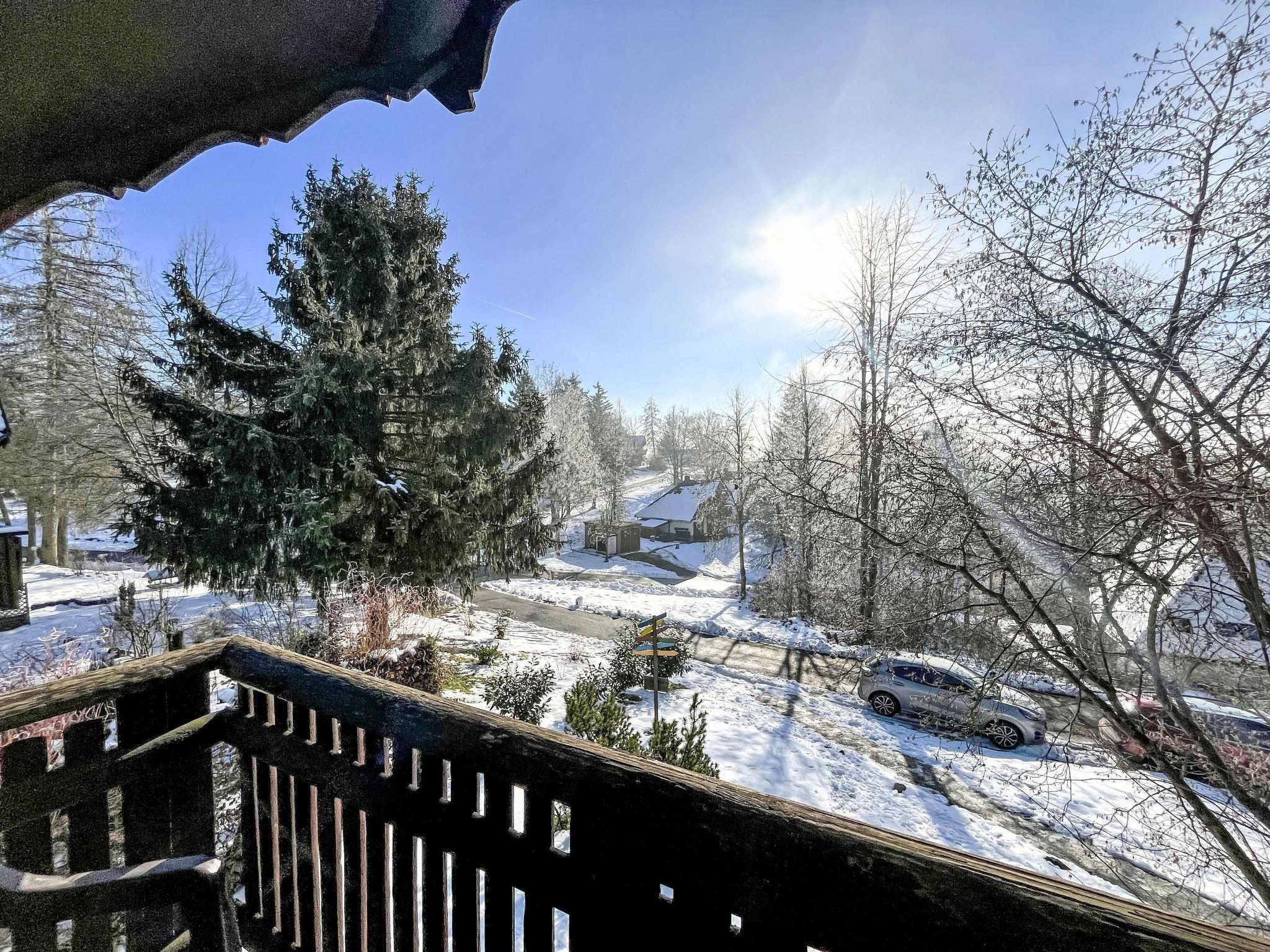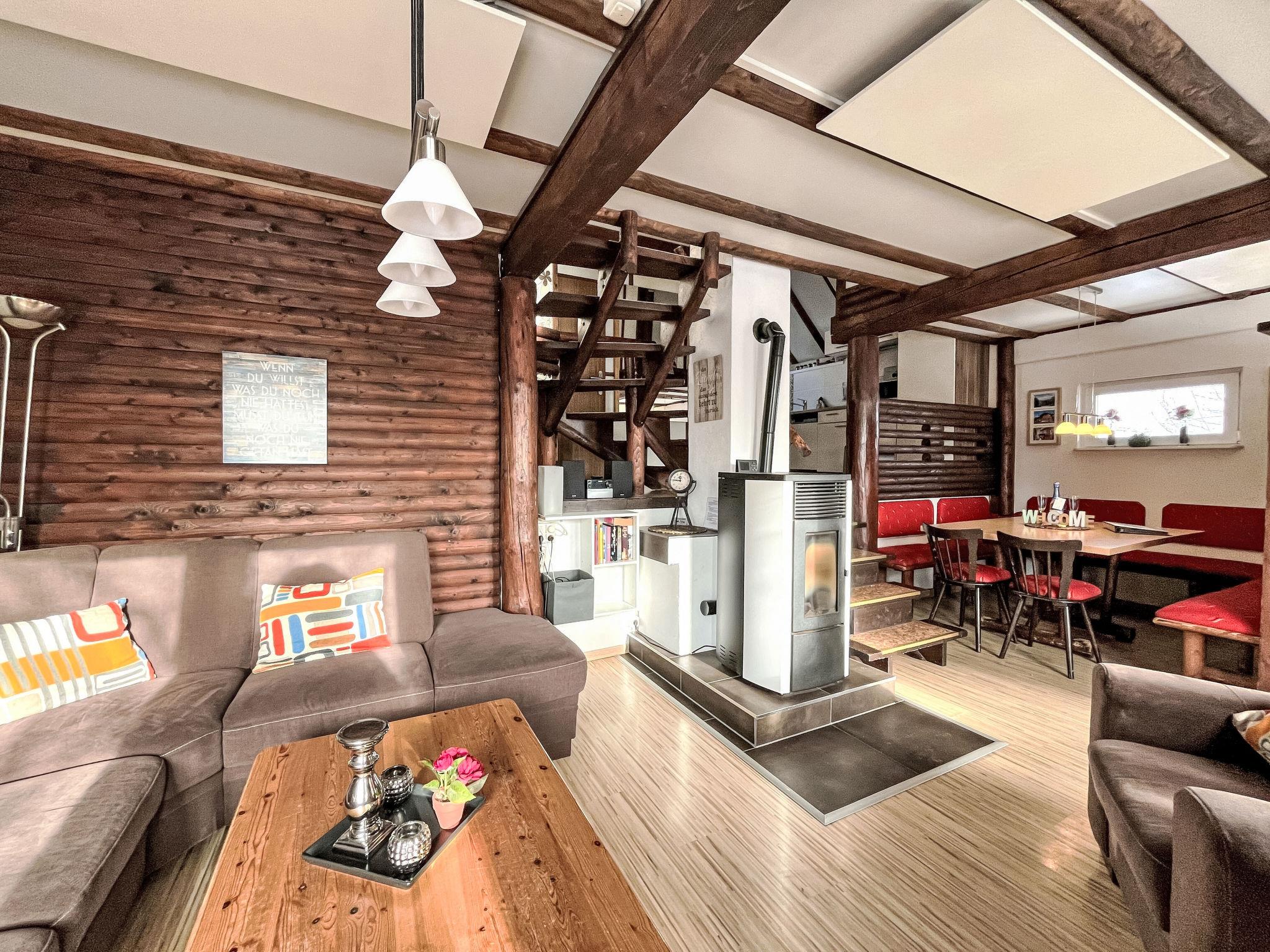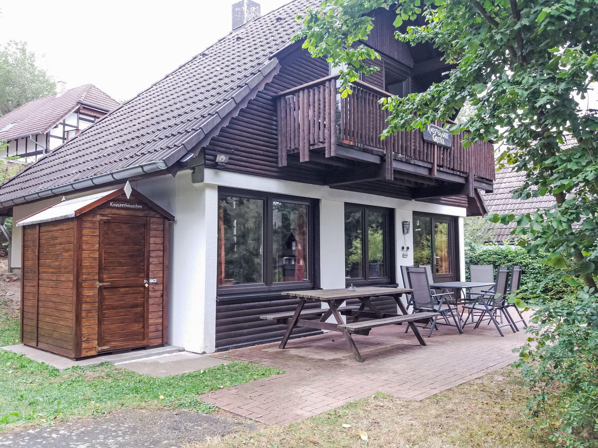 "Knusperhaus Gretel", 4-room house 75 m2 on 2 levels. Object suitable for 6 adults. Partly with sloping ceilings, cosy and wooden furniture furnishings: living/dining room with Scandinavian wood stove, dining nook and cable TV (flat screen), hi-fi system. Exit to the terrace, to the patio. 1 room 12 m2 with 1 double bed (180 cm, length 200 cm). Open kitchen 8 m2 (oven, dishwasher, 4 ceramic glass hob hotplates, toaster, kettle, microwave, electric coffee machine). Sep. WC. Upper floor: (spiral staircase), 1 room 12 m2, with sloping ceilings with 1 double bed (200 cm, length 200 cm), electric shutters. Exit to the balcony. 1 room 11 m2, with sloping ceilings with 2 beds (100 cm, length 200 cm), electric shutters. Shower/WC. Electric heating. Small balcony 5 m2, south facing position, large terrace 30 m2 partly roofed, lawn 100 m2. Terrace furniture, balcony furniture. Facilities: children's high chair, baby cot for up to 2 year olds. Internet (WiFi). Parking. Please note: suitable for families. Non-smoking house. Maximum 2 pets/ dogs allowed. Smoke alarm, fire extinguisher. CO² alarm available. Pellet stove: 1x pellets (15kg) is available free of charge from 1st November to 1st March. 1 free roll per person for the first breakfast of the holiday, 1 bag of gummy bears and 1 bottle of sparkling wine as a welcome.