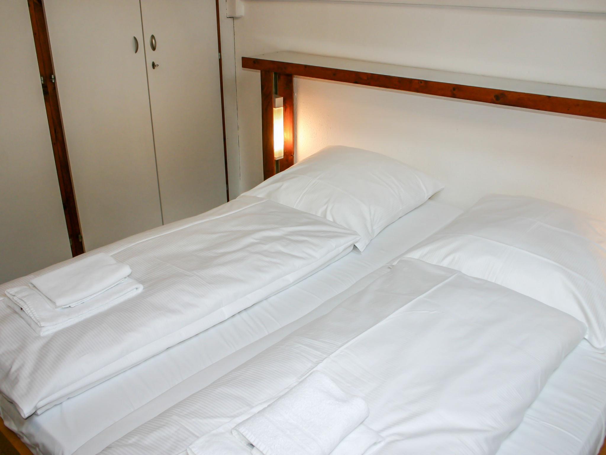 "Eule", 4-room house 75 m2 on 2 levels, on the ground floor. Partly renovated in 2021, cosy and wooden furniture furnishings: living/dining room 25 m2 with cable TV (flat screen), wood-burning stove. Exit to the terrace. 1 room 12 m2 with 1 double bed (180 cm, length 200 cm), separate WC. Open kitchen 8 m2 (4 hot plates, oven, dishwasher, electric coffee machine). Shower/WC. Upper floor: (spiral staircase), 1 room 12 m2, with sloping ceilings with 1 double bed (180 cm, length 200 cm), hand-basin. Exit to the balcony. 1 room 11 m2, with sloping ceilings with 2 beds (90 cm, length 200 cm), hand-basin. Exit to the balcony. Electric heating. Small balcony 5 m2, south facing position, large terrace 30 m2 partly roofed, lawn 150 m2. Terrace furniture, balcony furniture, barbecue (portable). Facilities: washing machine, iron, mosquito net, children's high chair, hair dryer, logs (extra). Internet (WiFi, free). Please note: non-smoking house. Maximum 2 pets/ dogs allowed. Smoke alarm, fire extinguisher. The rooms are connected by stairs (mezzanine) on the ground floor. Bookings accepted for holiday purposes only.