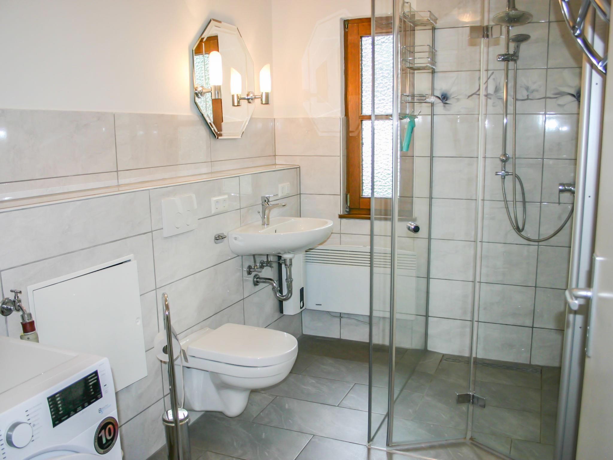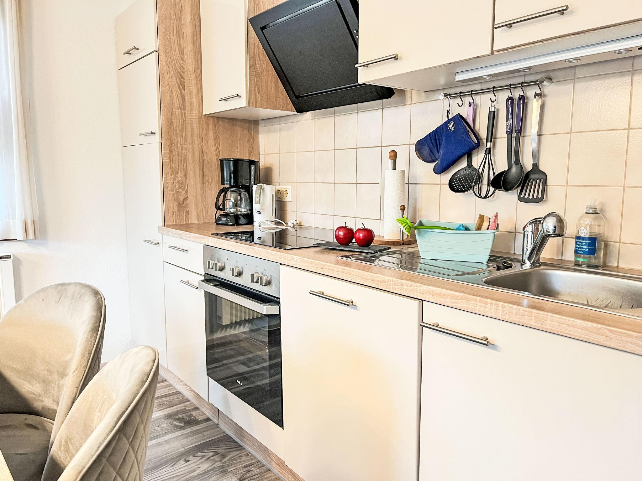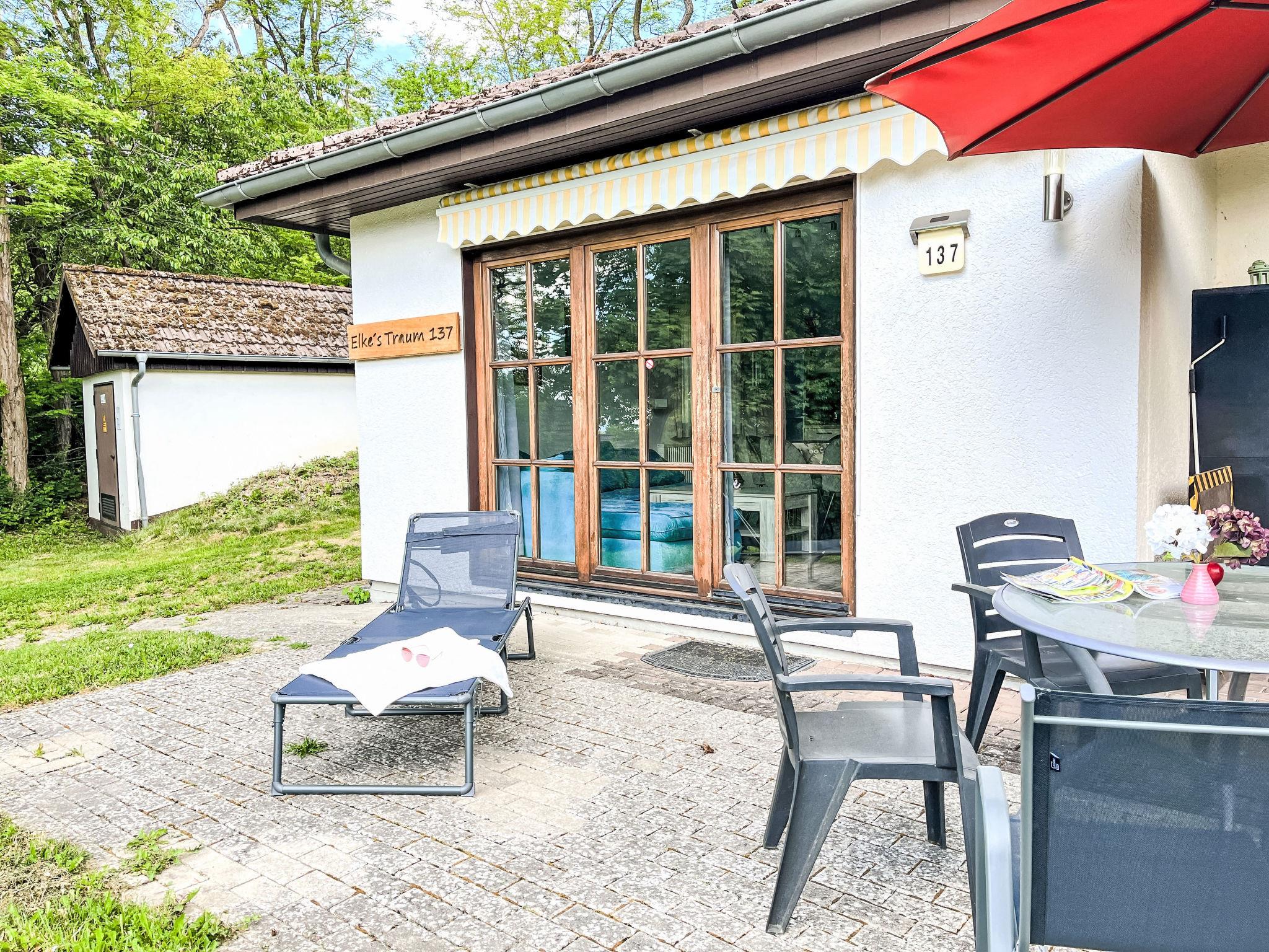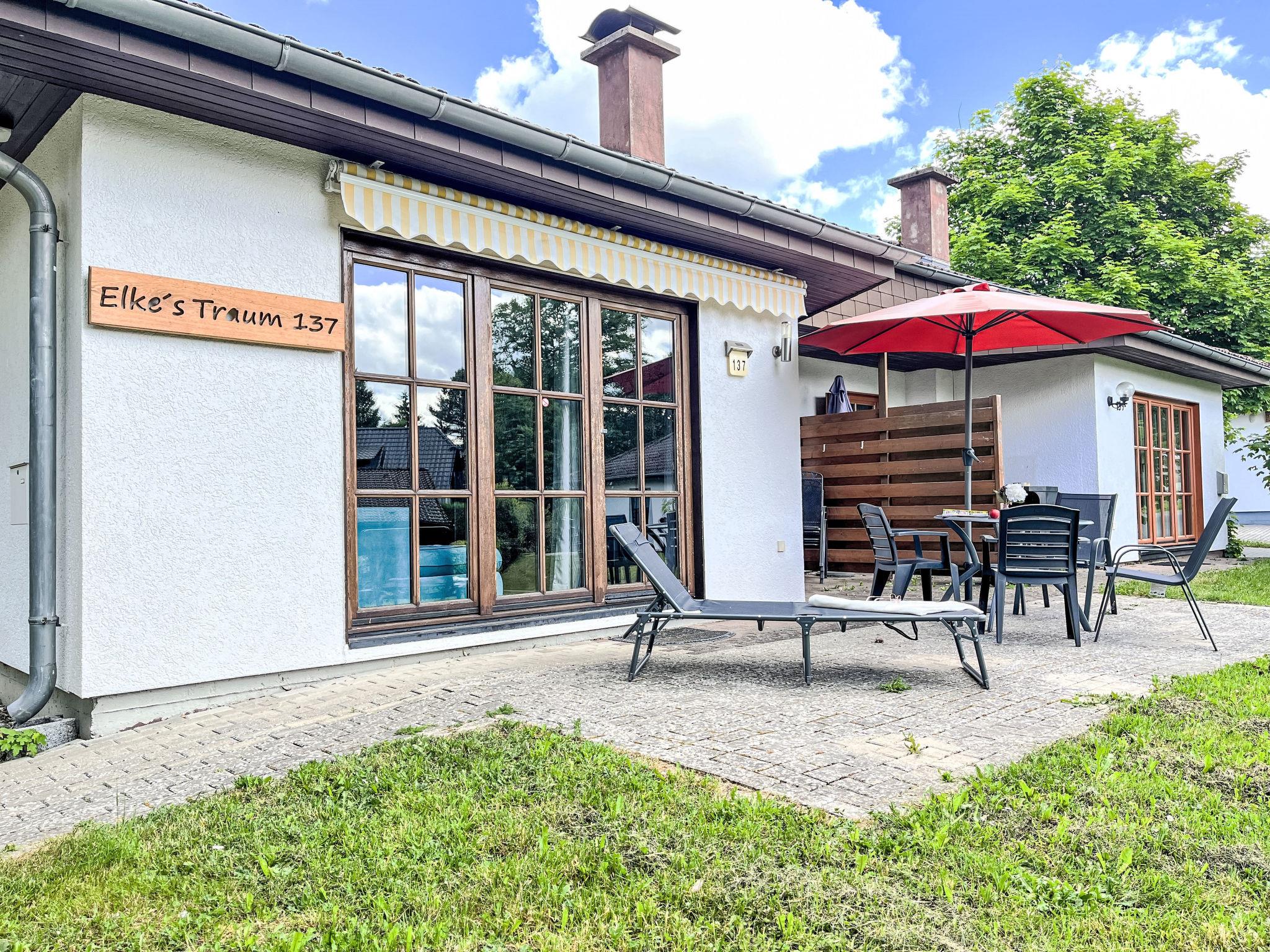 "Elke's Traum", 4-room bungalow 75 m2, on the ground floor. Tasteful and cosy furnishings: living/dining room 30 m2 with Scandinavian wood stove and cable TV (flat screen). Exit to the terrace. 1 room 12 m2 with 1 double bed (180 cm, length 200 cm). 1 room 10 m2 with 1 double bed (180 cm, length 200 cm). 1 room 10 m2 with 2 beds (90 cm, length 200 cm). Kitchenette (oven, dishwasher, 4 ceramic glass hob hotplates, toaster, kettle, electric coffee machine). Shower/WC. Electric heating. Large terrace 40 m2 partly roofed, south facing position, lawn 50 m2. Terrace furniture, barbecue (portable). Facilities: washing machine, dryer, iron, children's high chair, baby cot, hair dryer, logs (extra). Internet (WiFi, free). Parking at 10 m. Please note: non-smoking house. Smoke alarm, fire extinguisher. Senseo pad machine available.