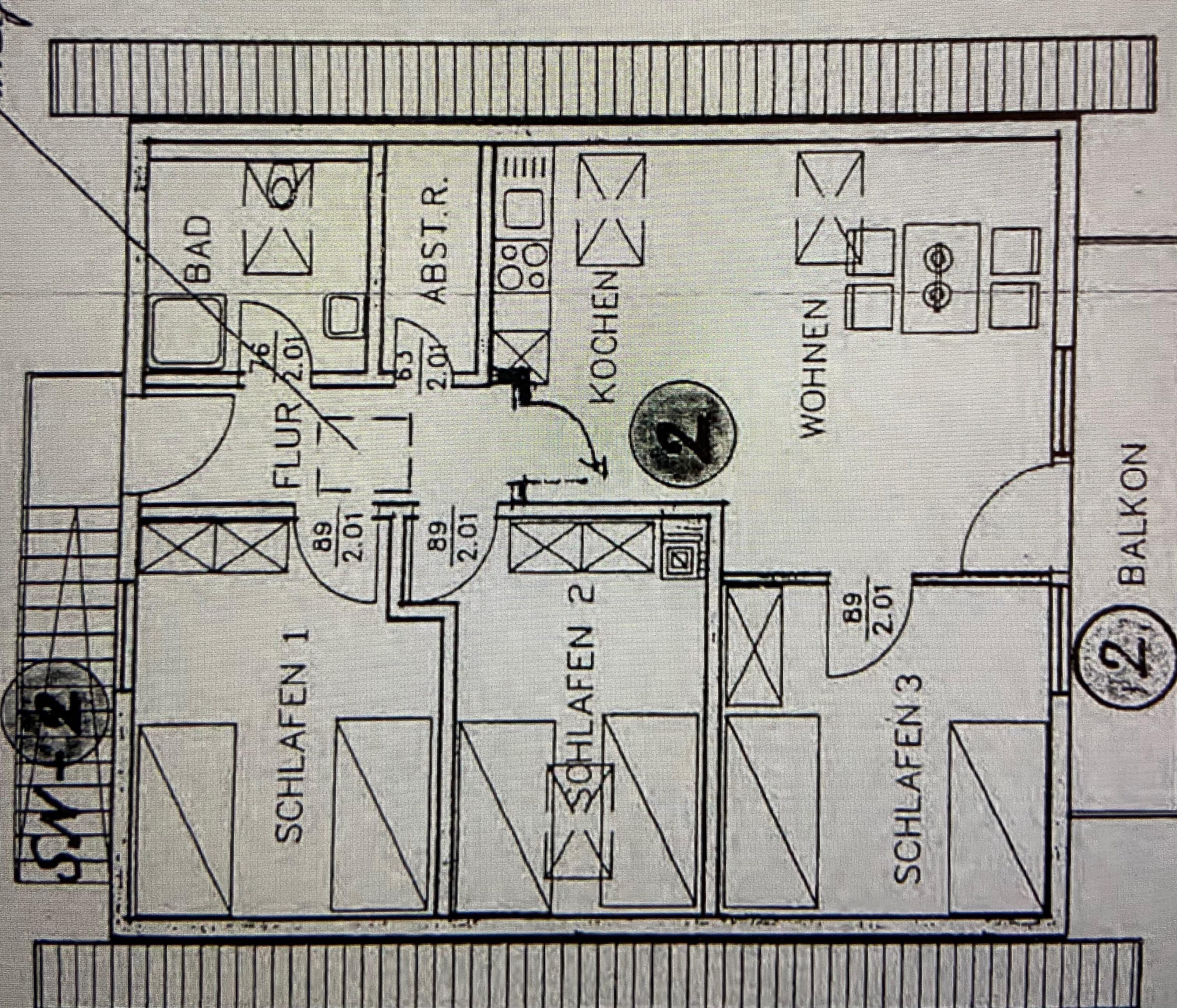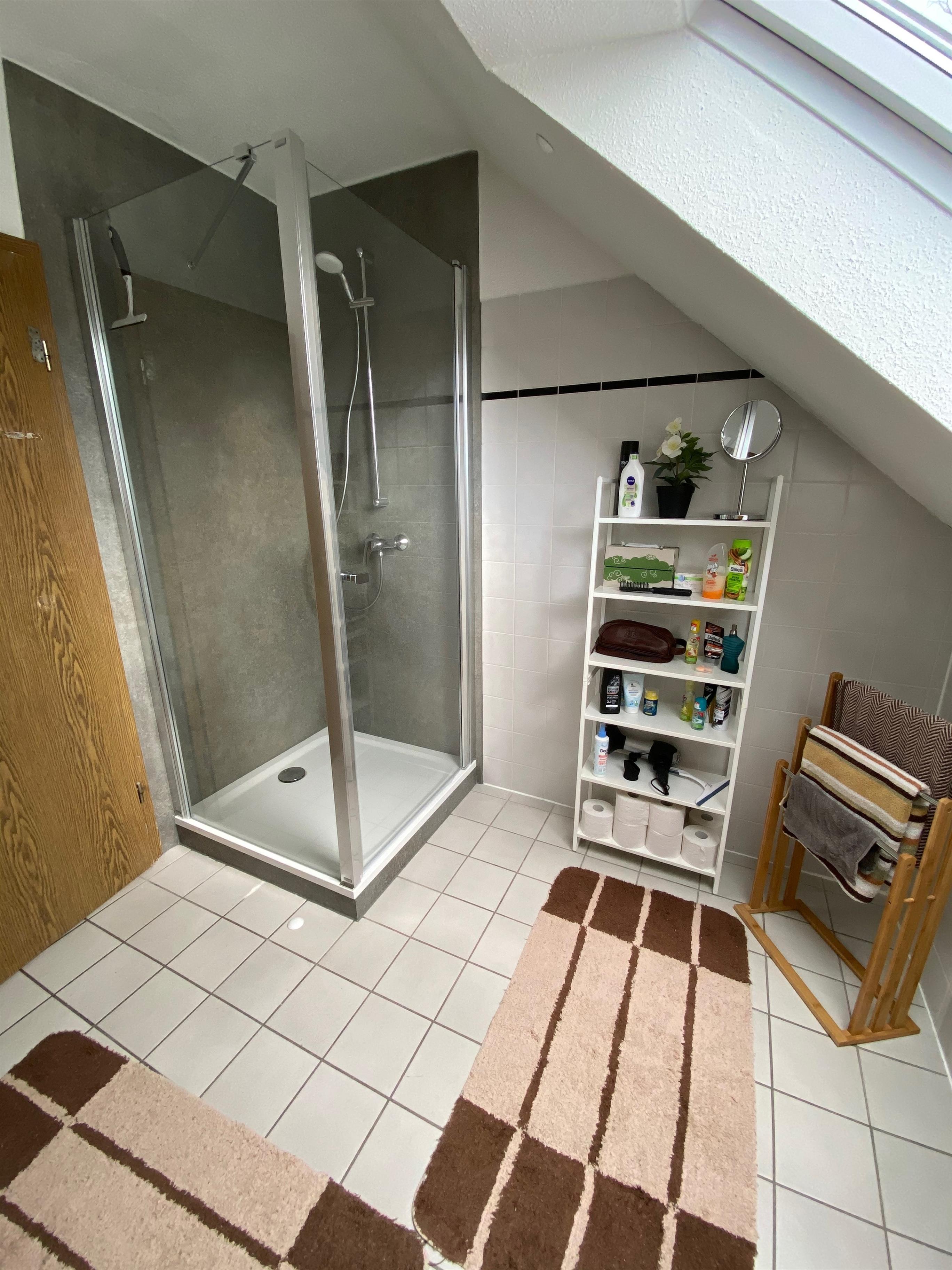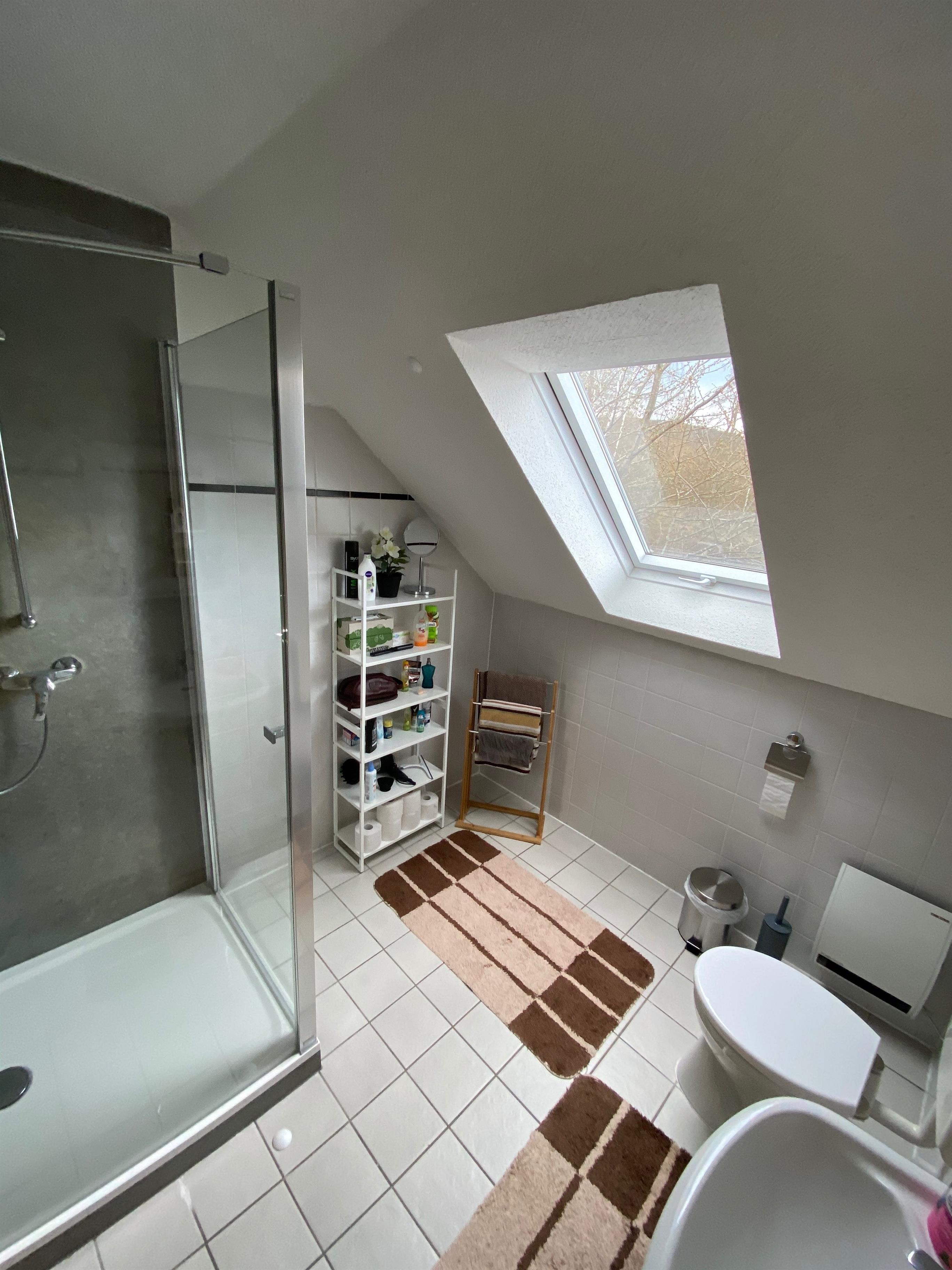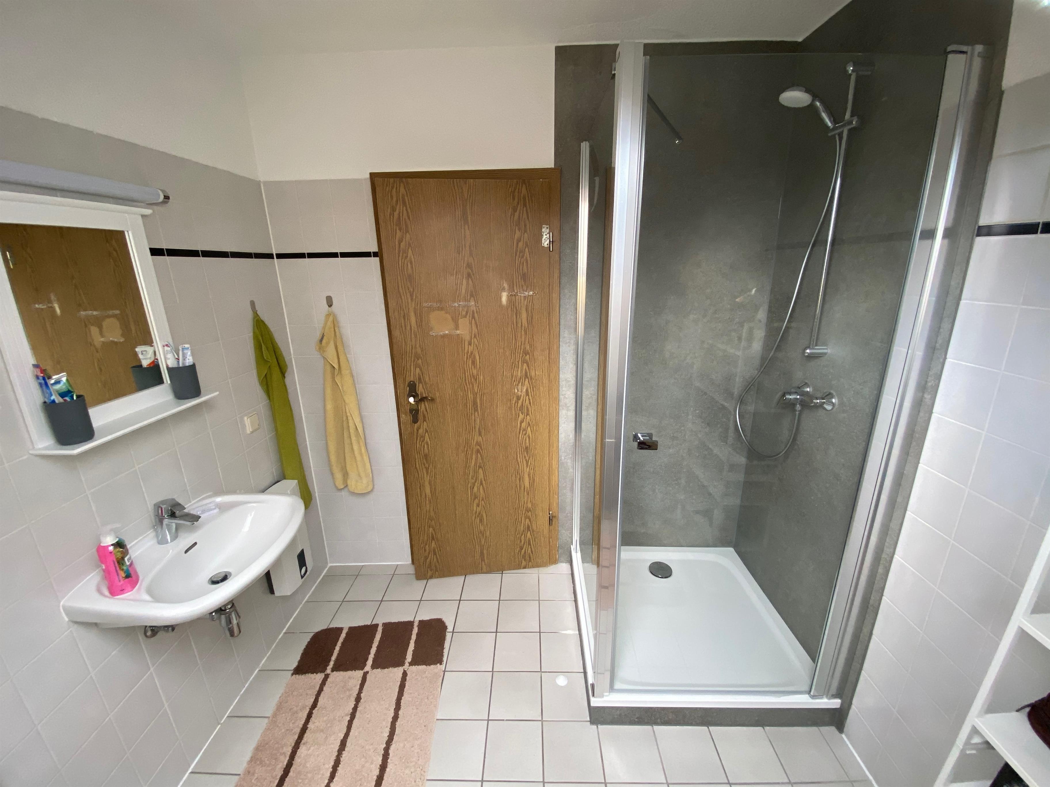 Der Zugang zur Wohnung erfolgt über eine Außentreppe hinter dem Haus. Für Rollstuhlfahrer ungeeignet.