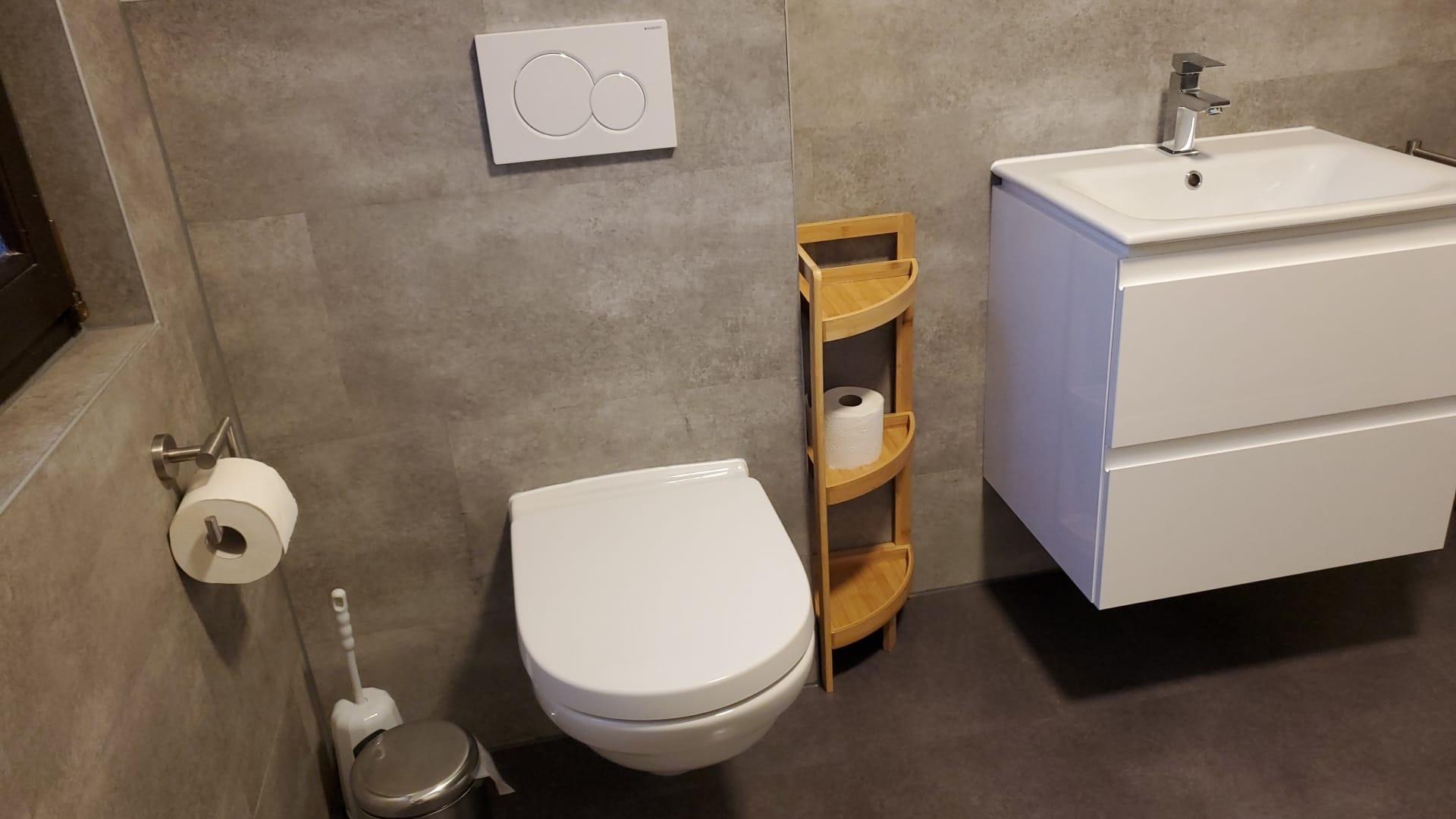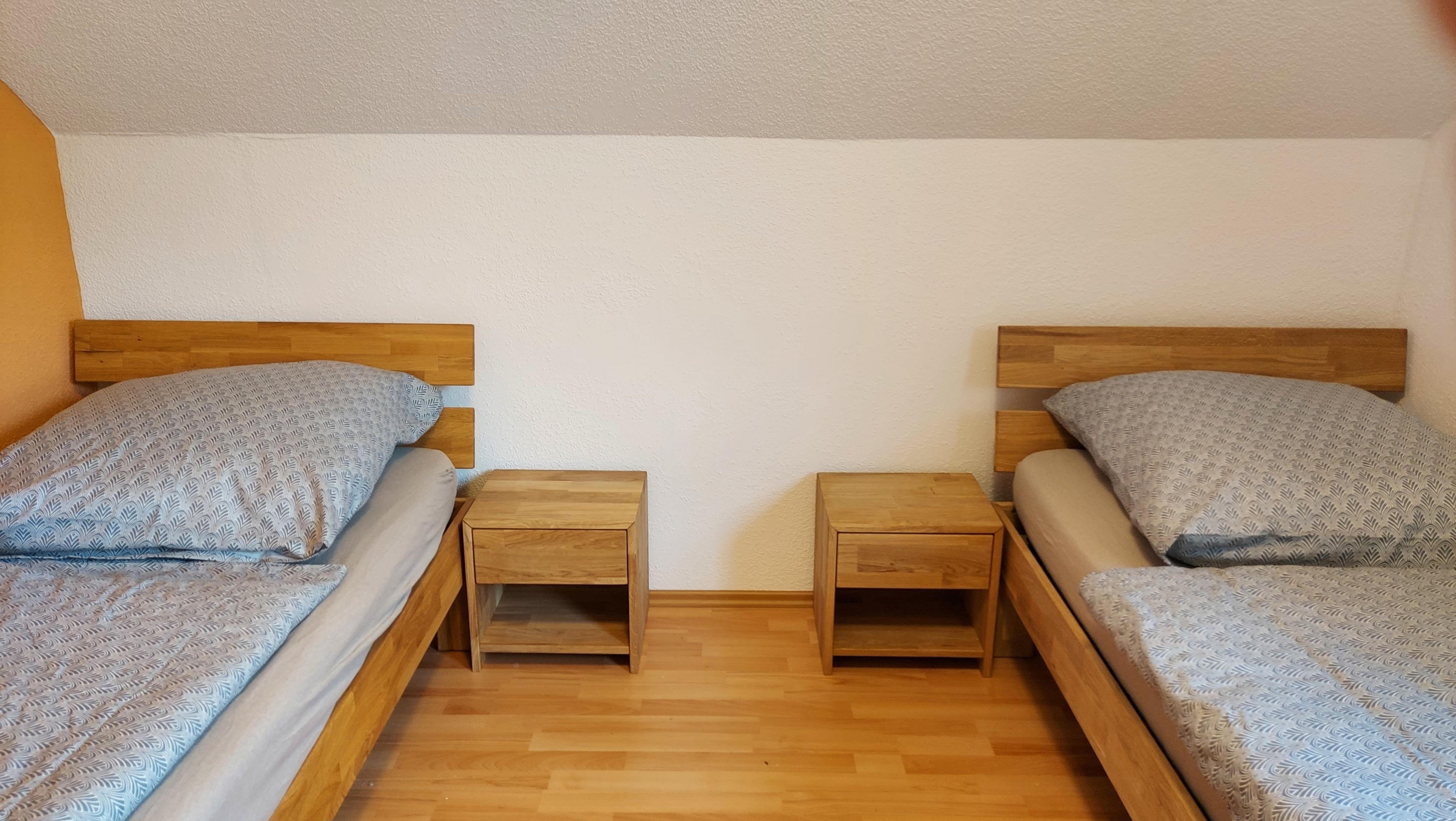 Es gibt zwei Schlafzimmer, eins mit zwei Einzelbetten und eins mit einem Doppelbett. Im Badezimmer befindet sich Dusche, Toilette und Waschbecken. Es gibt noch einen Abstellraum für Ihre Skis, Stiefel und Taschen. Die zwei Flügeltüren bieten Zugang zur Terrasse mit Gartenstühlen & Tisch.
