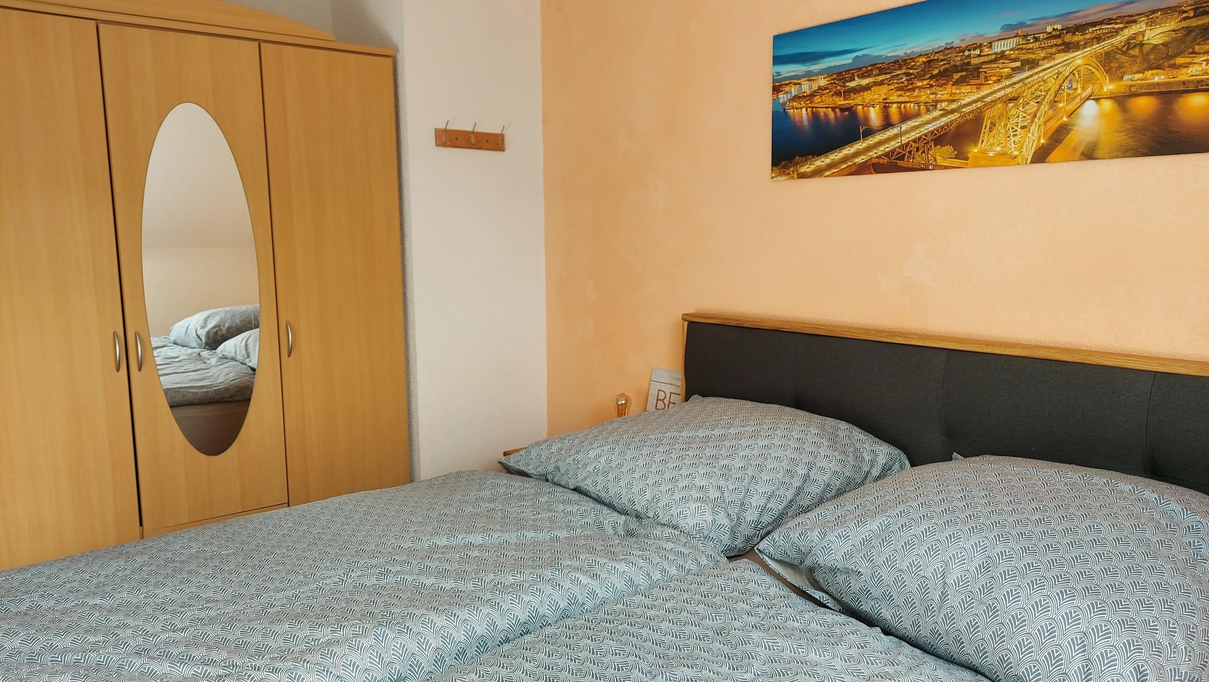 Das Haus besteht aus zwei Appartements für vier Personen, eins im Unter-, eins im Obergeschoss. Beide Appartements verfügen über jeweils einen separaten Privateingang an der Vorderseite des Hauses. Sie genießen also ausreichend Privatsphäre. In diesem Fall mieten Sie das Untergeschoss (EG).