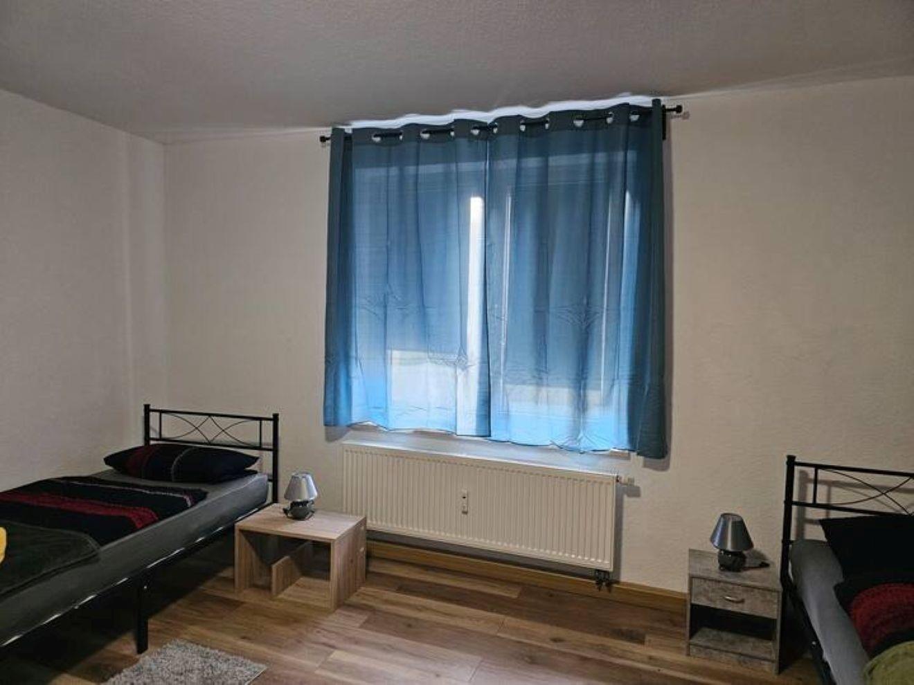 Jedes Zimmer verfügt über 1 oder 2 Einzelbetten 90x200 mit H4 Taschenfederkernmatratze, Kleiderschrank, Nachttischrank mit Nachttischlampe, Schreibtisch + Stuhl, Wäscheständer , Mülleimer. Insgesamt gibt es 4 Schlafzimmer.