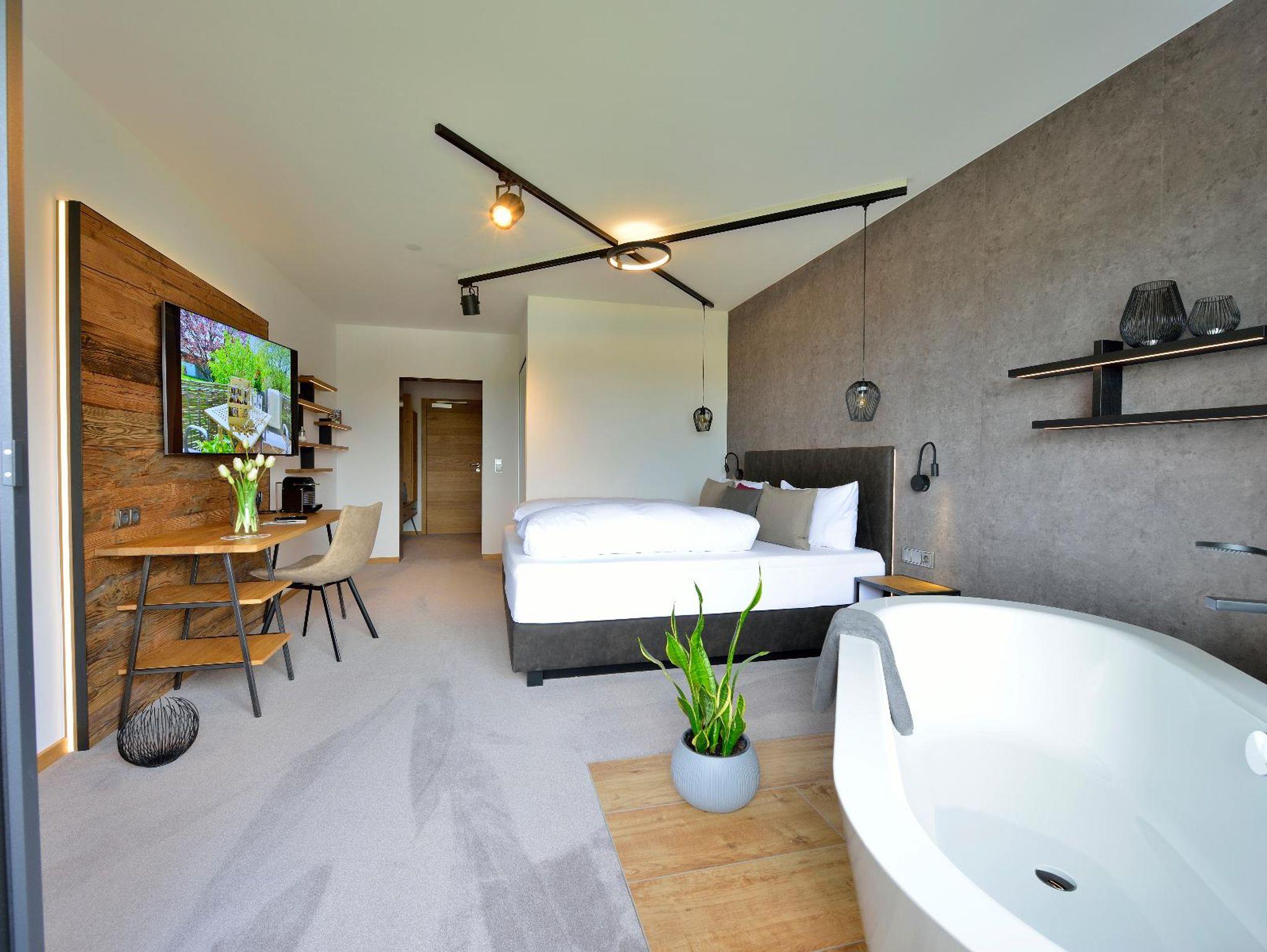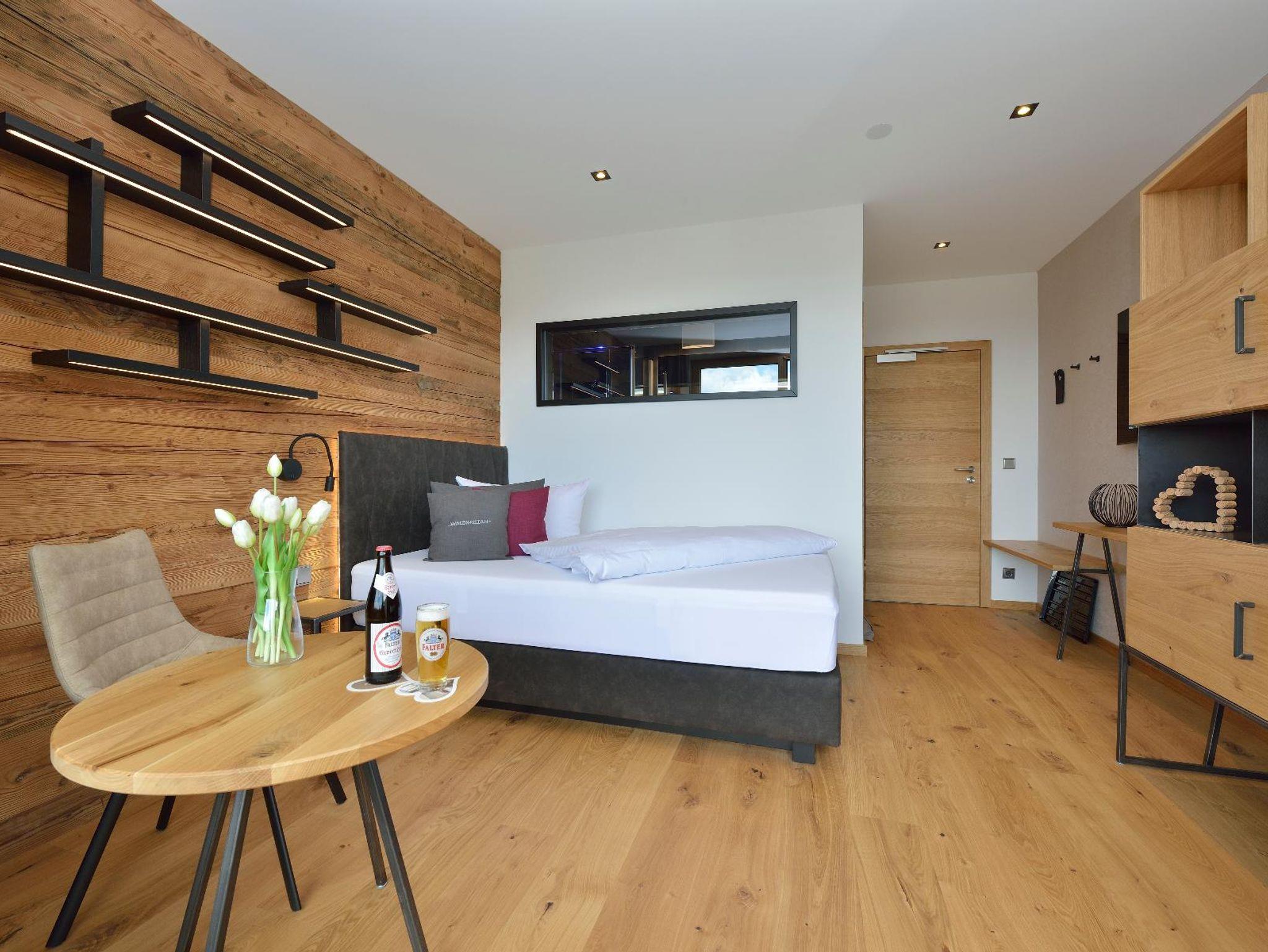 Die neu, mit heimischen Hölzern und viel Liebe zum Detail renovierten klein aber fein Zimmer laden Sie mit Boxspringbetten und Balkon zum Träumen ein.