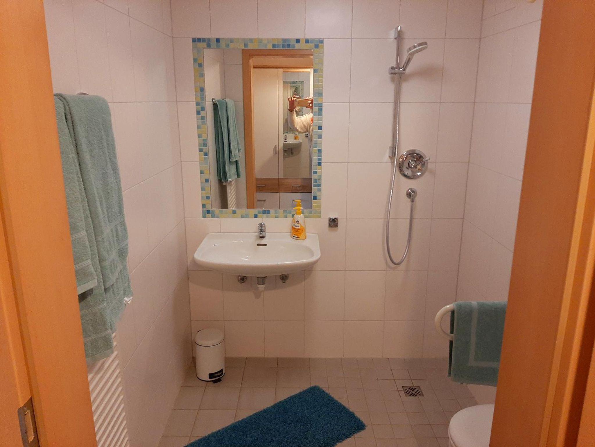 1 Zimmer Appartement EG mit sonnigen West-Balkon mit Blick zum großen Arber sowie mit barrierefreier Duche/WC.