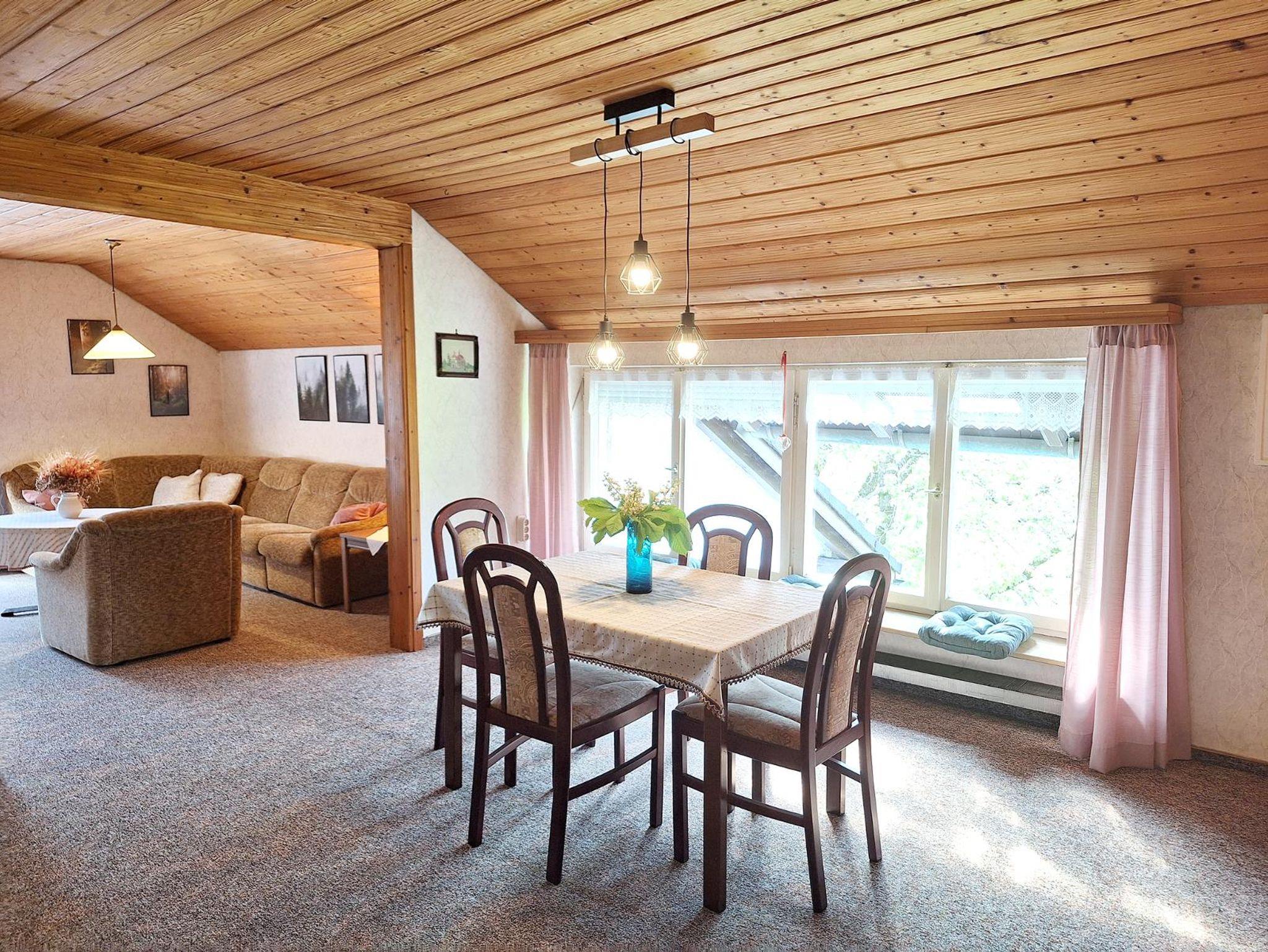 Unsere gemütliche Ferienwohnung im traditionellen Stil befindet sich im ersten Stock und bietet auf ca. 90 qm ausreichend Platz für bis zu vier Personen. Sie verfügt über 2 Doppelzimmer, eine kleine Küche, ein Esszimmer, ein gemütliches Wohnzimmer und sowohl Dusche, Badewanne als auch ein separates WC. Der zur FeWo gehörige Balkon lädt dazu ein, gemütliche Sommerabende oder winterliche Sonnentage auf ihm zu verbringen. Für die Ferienwohnung stehen ausreichend Parkmöglichkeiten und freies WLAN, sowie Bettwäsche und Gästehandtücher für Sie zur Verfügung.