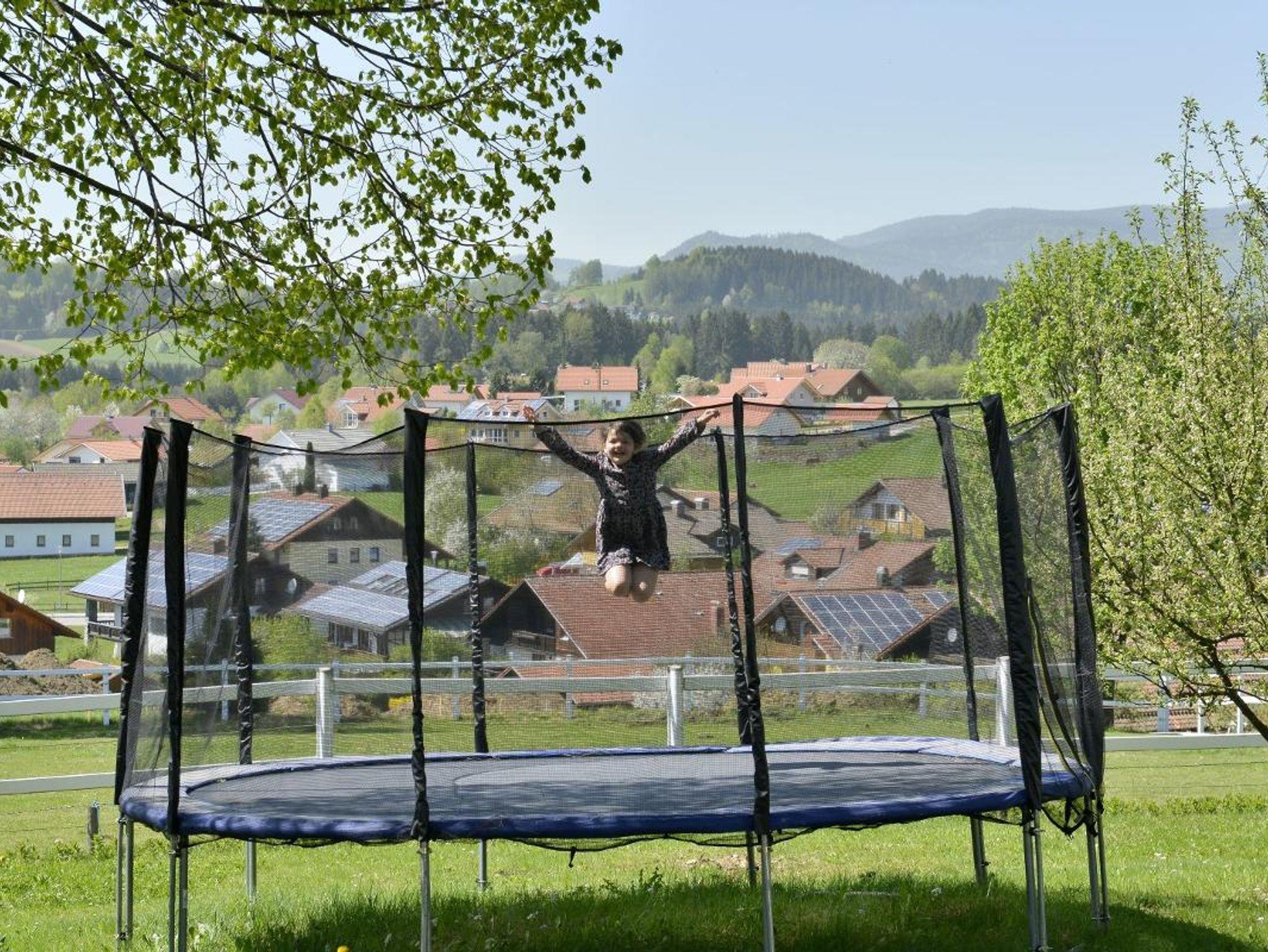 Eine abschließbare Fahrradgarage, kostenloses WLAN, eine große Liegewiese mit Trampolin, Sauna ein Ski und Trockenraum sowie ein kleiner Trimmraum stehen für Sie bereit.