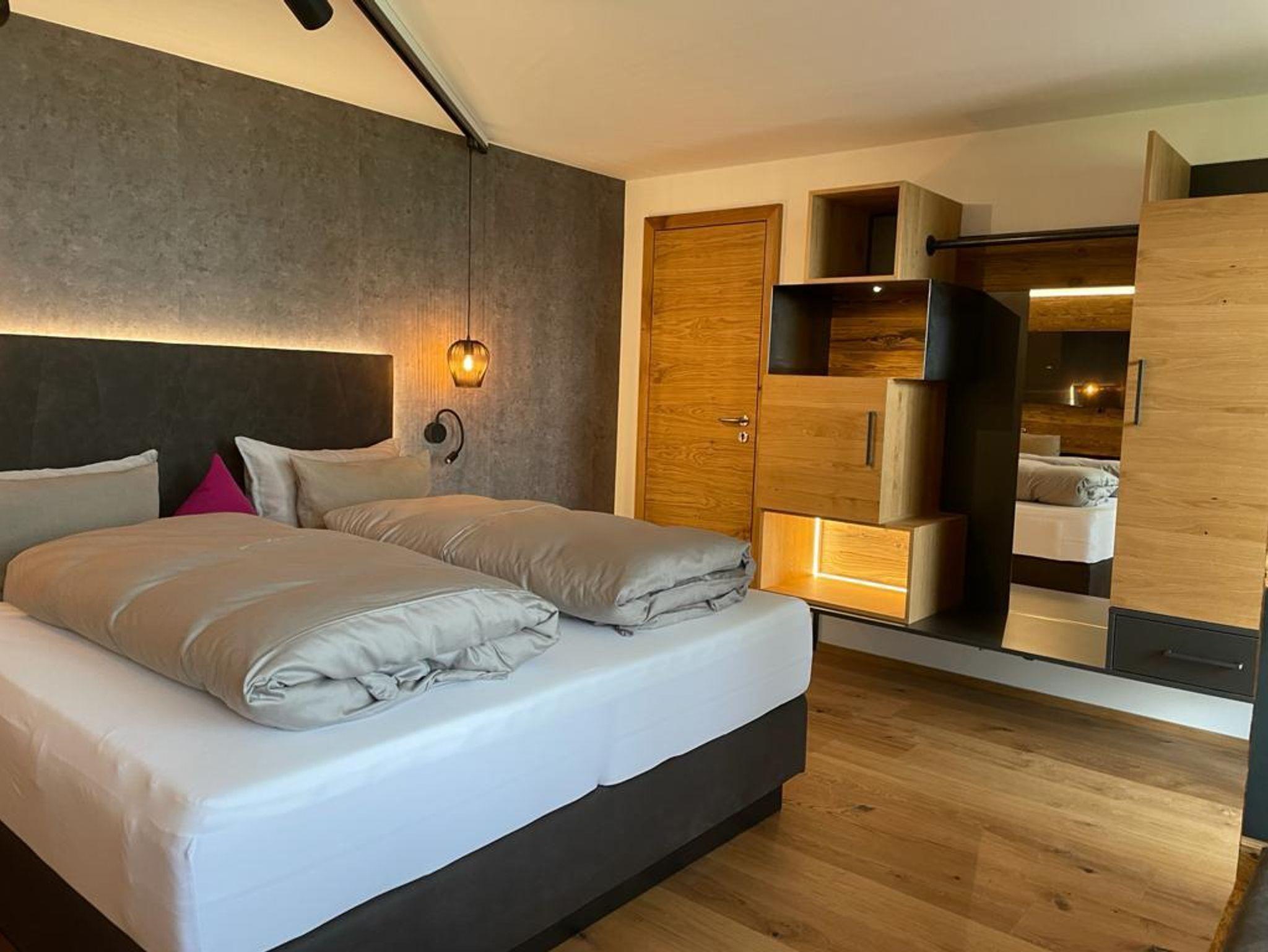 Die neu, mit heimischen Hölzern und viel Liebe zum Detail renovierten klein aber fein Zimmer laden Sie mit Boxspringbetten und Balkon zum Träumen ein.