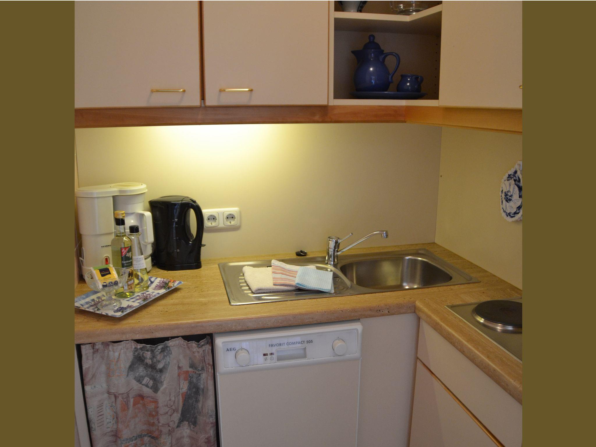 Die komplett eingerichteten Küchen bieten Ihnen noch weitere Extras, wie Geschirrspüler, Kühlschrank, Mikrowelle, Kaffeemaschine, Wasserkocher, Eierkocher und Toaster.
